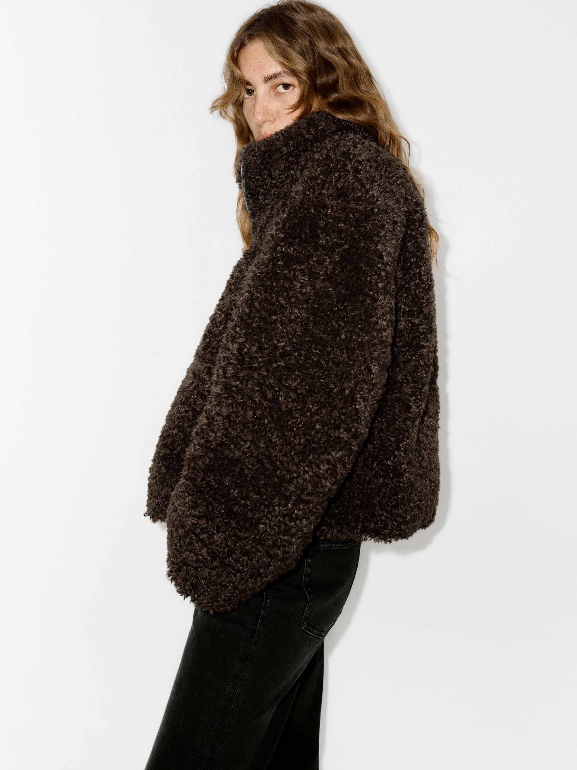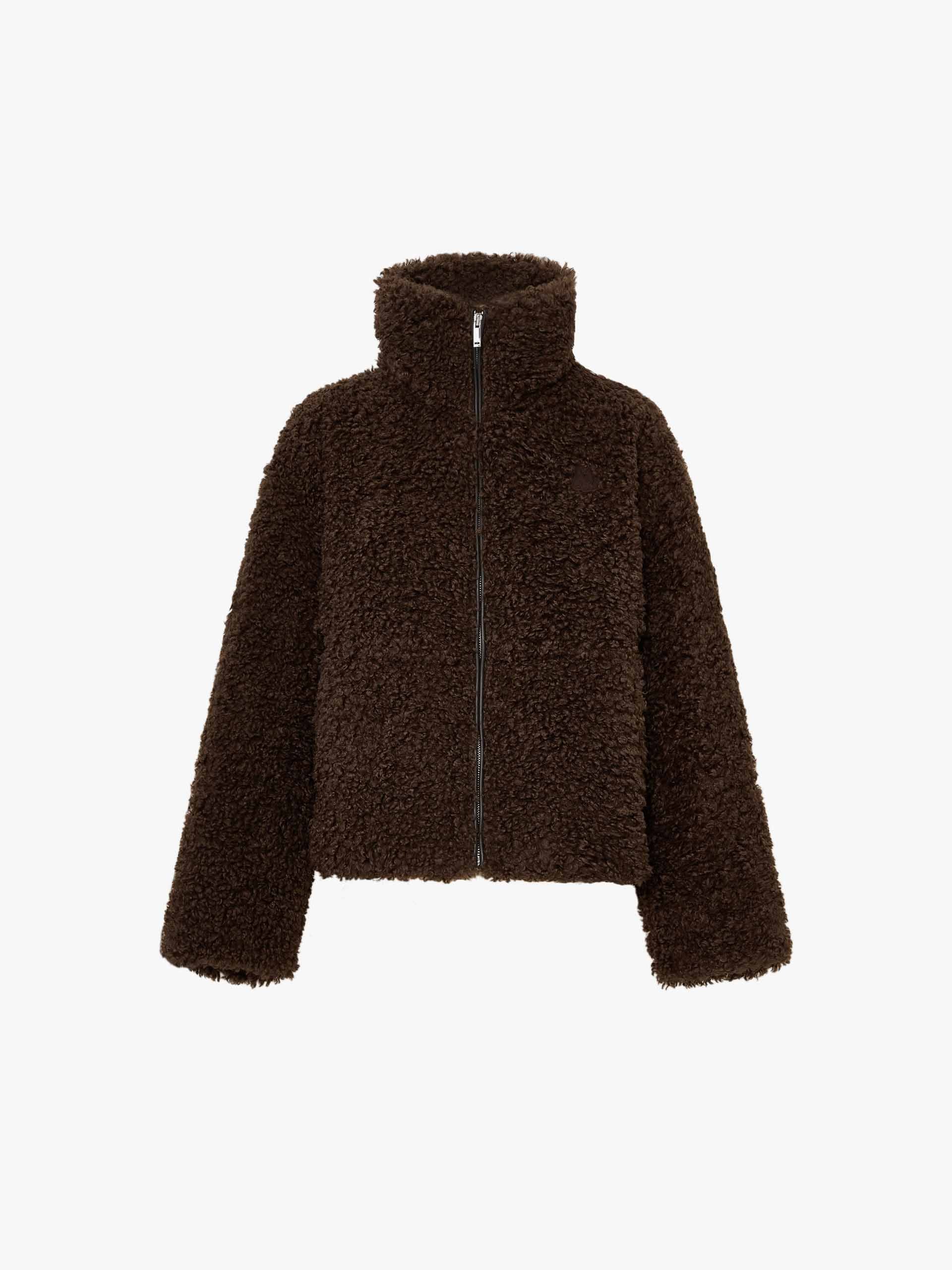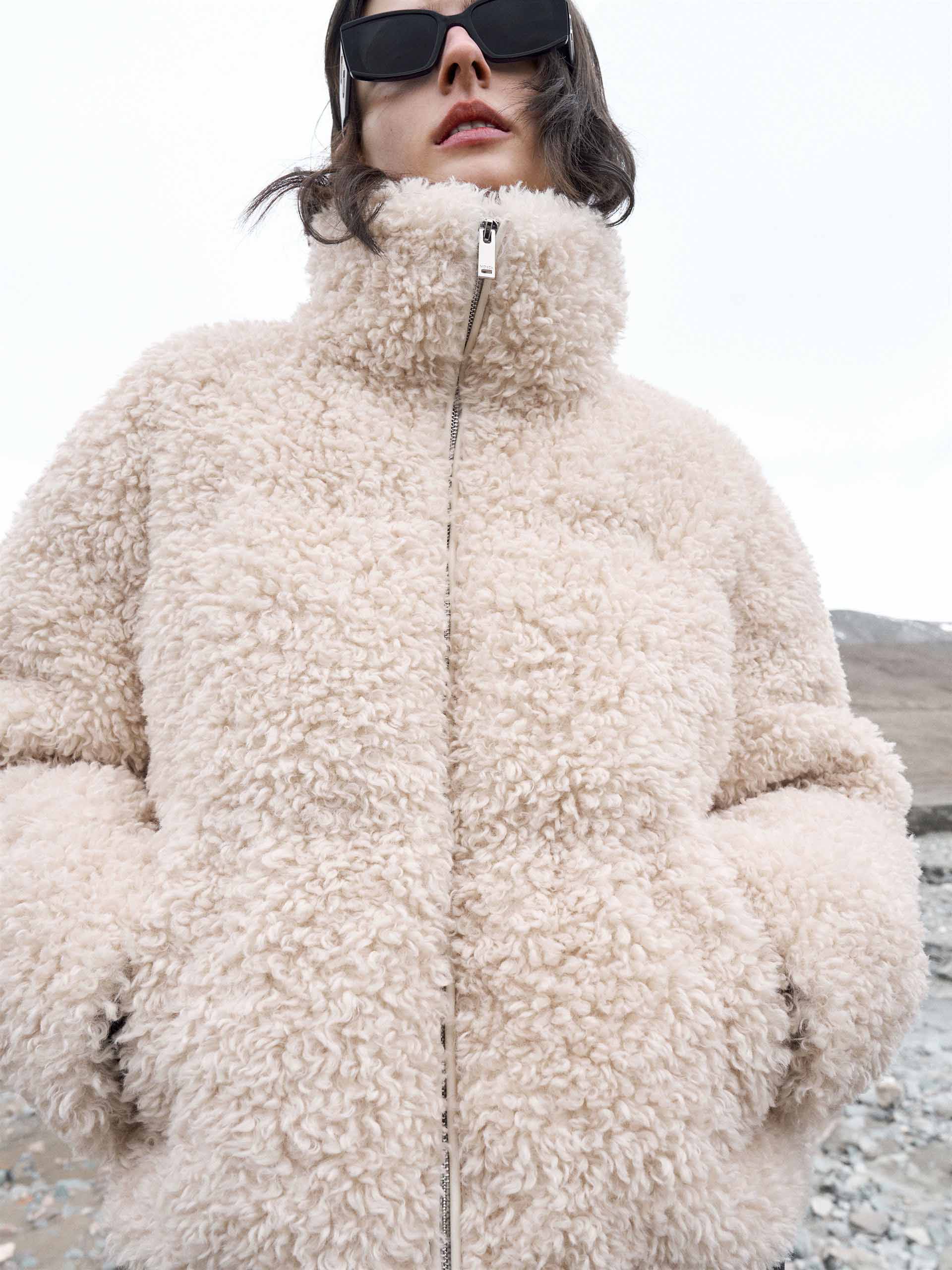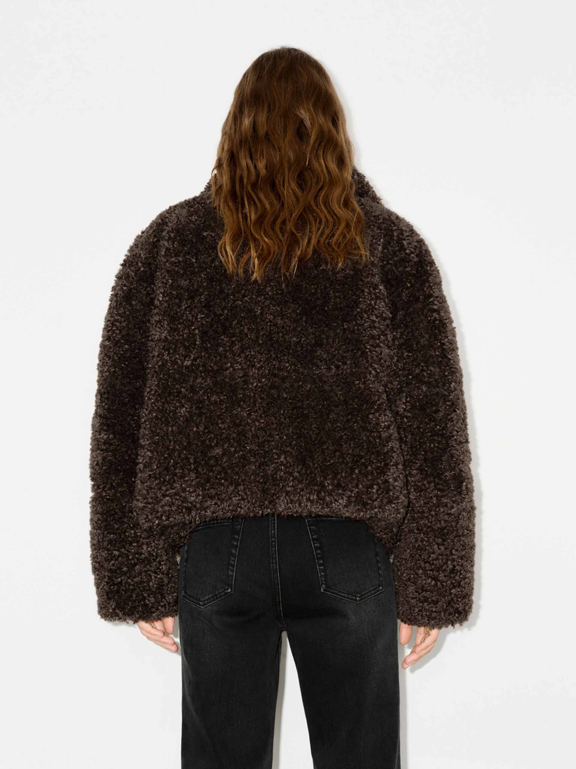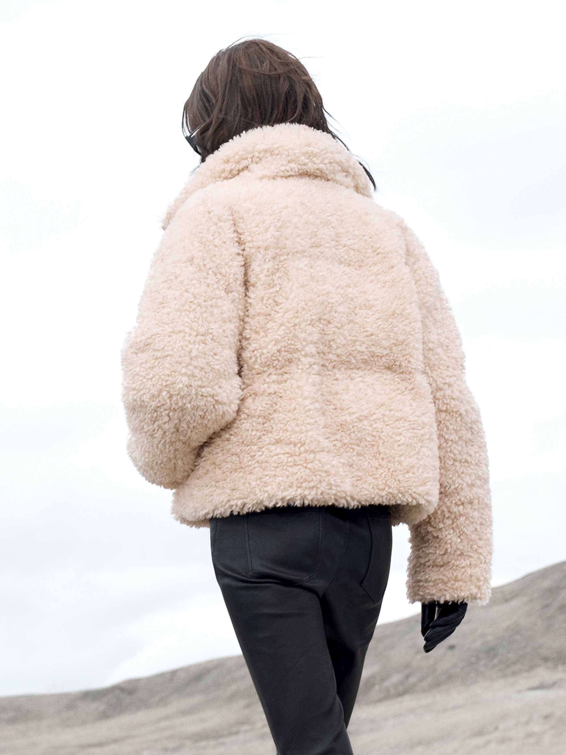 This faux shearling jacket combines coziness and sophistication for the coming season. Features a stand-up collar, practical side pockets and a cropped cut. Ultralight filling adds warmth without being bulky.