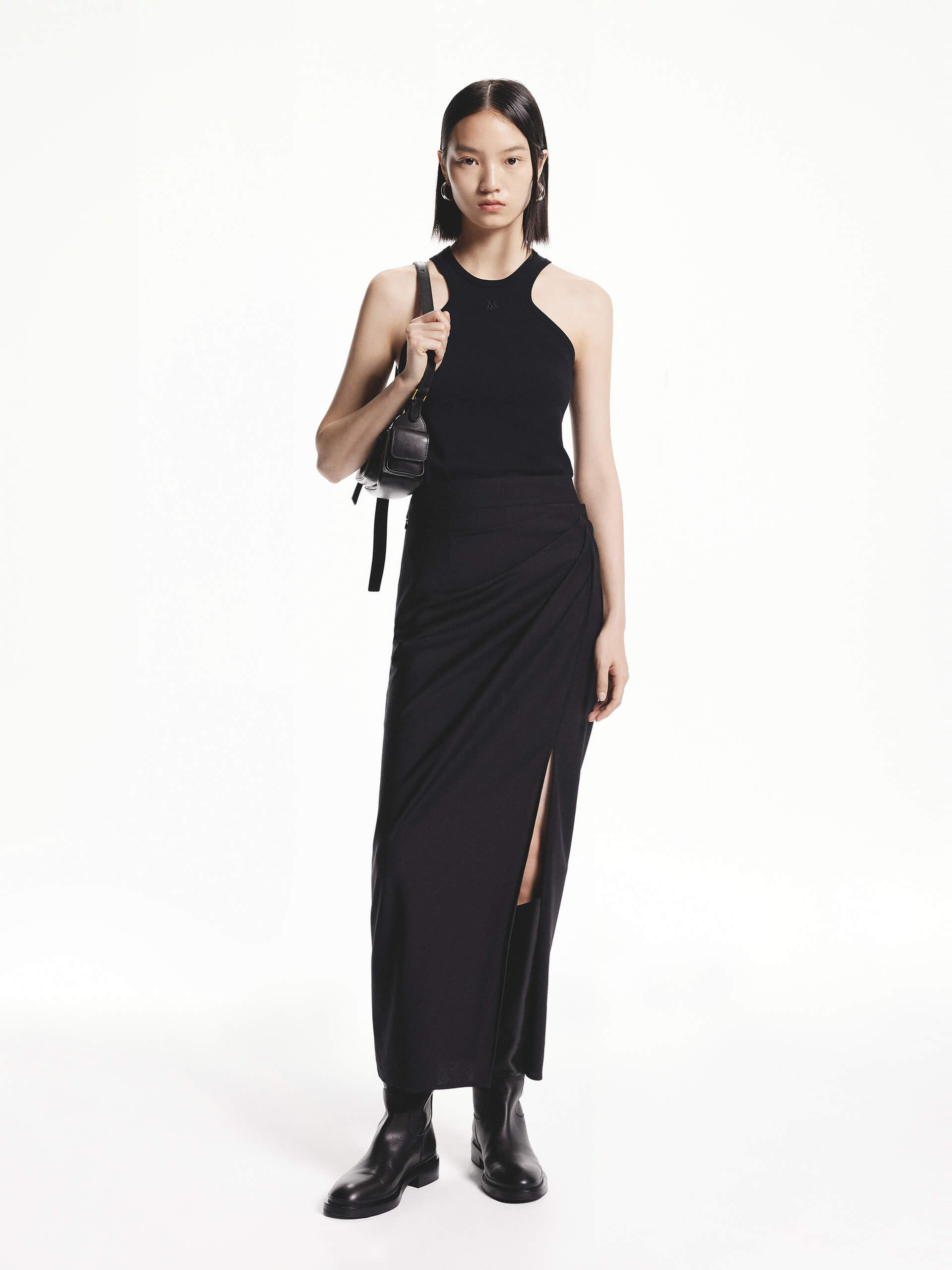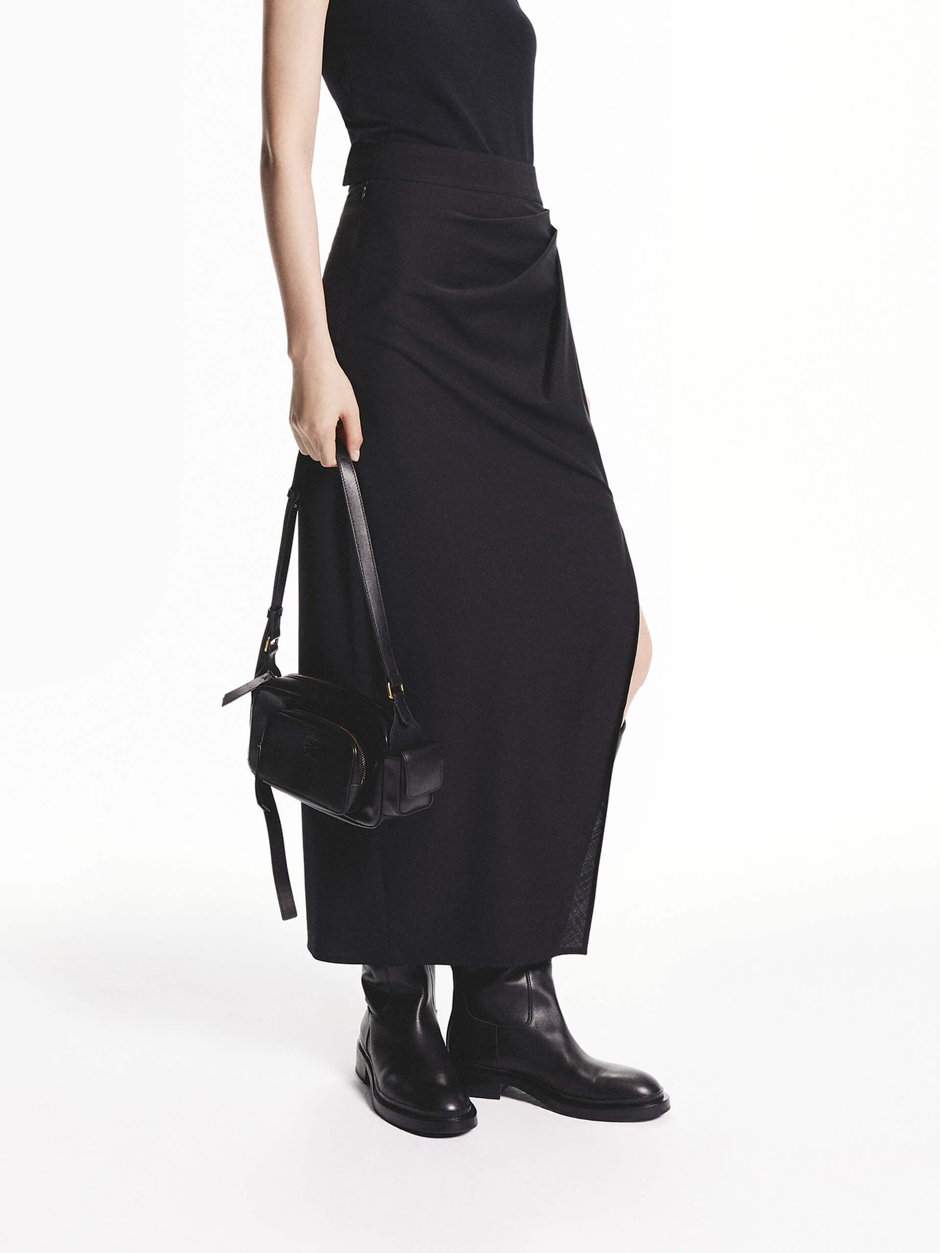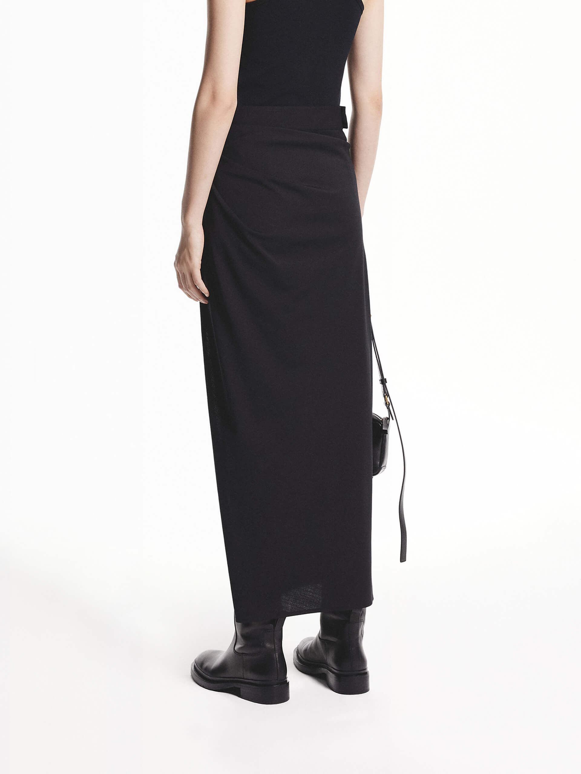 Made from 94.3% wool for a luxurious and warmth. Detailed with pleated side sweeps and slits to add movement and fluidity to the skirt. Pair with our tank top for a chic look.
