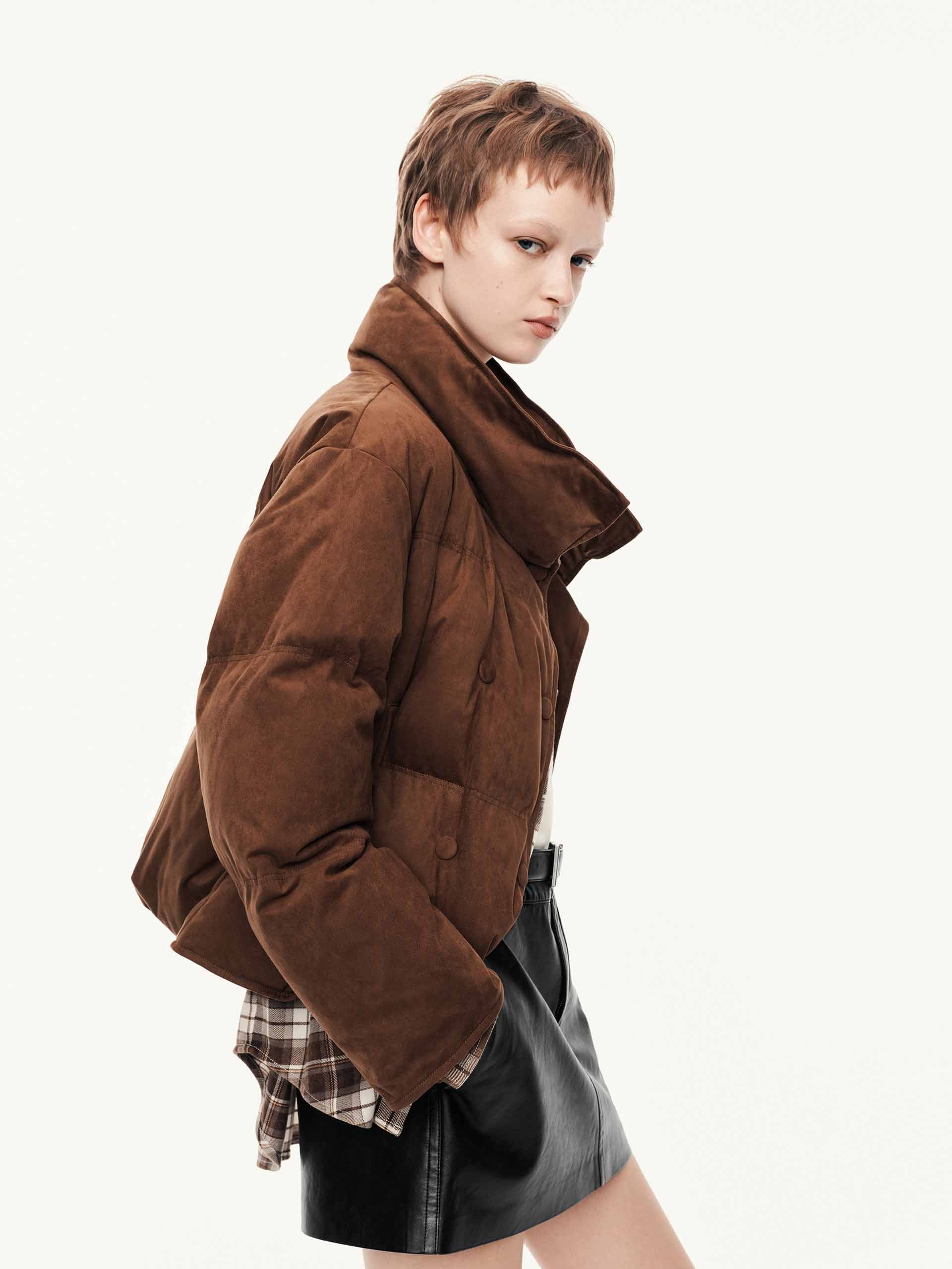 Meet the down jacket—a modern twist on classic cold-weather style. Designed with a fresh cropped fit, this jacket offers a sleek, body-skimming silhouette. The elegant double-breasted detail adds refined structure, while the adjustable drawstring hem allows you to customize the fit for enhanced warmth and wind resistance.