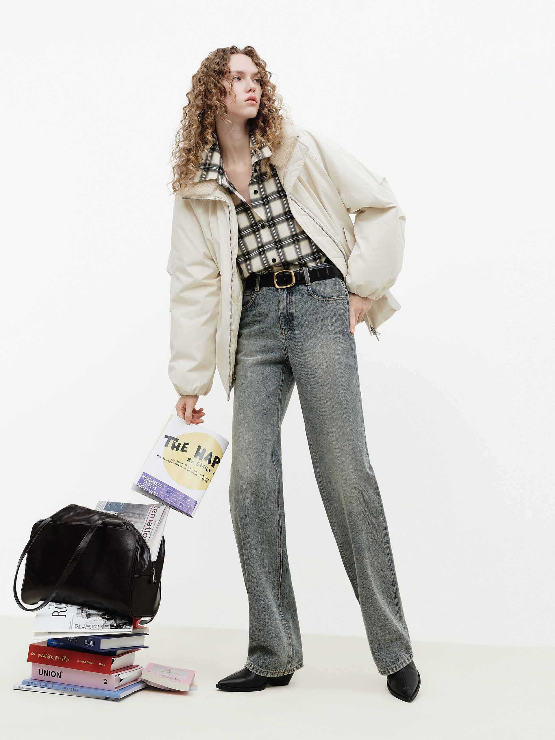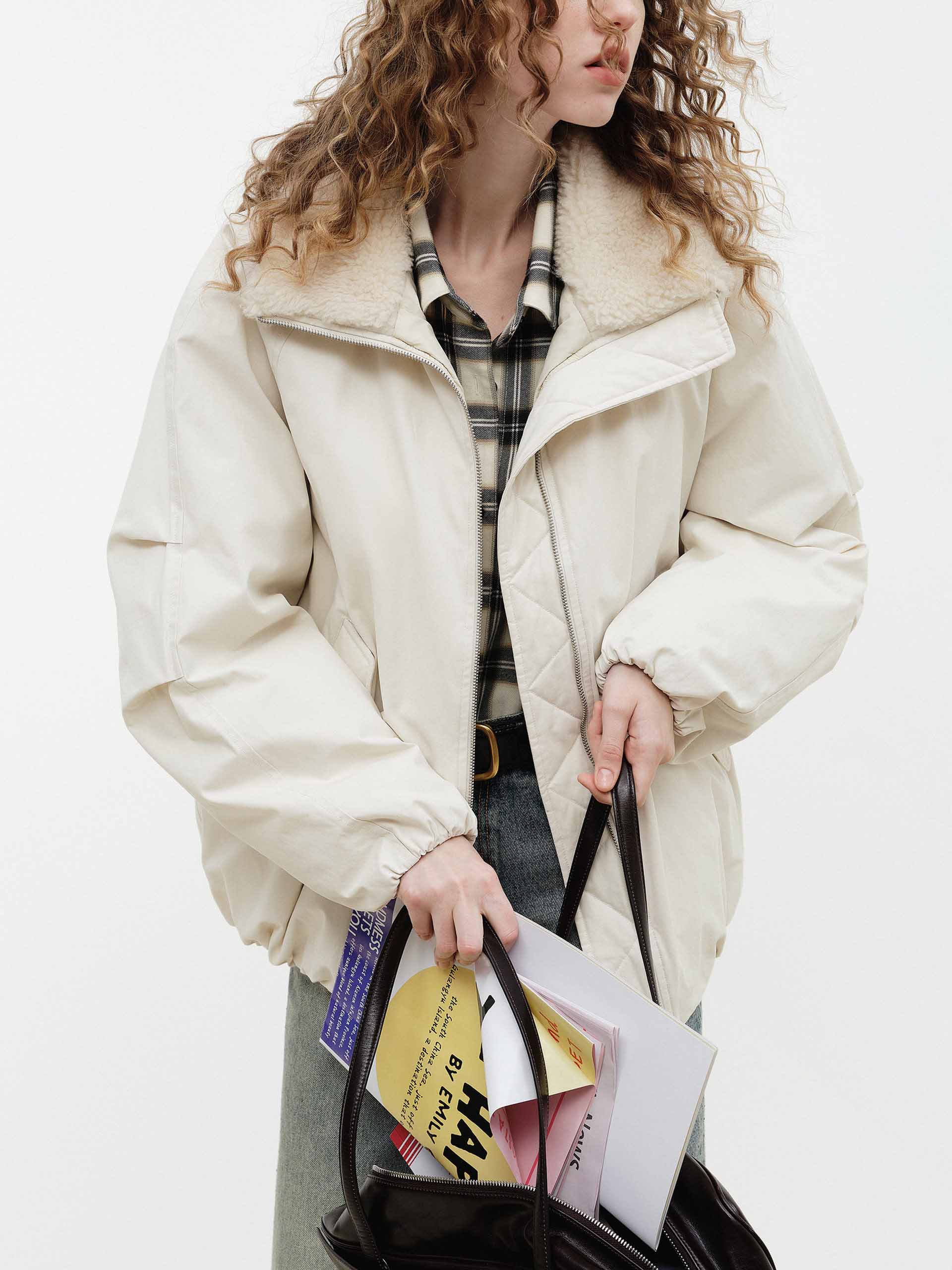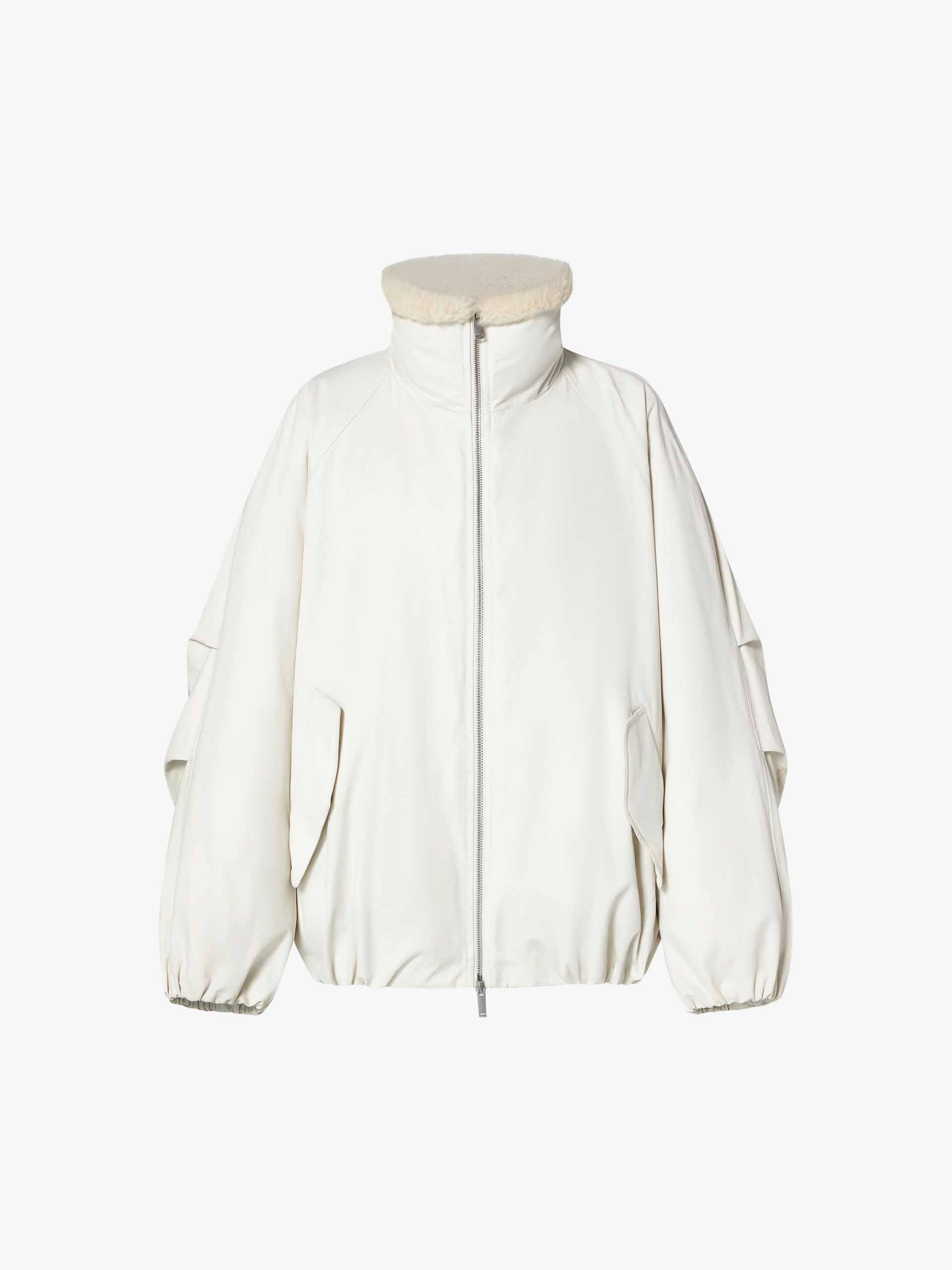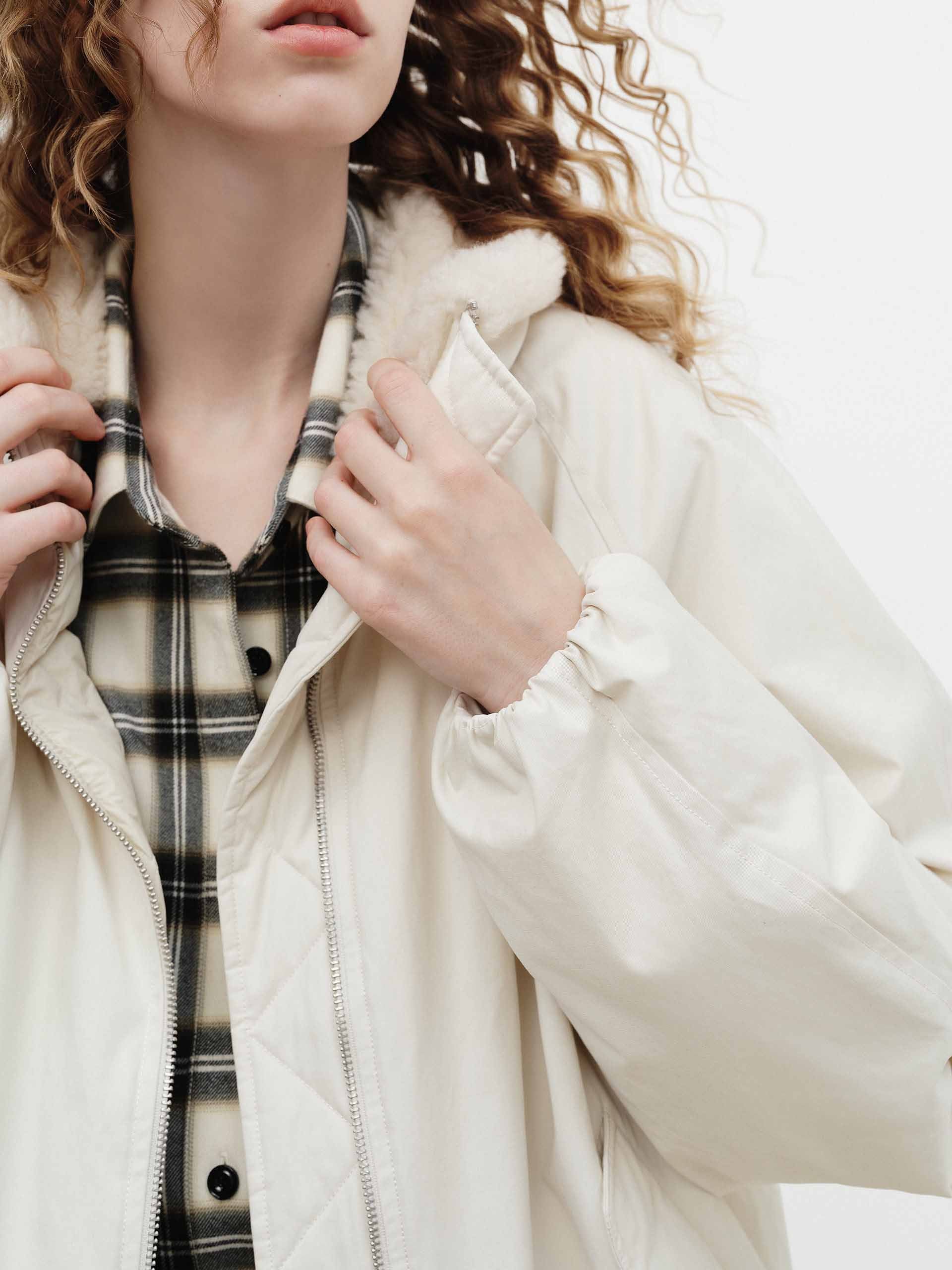 This down jacket features a relaxed fit and raglan sleeves ensure ease of movement and a comfortable silhouette. The practical two-way zip closure offers versatile wearing options, while the distinctive side pleated design adds thoughtful volume and style. Finished with a statement fur collar detail, this jacket provides a balanced blend of cozy warmth and contemporary urban appeal.