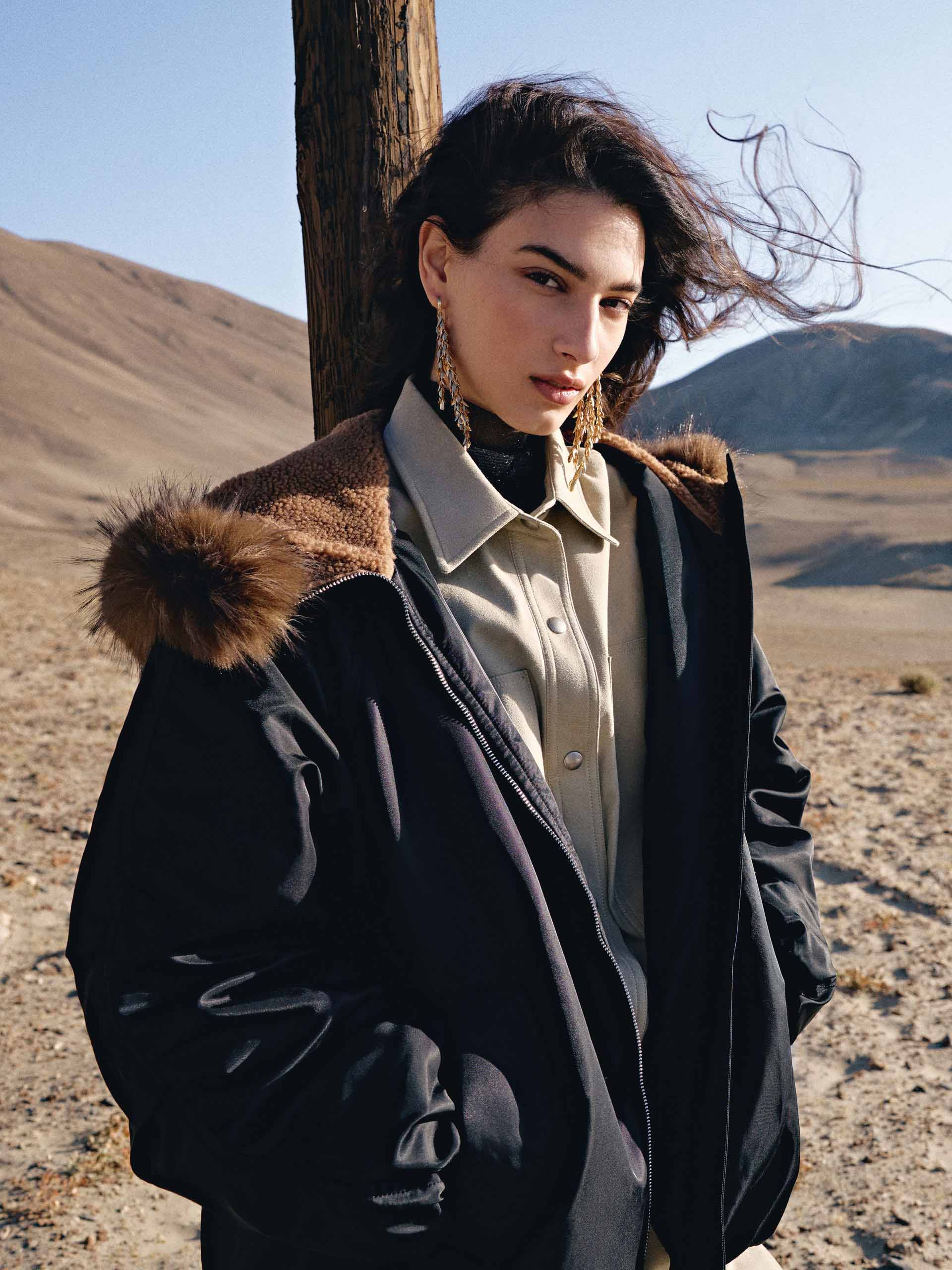 Embrace extreme warmth and versatile style with our down jacket. Equipped with a highly adaptable two-way zip closure, it offers flexible ventilation and ease of movement, complemented by handy side pockets for secure storage. The standout feature is its innovative detachable fur strip on the hooded design, allowing you to customize your look.
