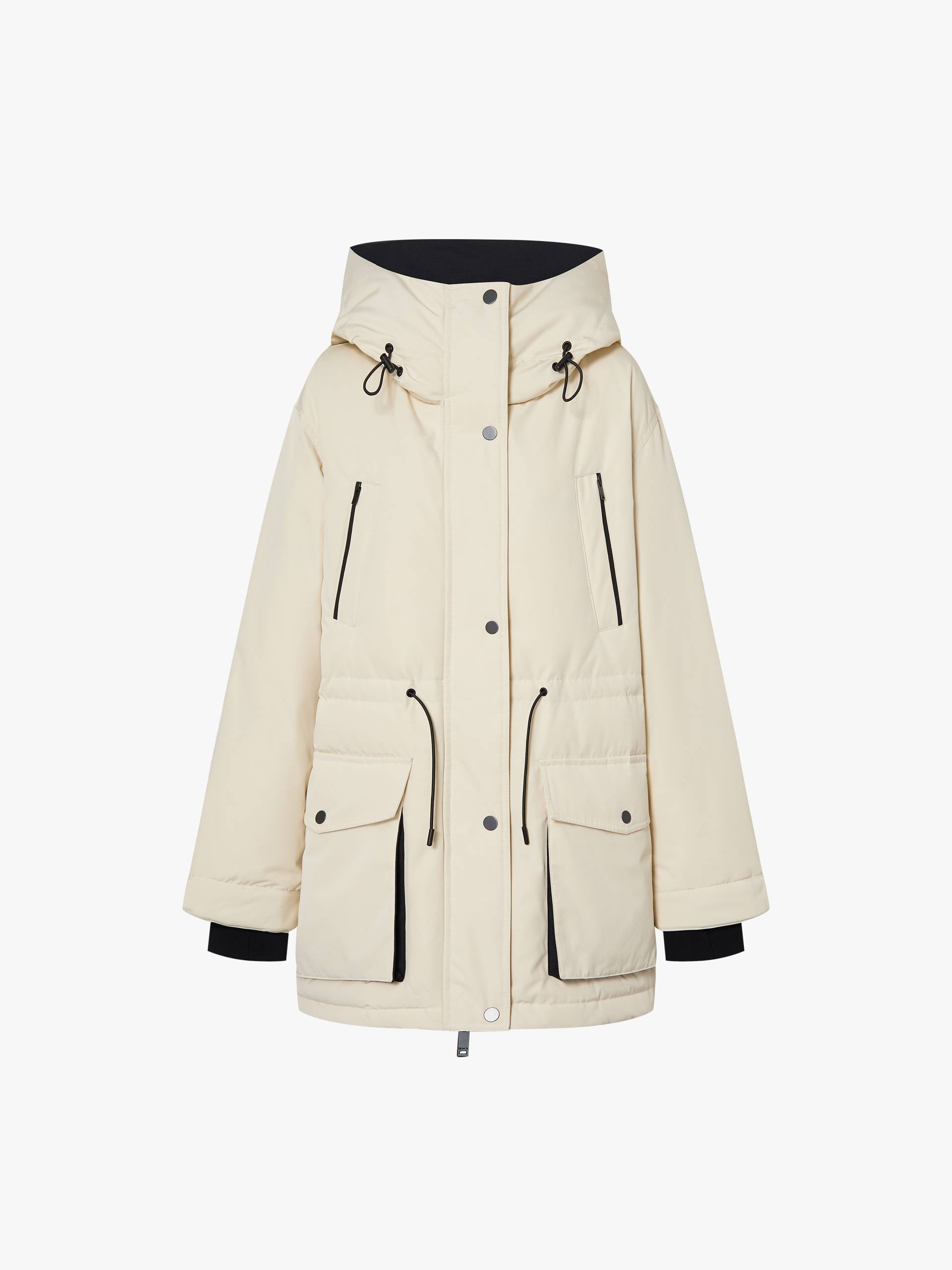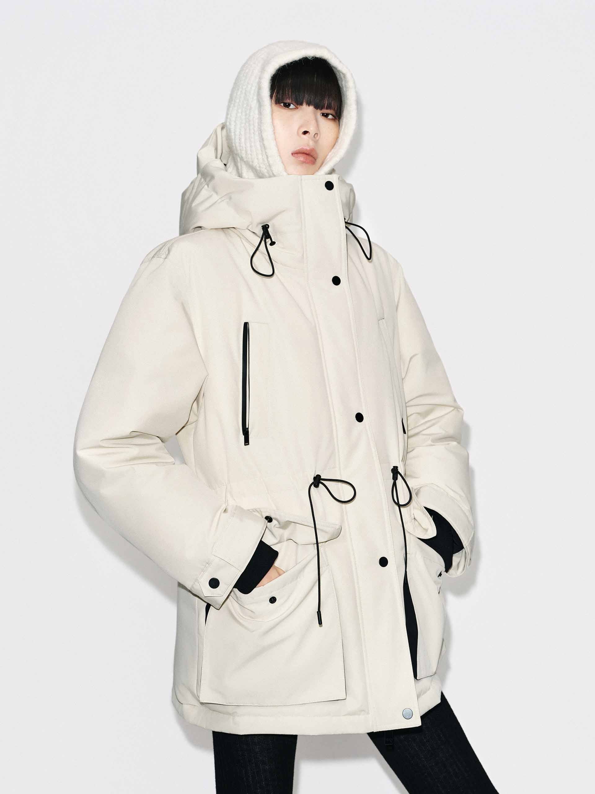This down jacket in a versatile regular fit is built for modern exploration. The adjustable drawstring waist and hood allow you to customize your silhouette and seal in warmth, while the dependable zip and snap-button closure offers easy wear. Its defining feature is the multi-pocket configuration, making it an essential piece for those who demand both function and fashion in their cold-weather gear.