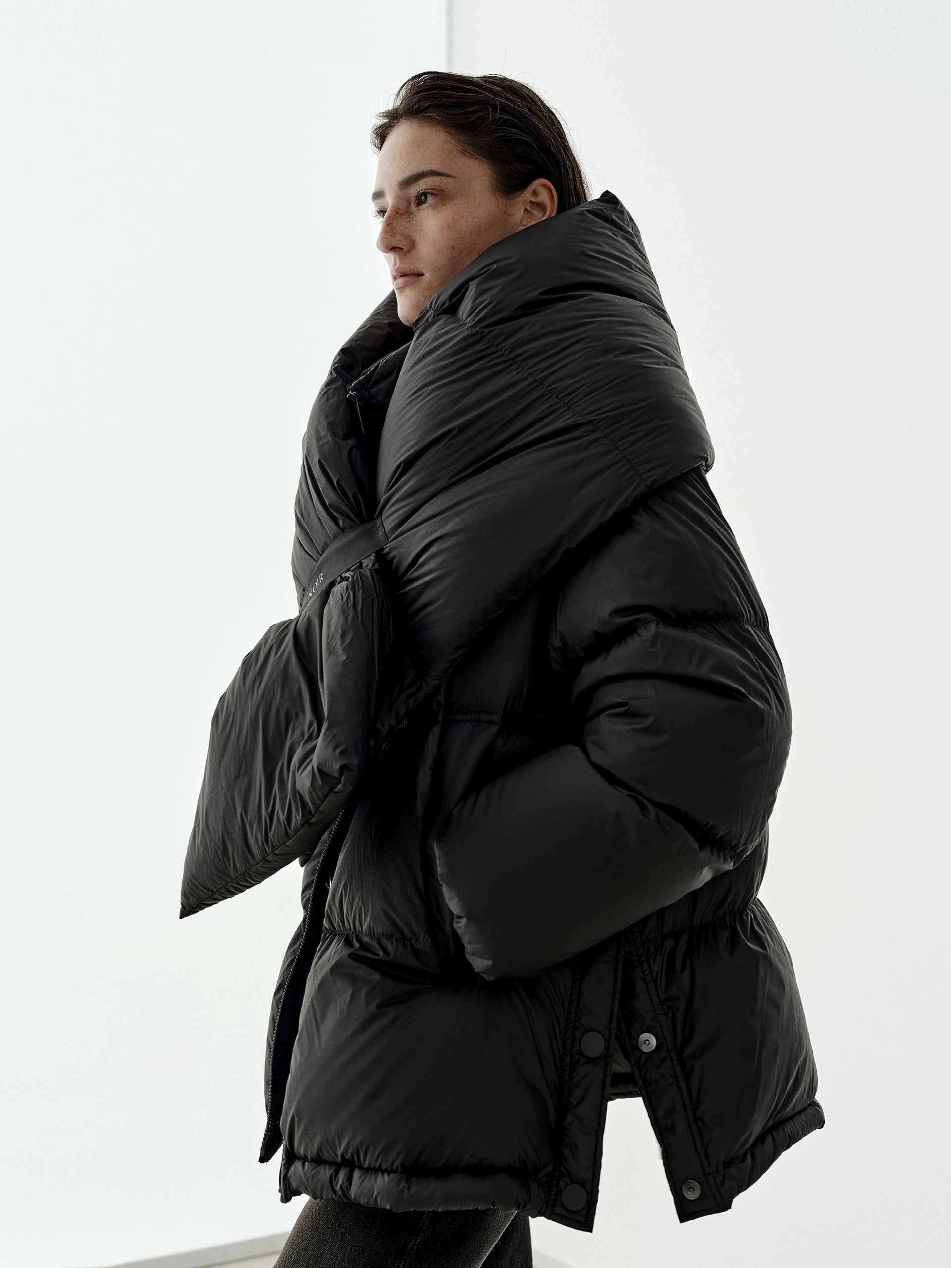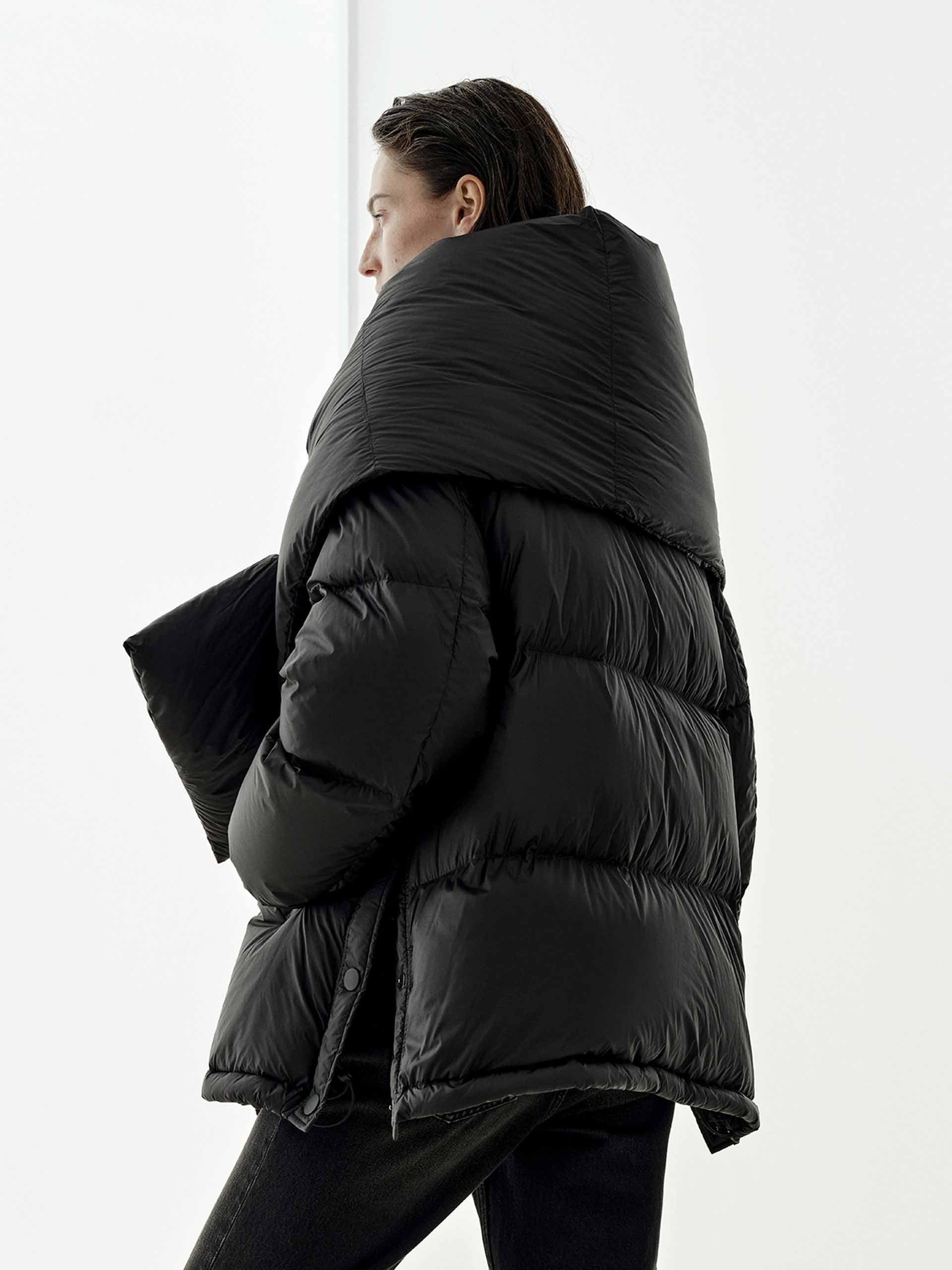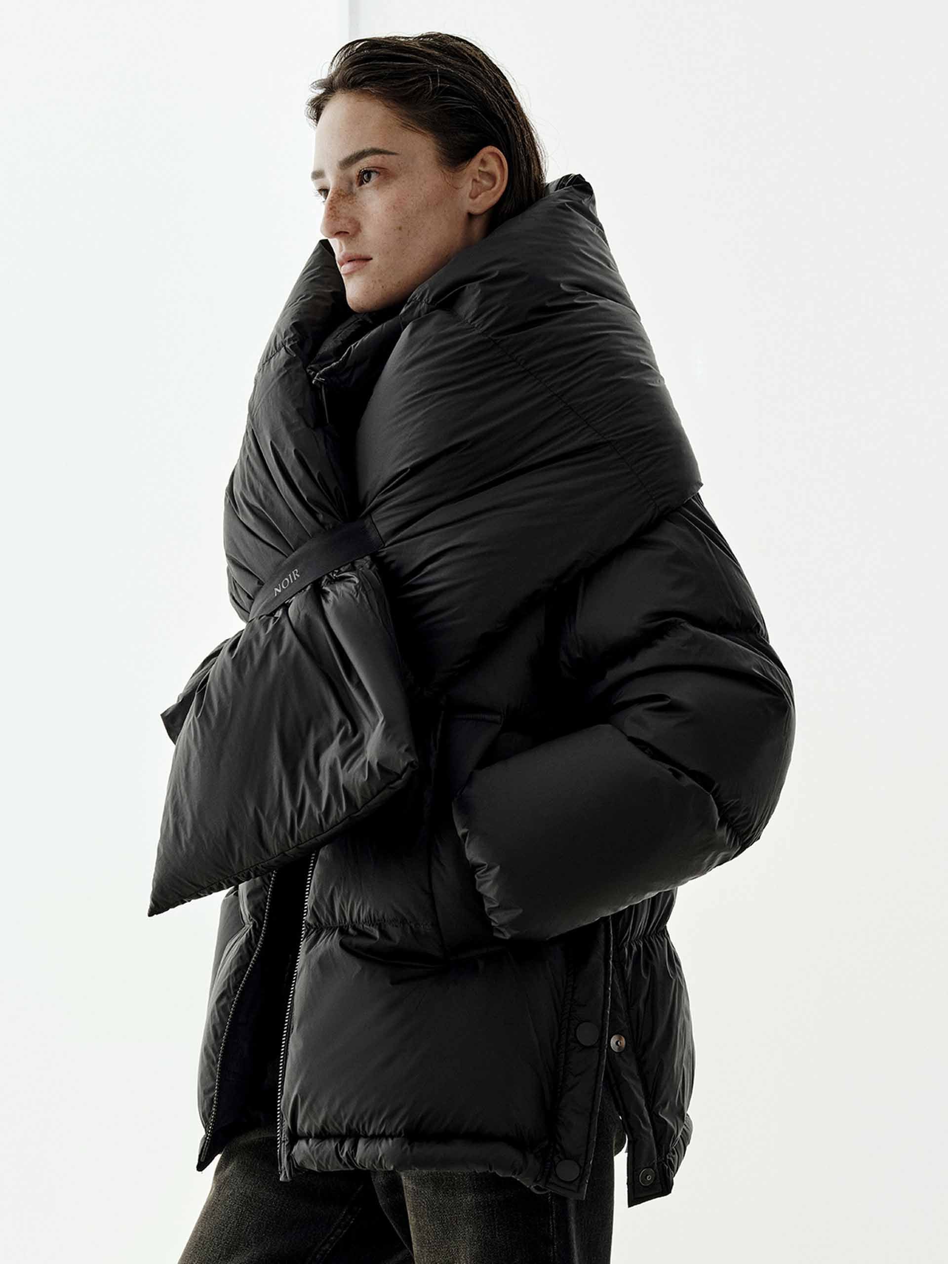 Embrace ultimate warmth and cozy style with our down jacket. This functional piece features a practical two-way zip closure and handy side pockets for everyday convenience. The classic horizontal quilting design ensures even distribution of the premium goose down, while the included scarf adds an extra layer of warmth and a perfectly coordinated, finished look.
