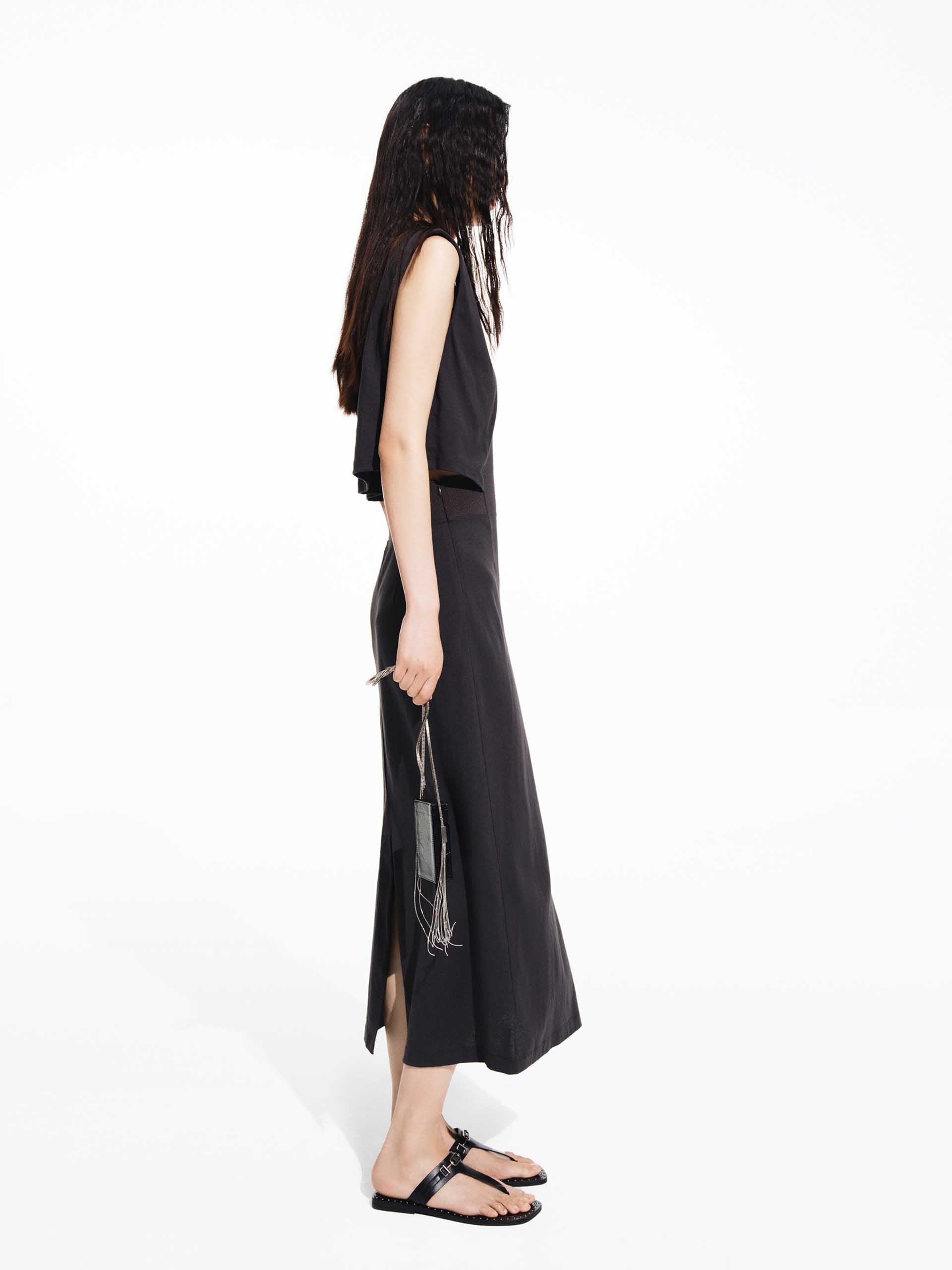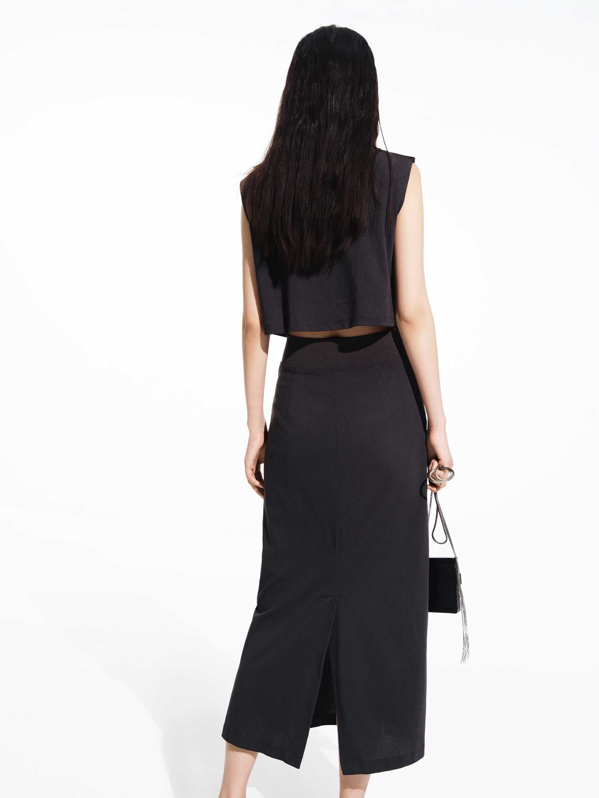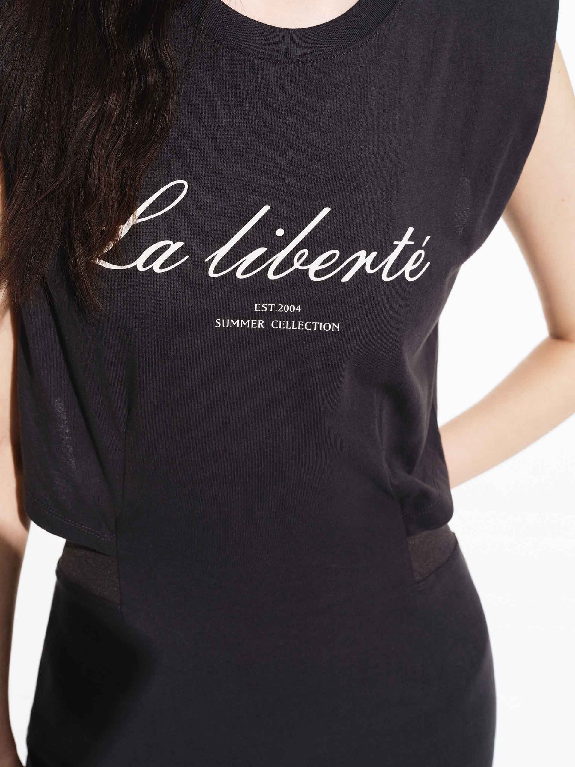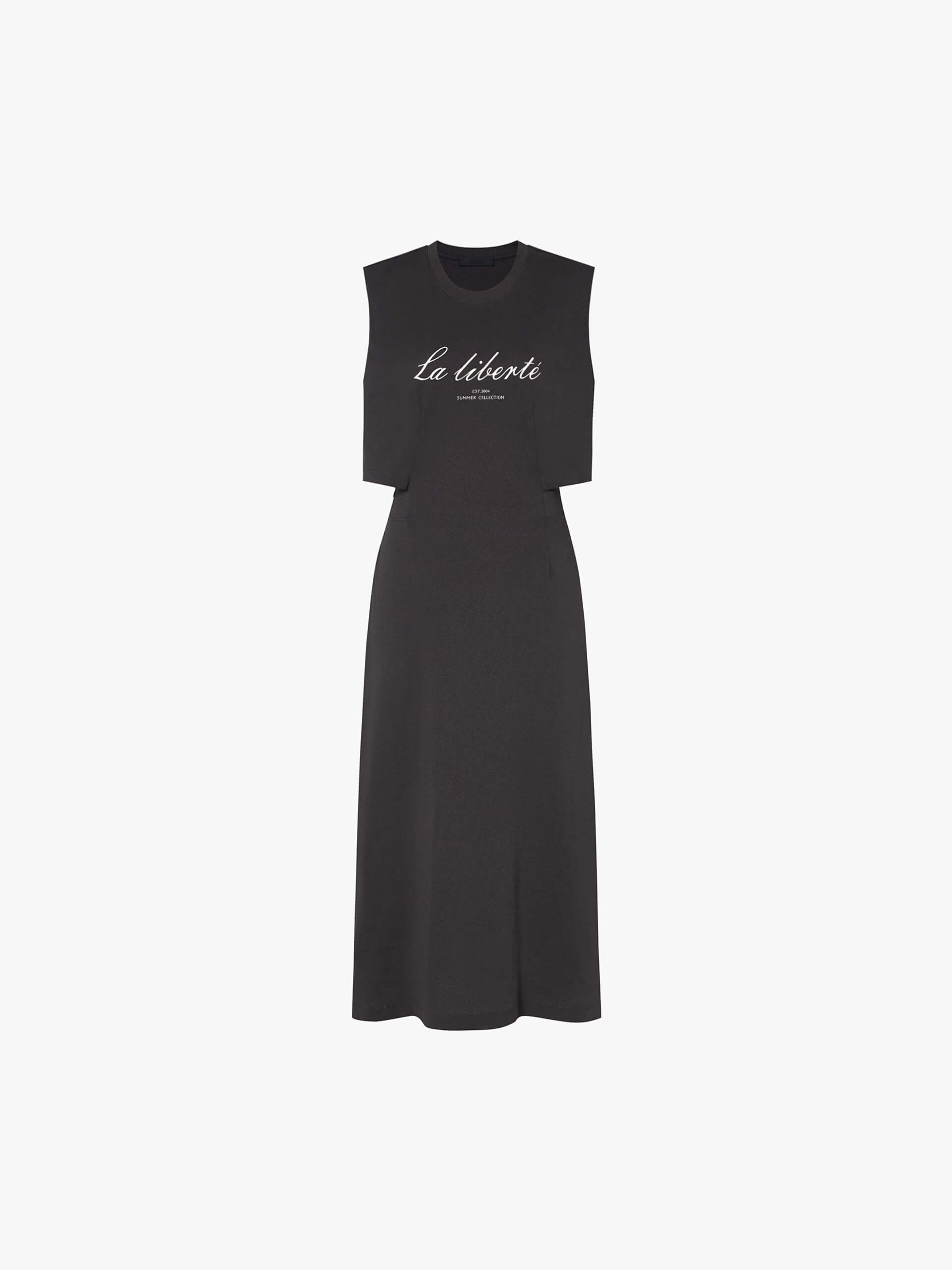 This stylish maxi dress is perfect for making a statement this summer. Made from soft and breathable cotton fabric. Feature sleeveless design and cutout waist add a modern touch, while the slit at the back adds a hint of sophistication. The front letter print design adds a playful and unique touch to this dress. Pair it with sandals for a casual look.