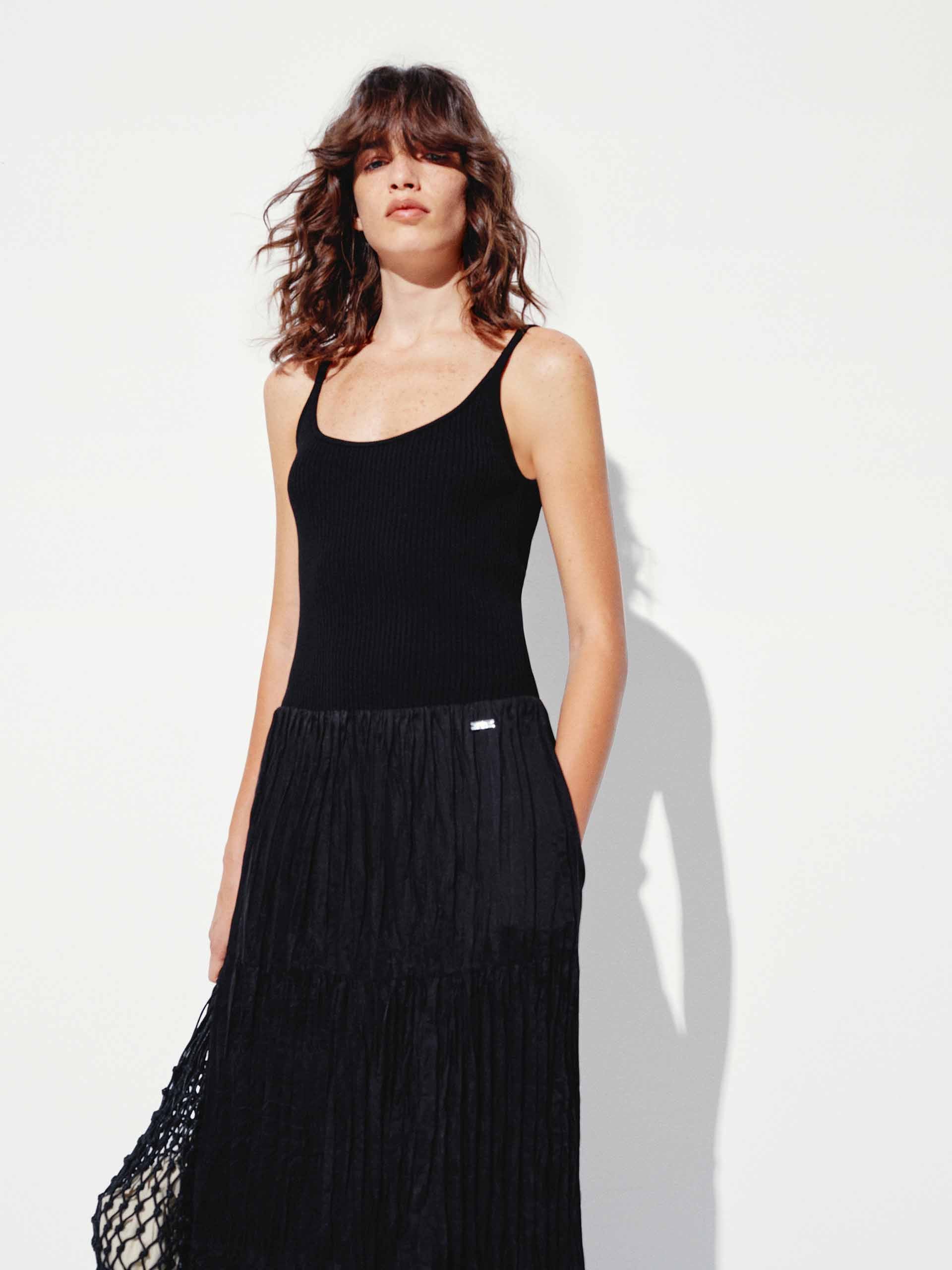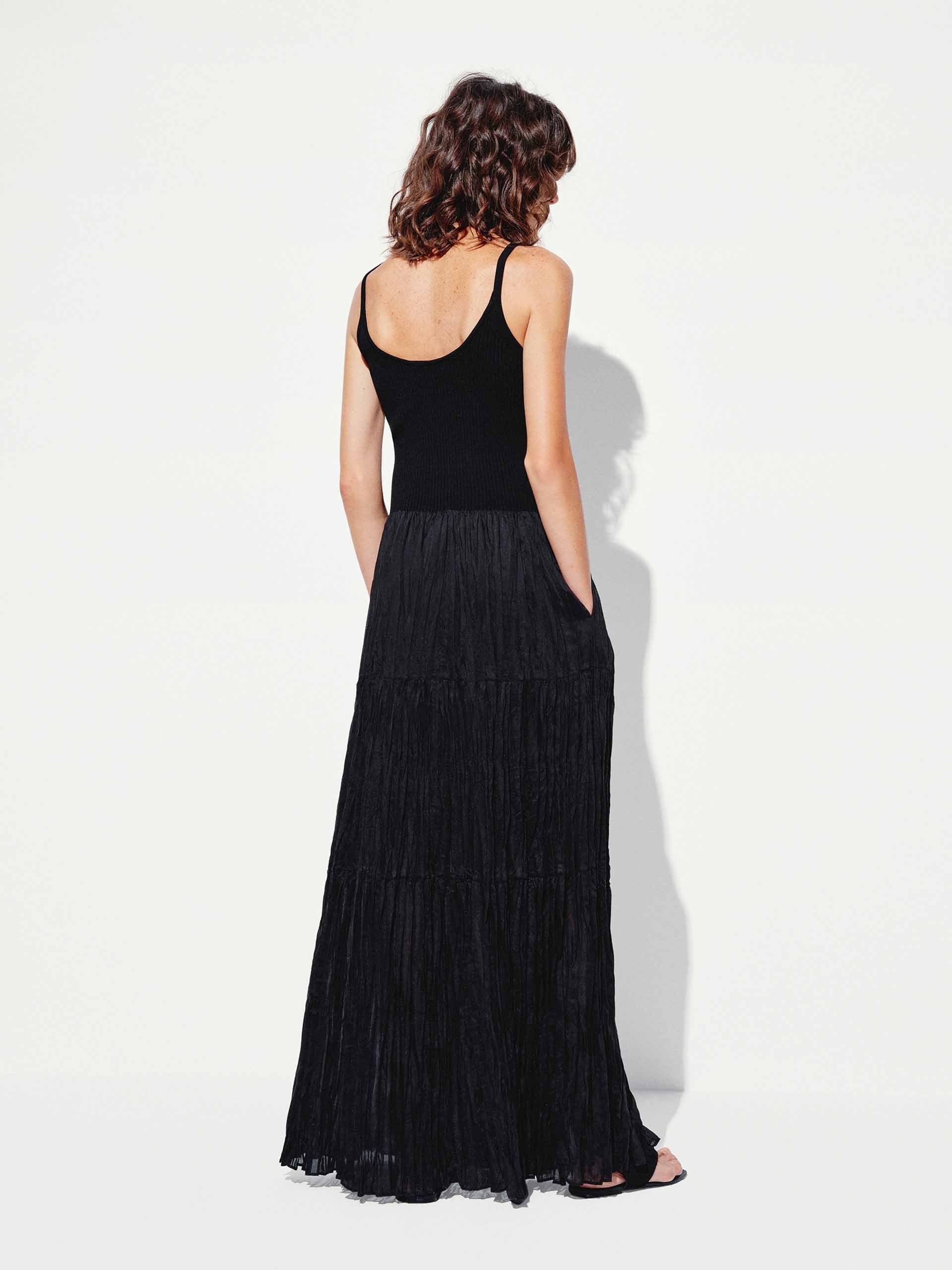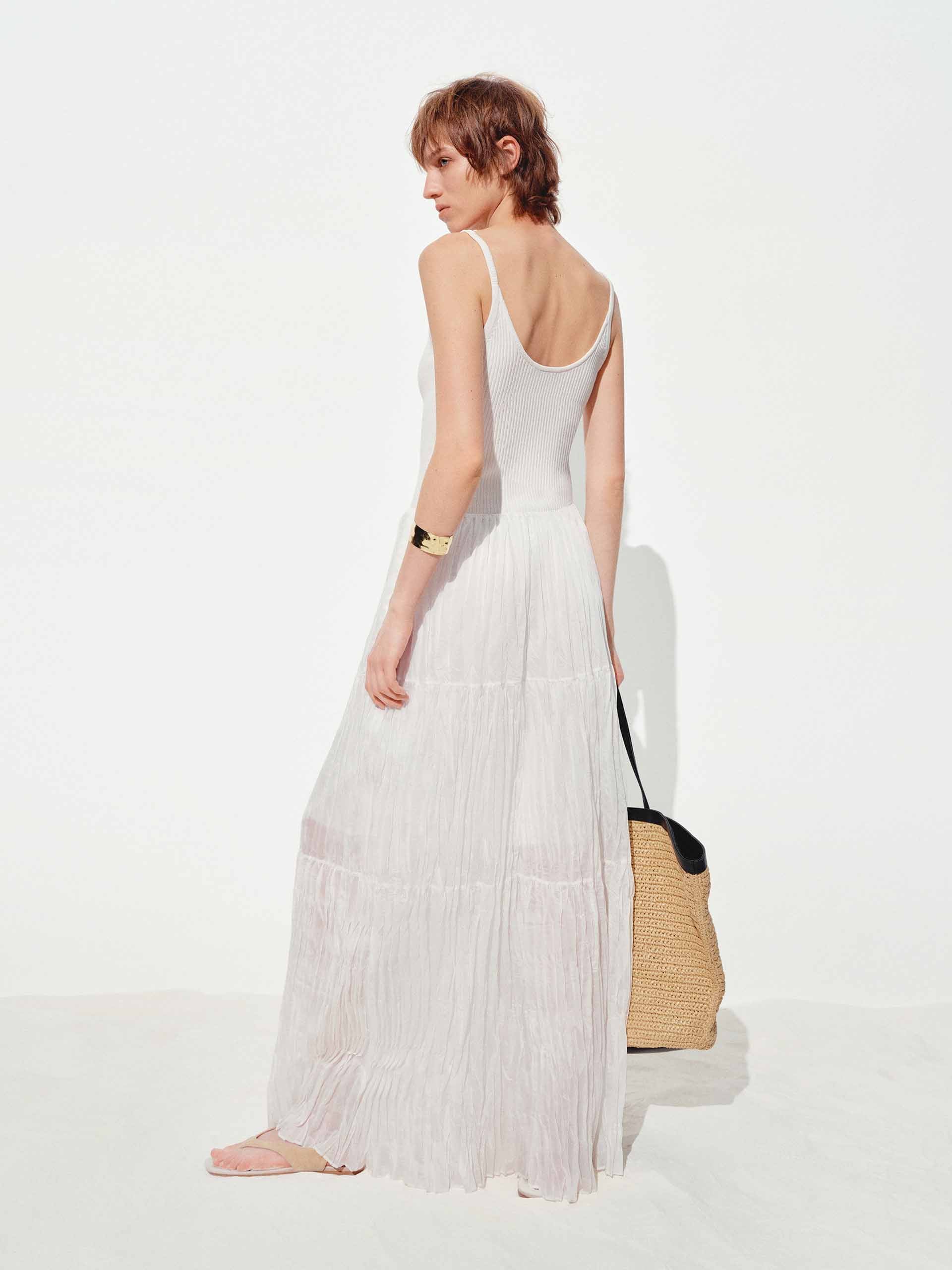 Embrace effortless elegance in this flowy dress, a stunning maxi design that blends structure with softness. The regular fit glides over your curves gracefully, while clever vest-inspired detailing adds a contemporary edge to the romantic silhouette. Delicate tulle panel accents create subtle texture and movement, whisper of sheerness for a tastefully alluring effect.