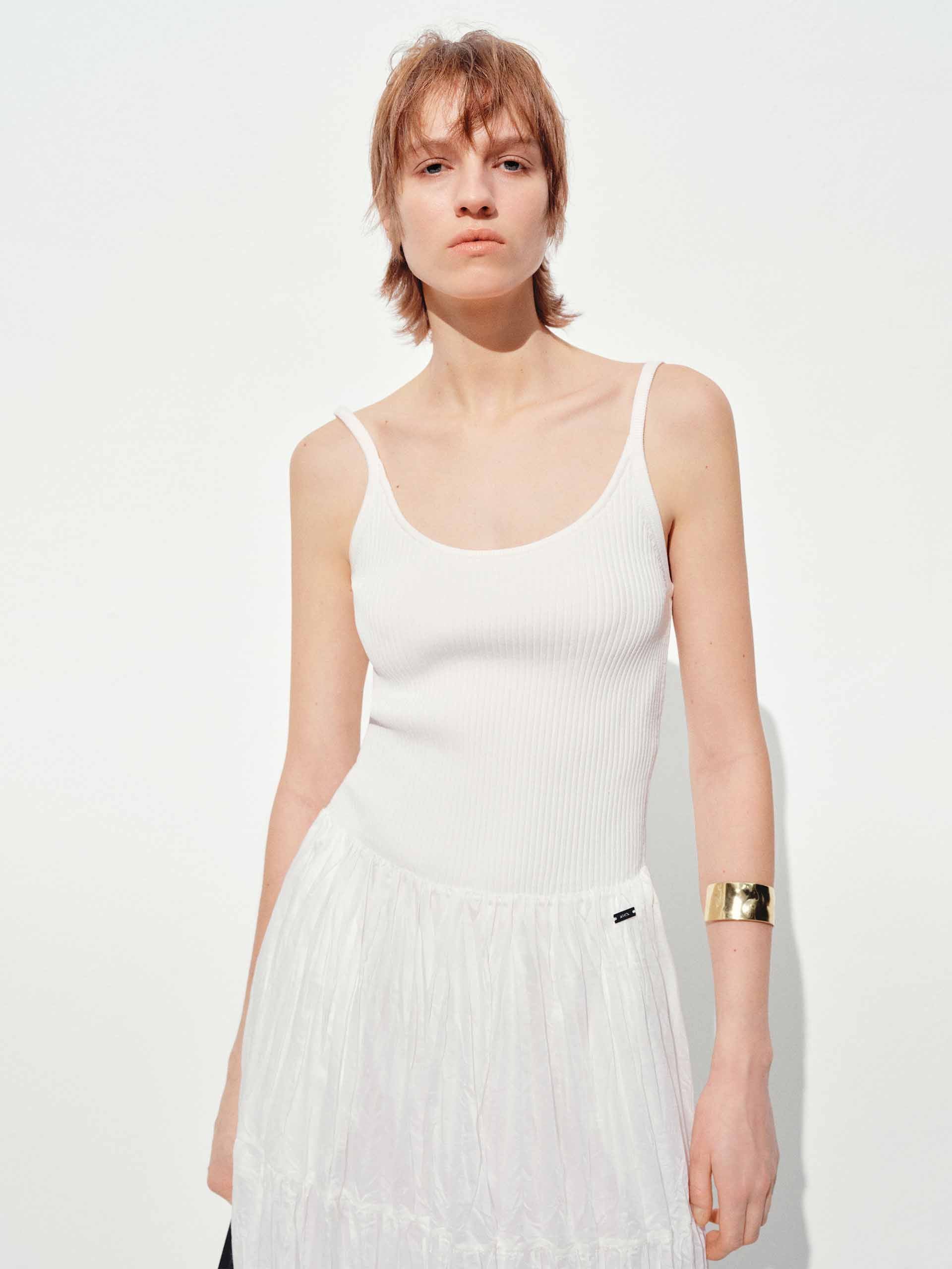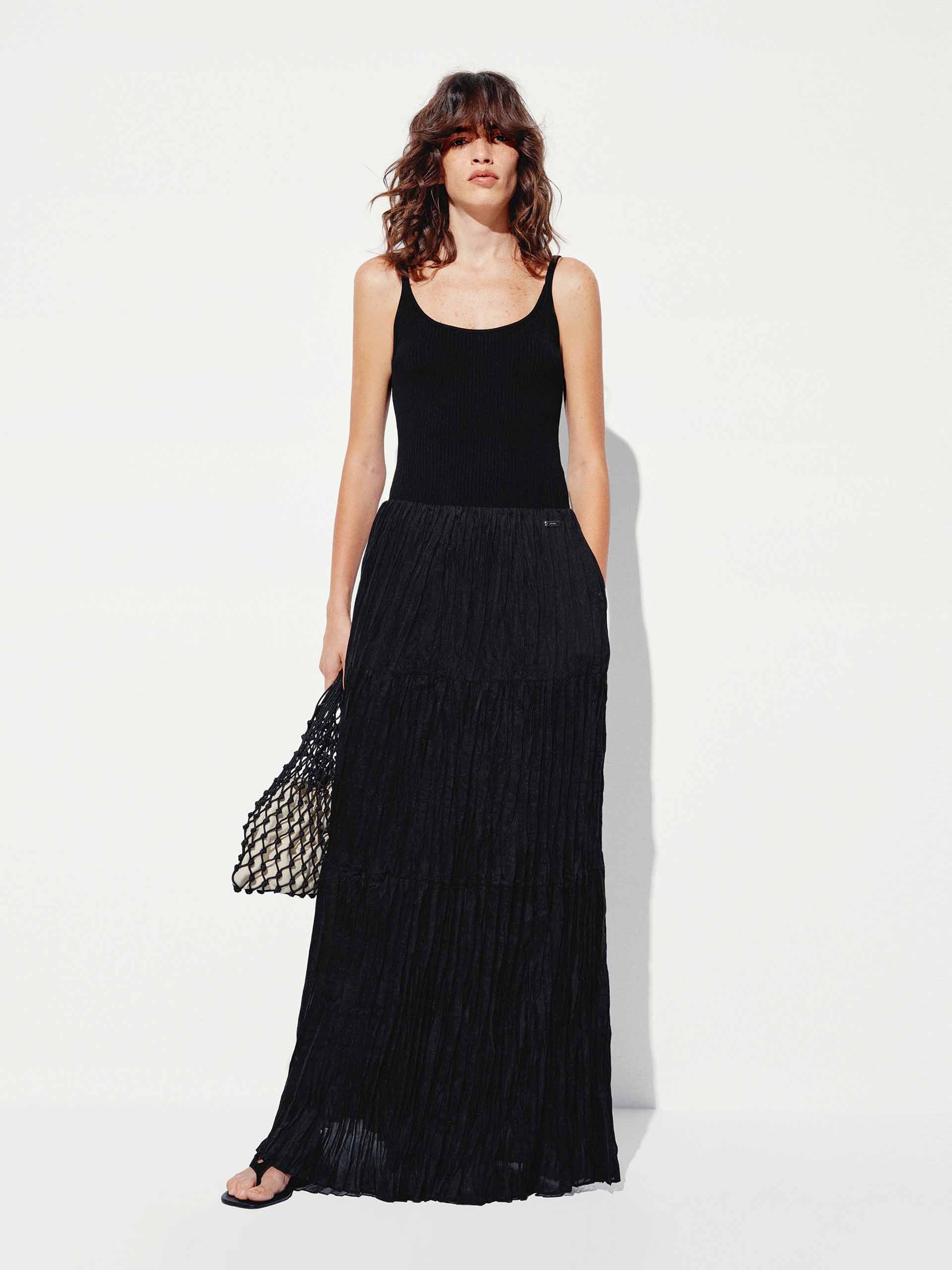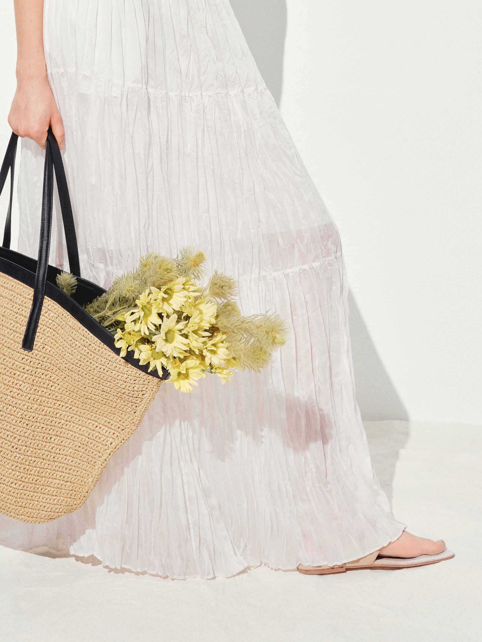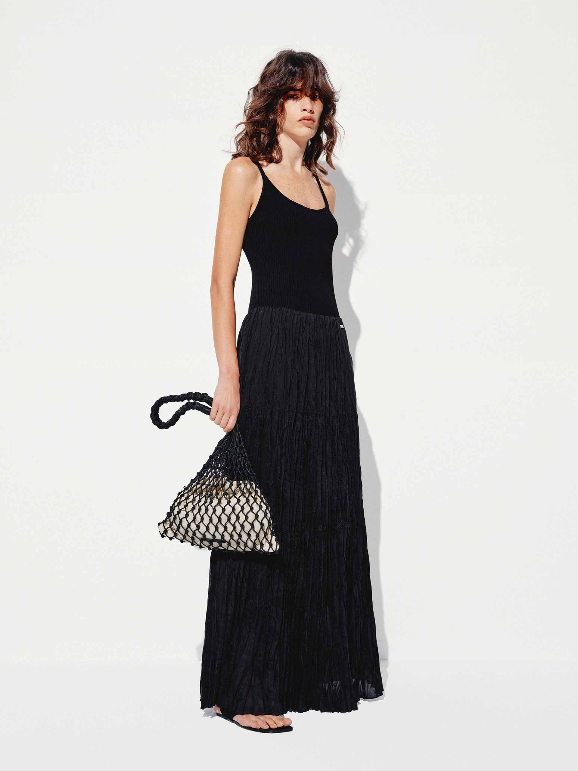 Embrace effortless elegance in this flowy dress, a stunning maxi design that blends structure with softness. The regular fit glides over your curves gracefully, while clever vest-inspired detailing adds a contemporary edge to the romantic silhouette. Delicate tulle panel accents create subtle texture and movement, whisper of sheerness for a tastefully alluring effect.