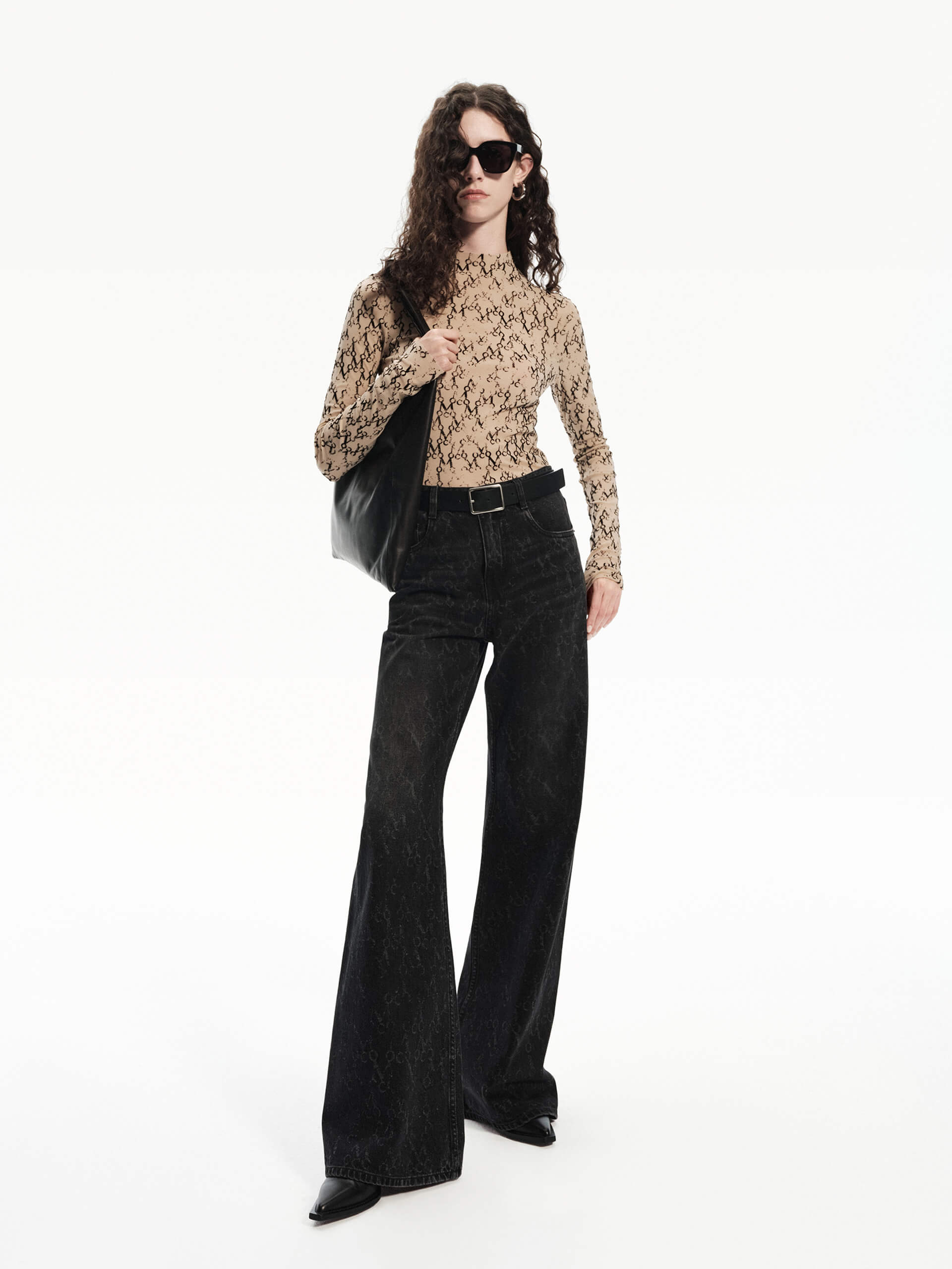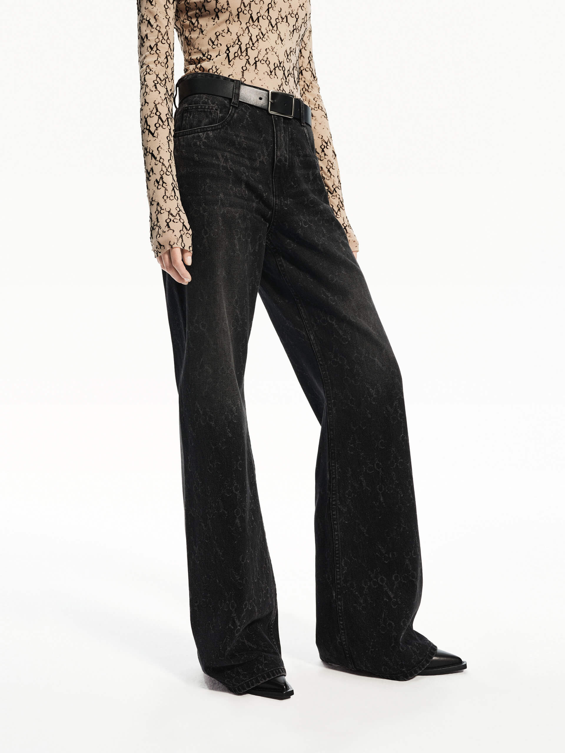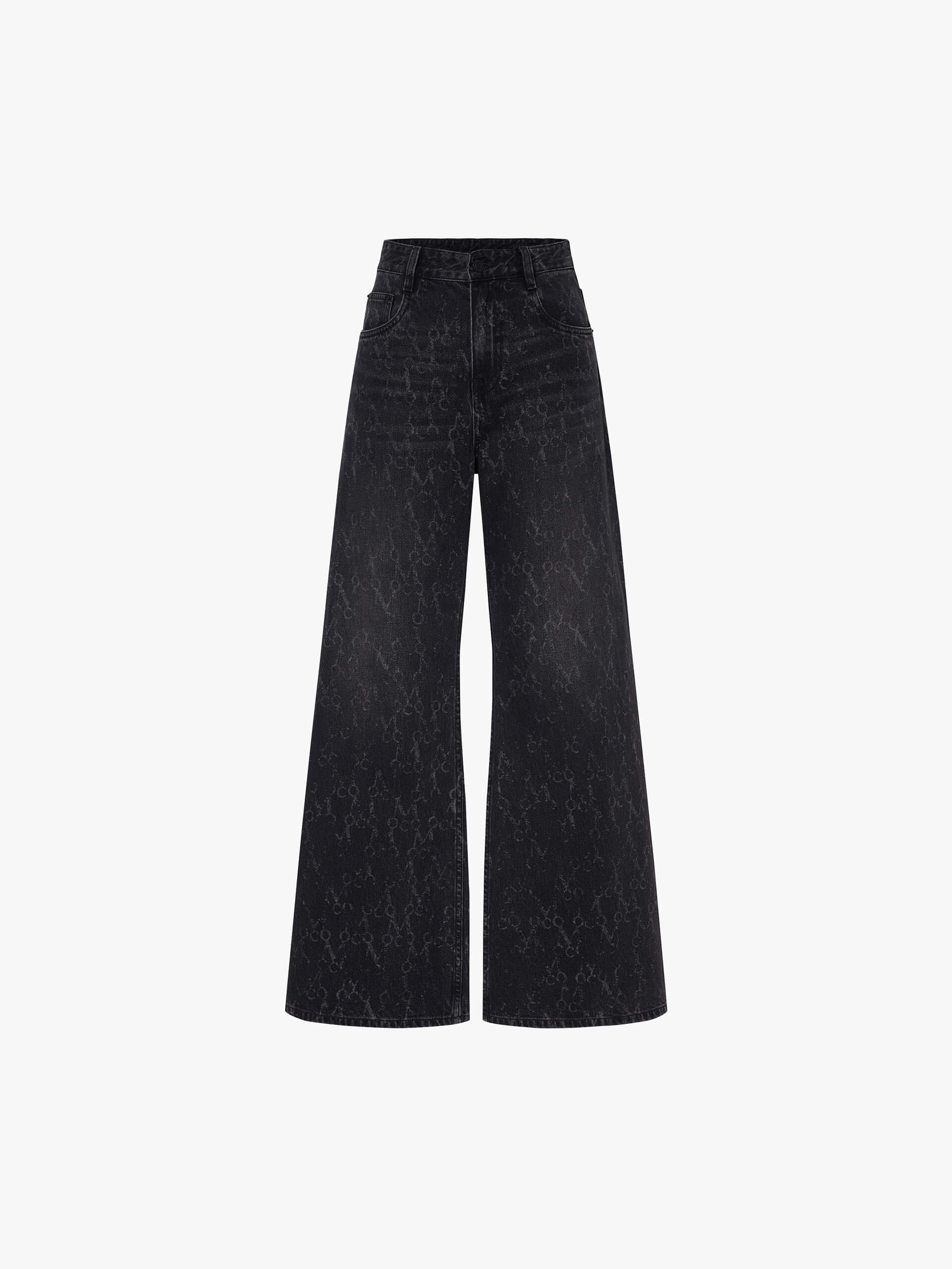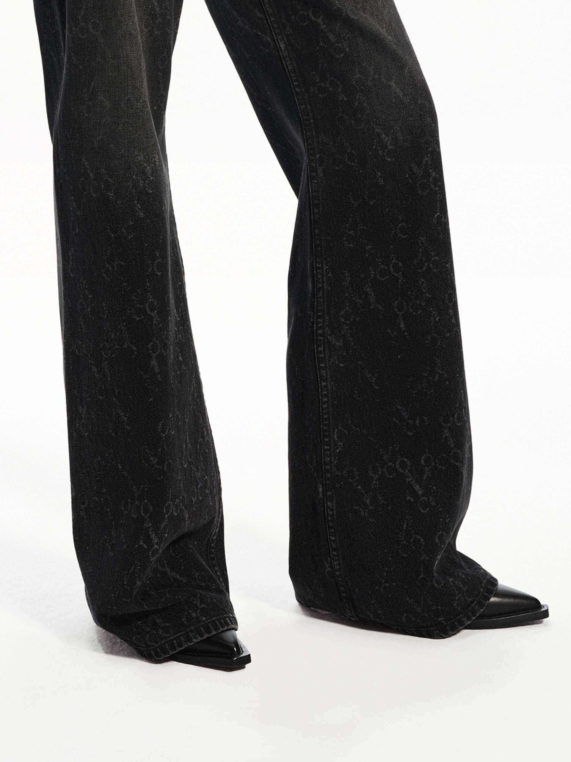 These jeans offer an unconventional approach to traditional denim codes. Cut in a vintage flared wide-leg silhouette with all-over monogram detailing. Crafted from a lightweight black cotton denim. Pair with our fitted top for an easy transition into fall.