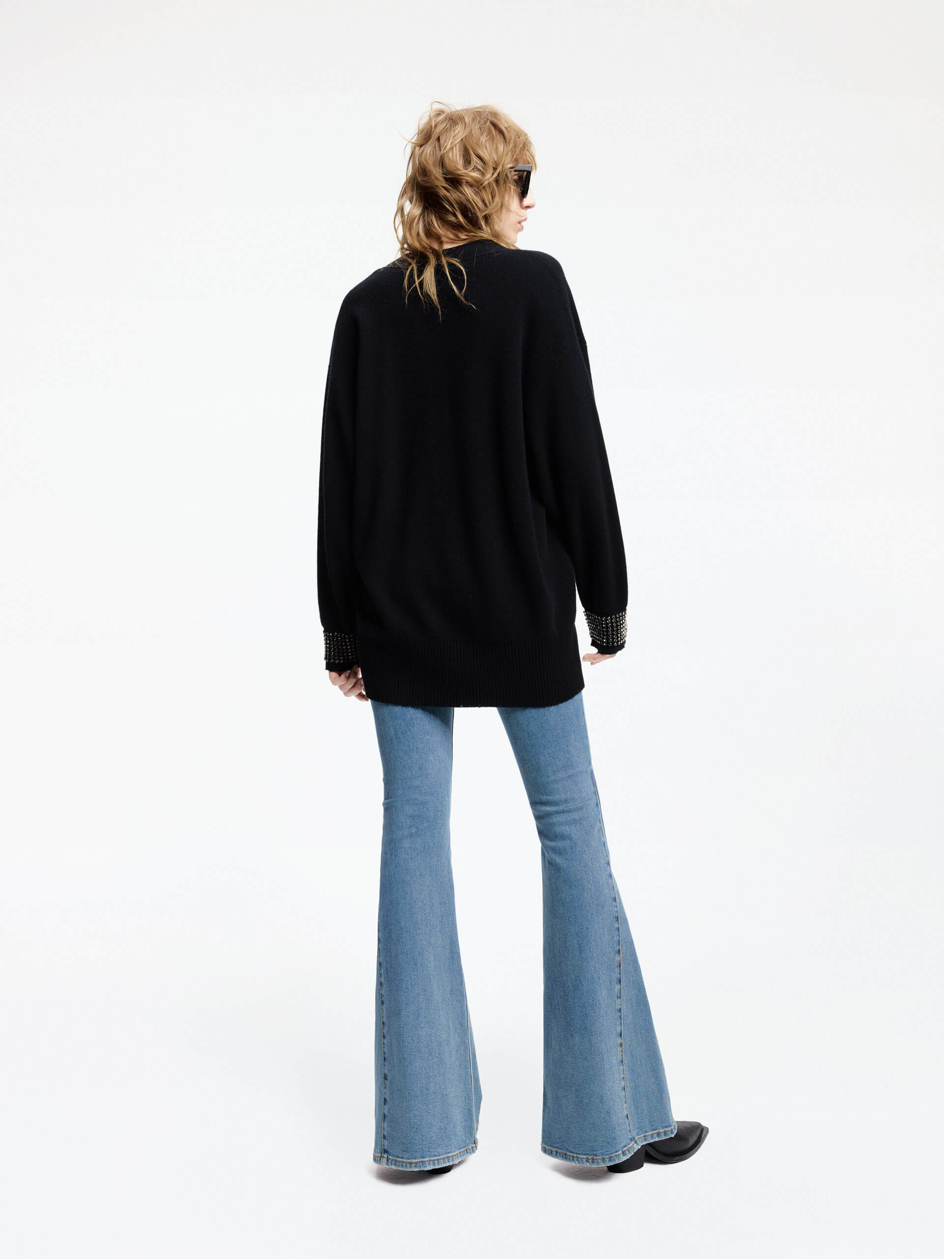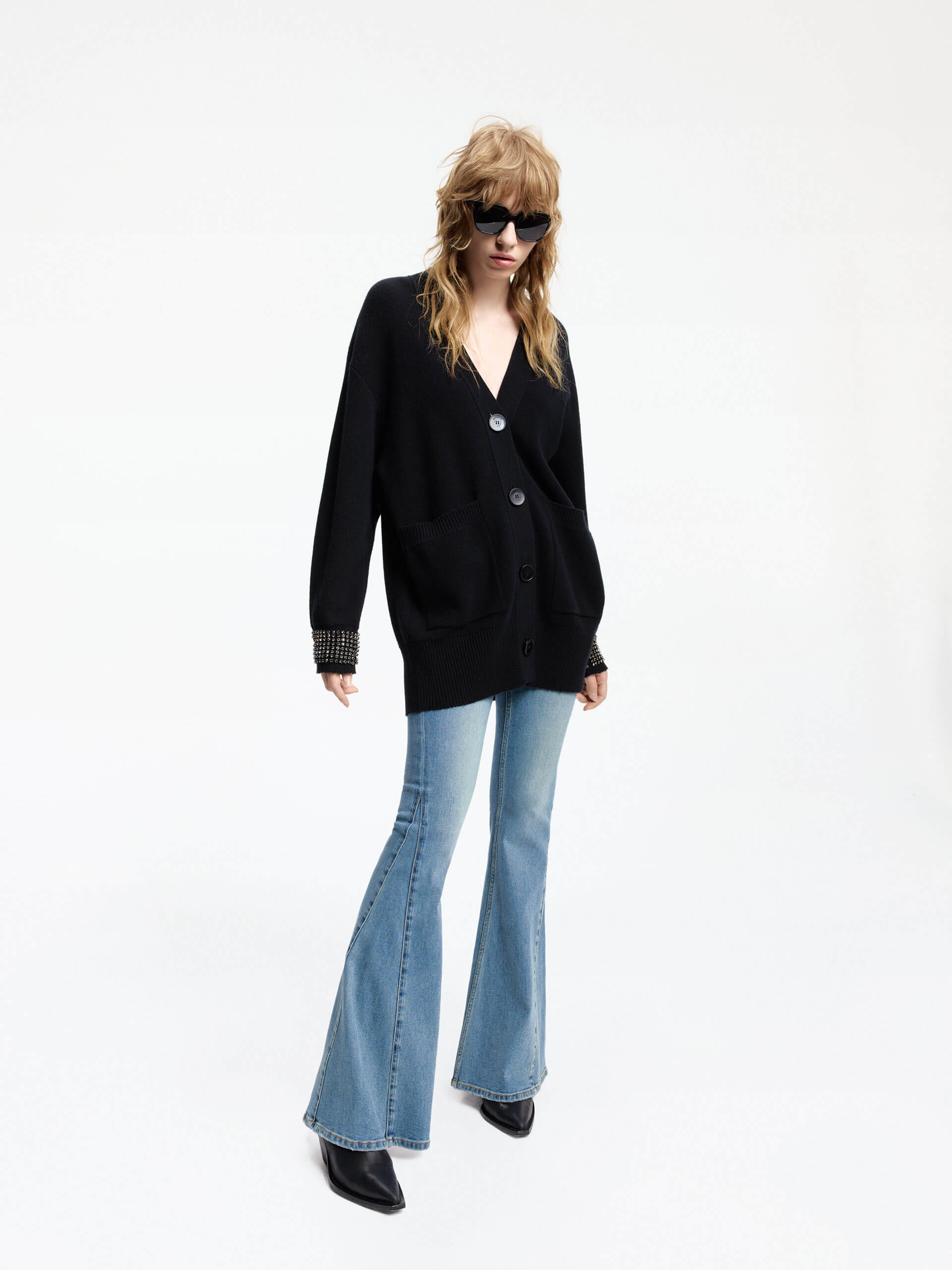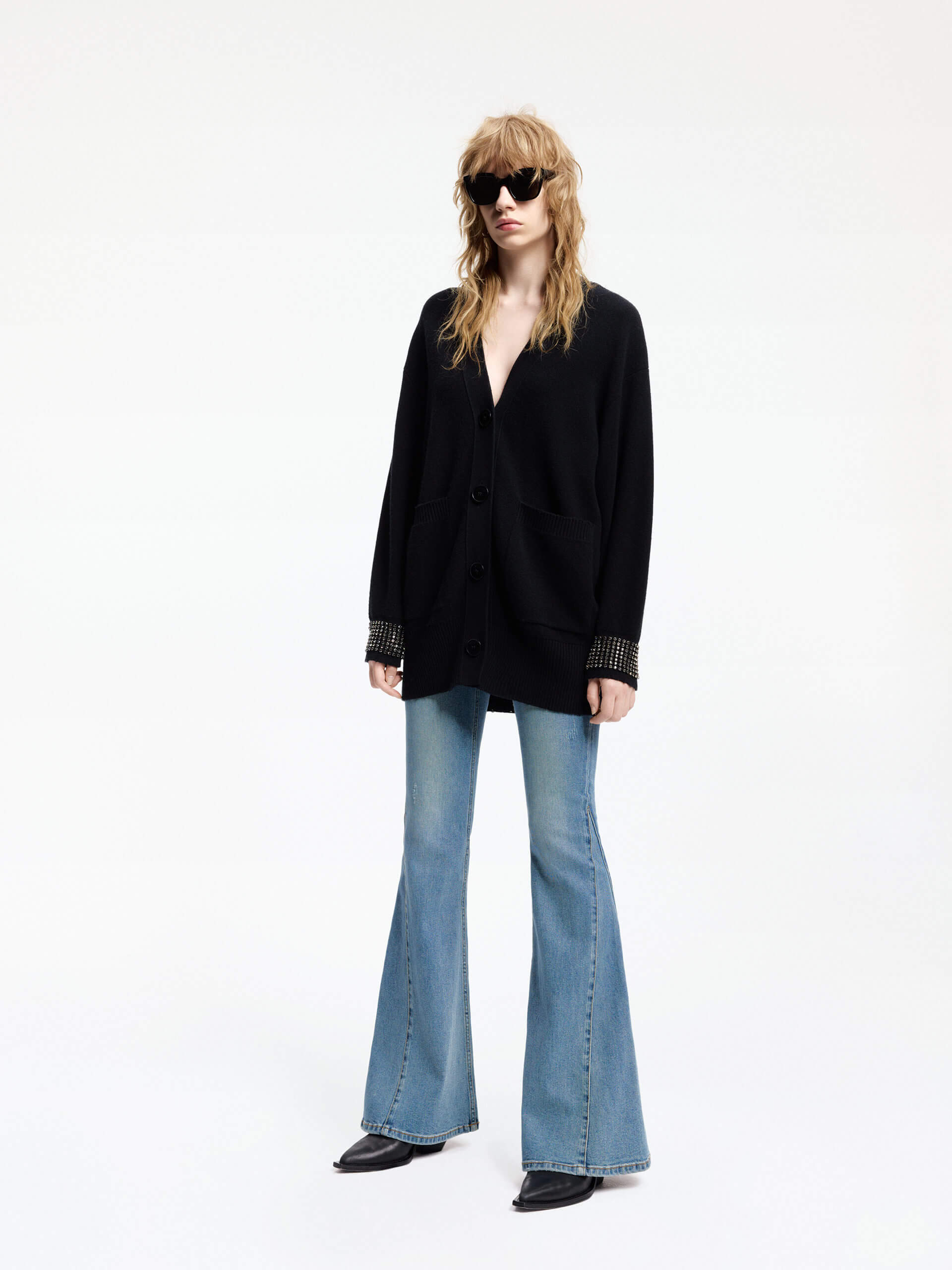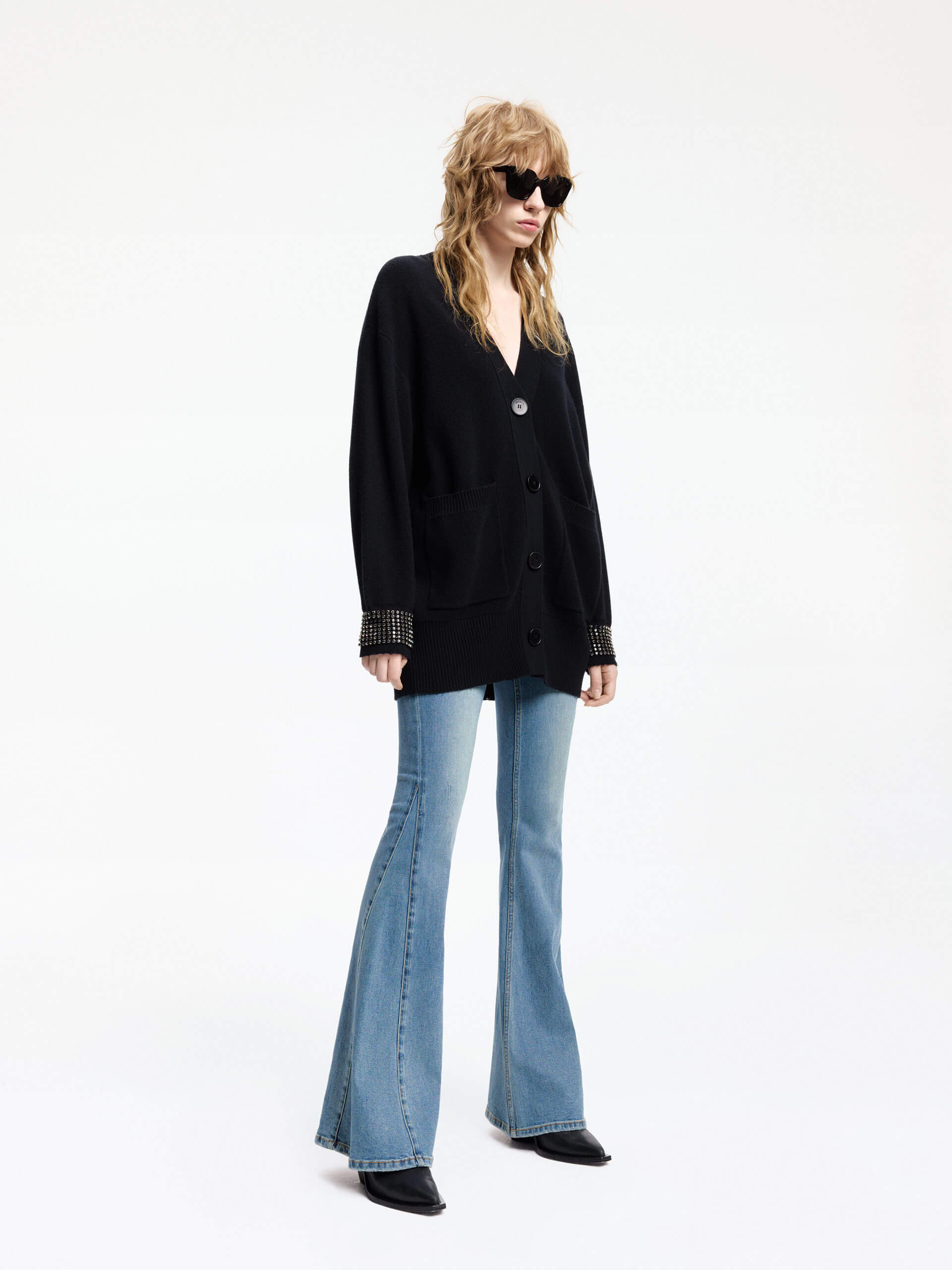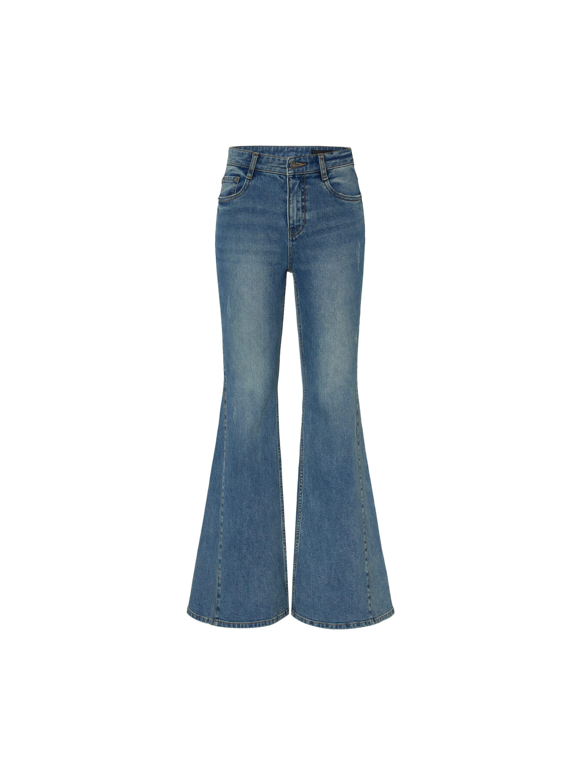 These jeans are crafted from an organic cotton blend in a mid-blue wash. Feature a flared full-length leg for a classic silhouette. The angled seams on the hem create a visually elongating effect, giving you a longer and leaner appearance.