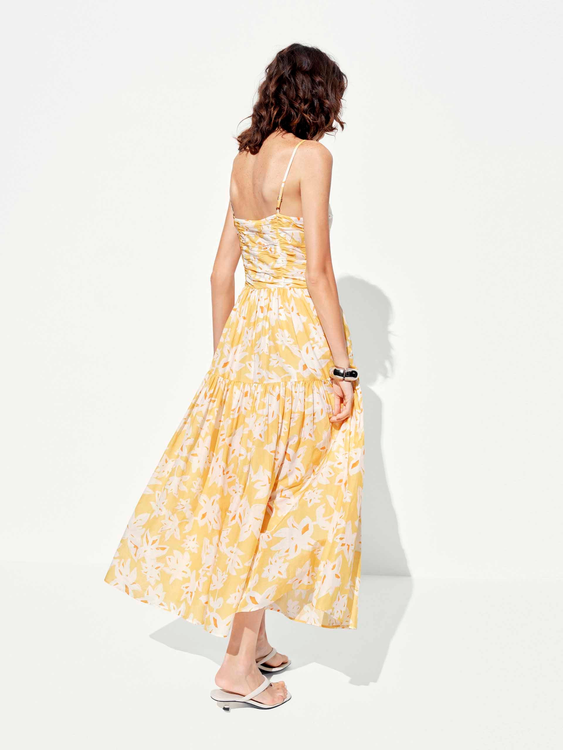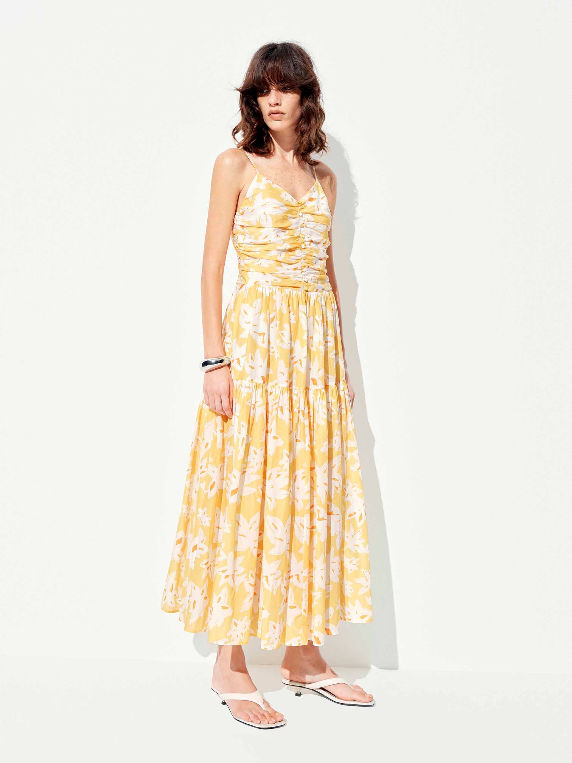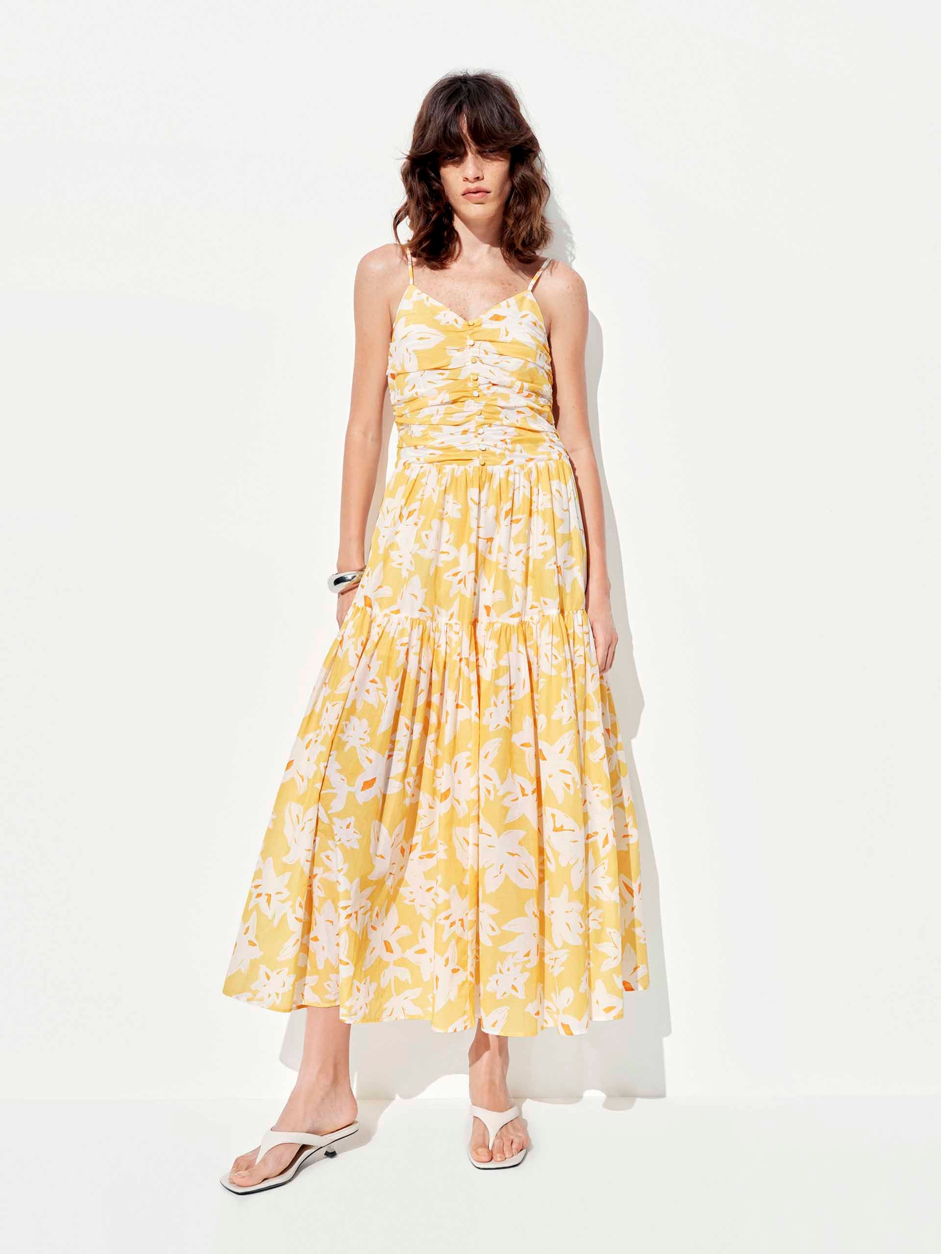Embrace effortless femininity in this flowy maxi-length dress, designed to flatter with its elegant pleated detailing and figure-defining cinched waist. The delicate spaghetti straps and romantic floral print create a dreamy, ethereal vibe, perfect for sunny days and special occasions alike.