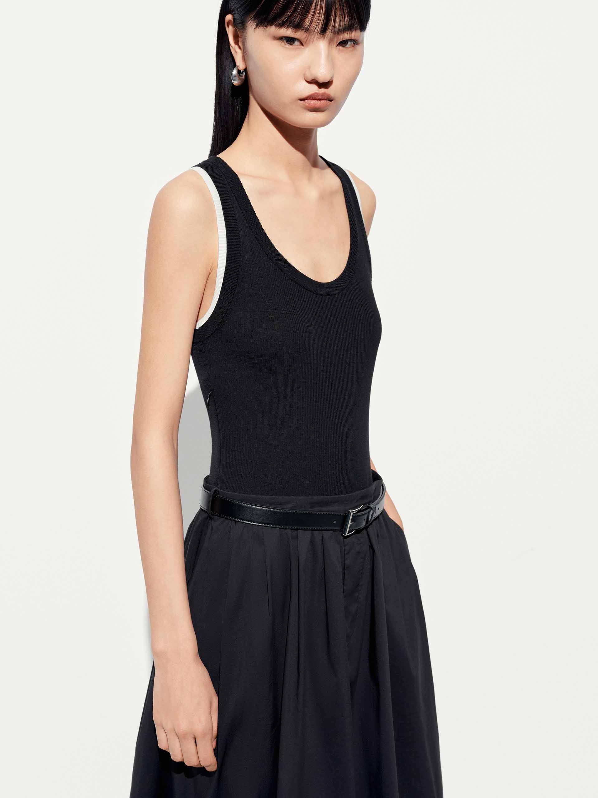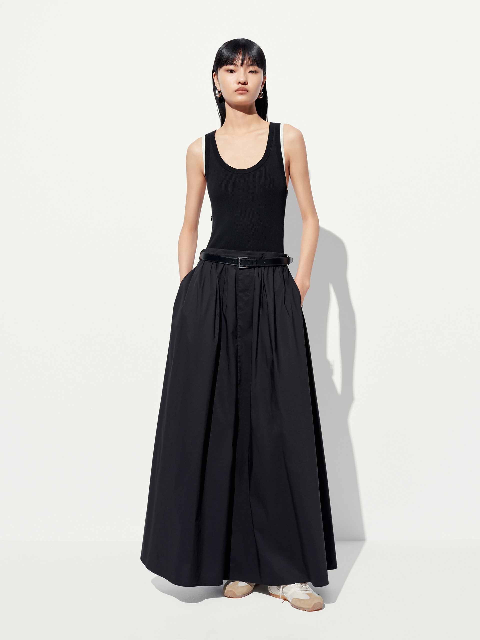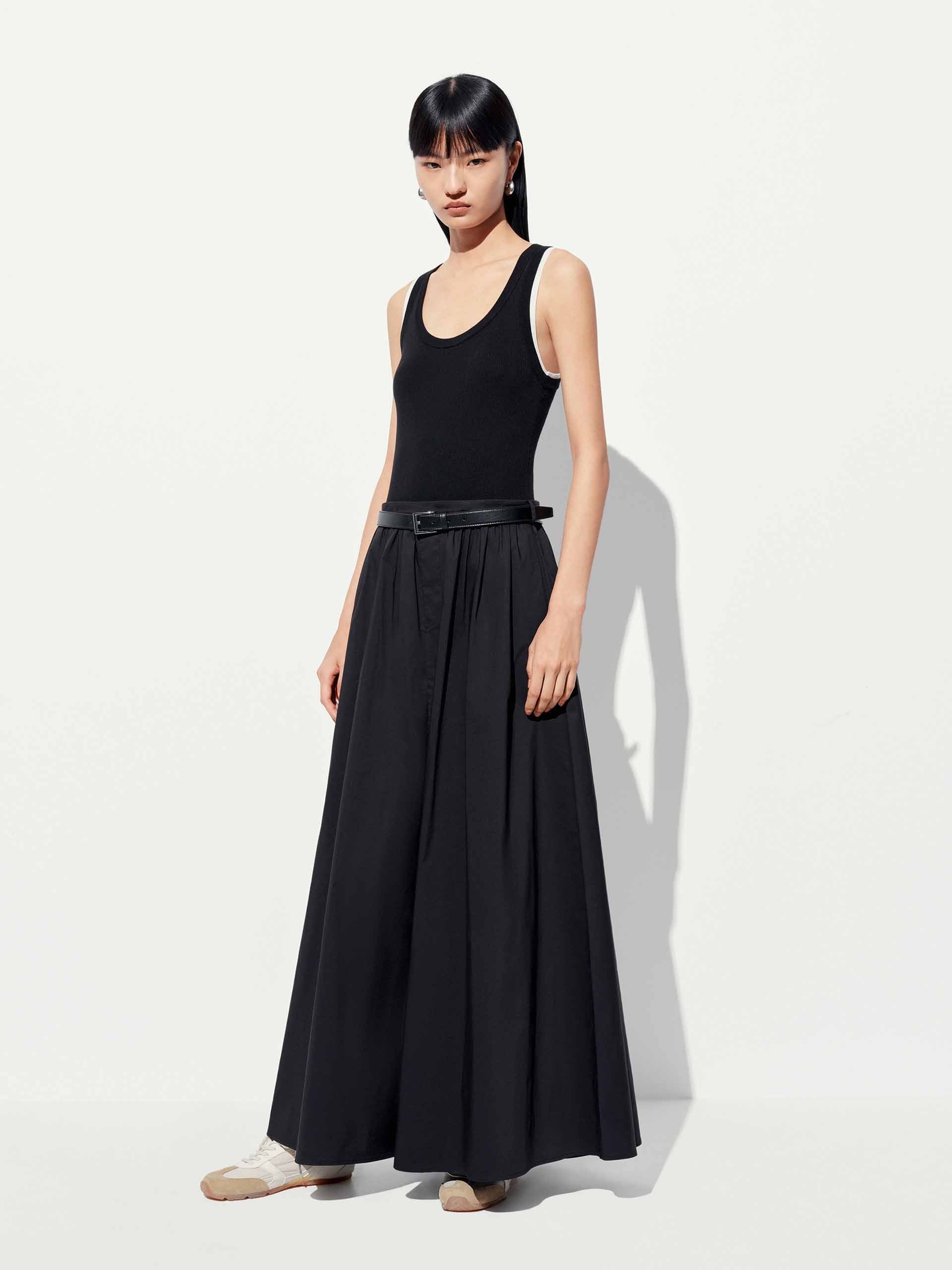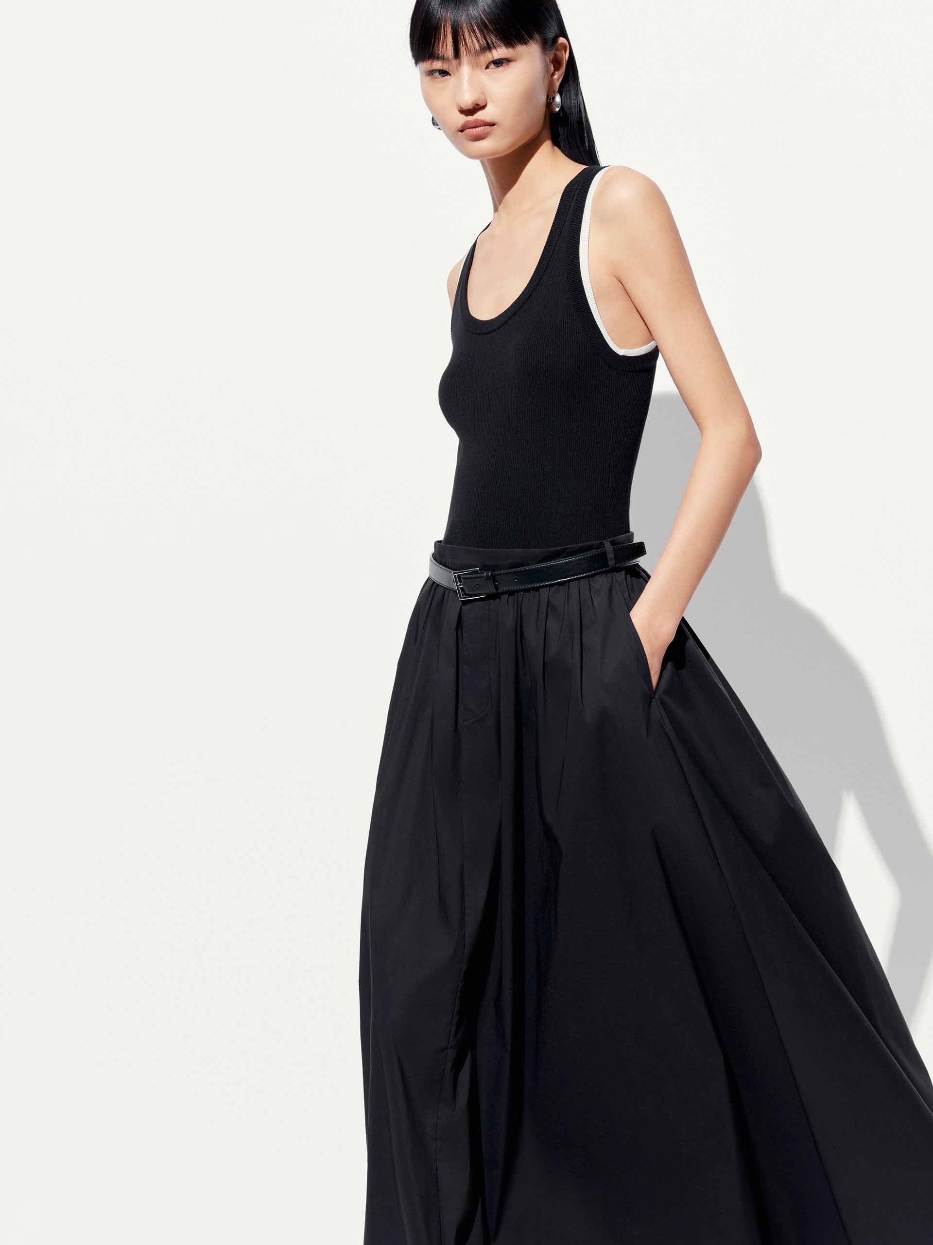 Embrace timeless elegance in this flattering maxi-length dress, designed for effortless sophistication. The regular fit drapes beautifully while the U-neck and sleeveless design offer a clean, feminine silhouette. Crafted in a versatile classic black hue, this dress transitions seamlessly from day to night. Thoughtful side pockets blend practicality with style—perfect for keeping essentials close without sacrificing sleekness.