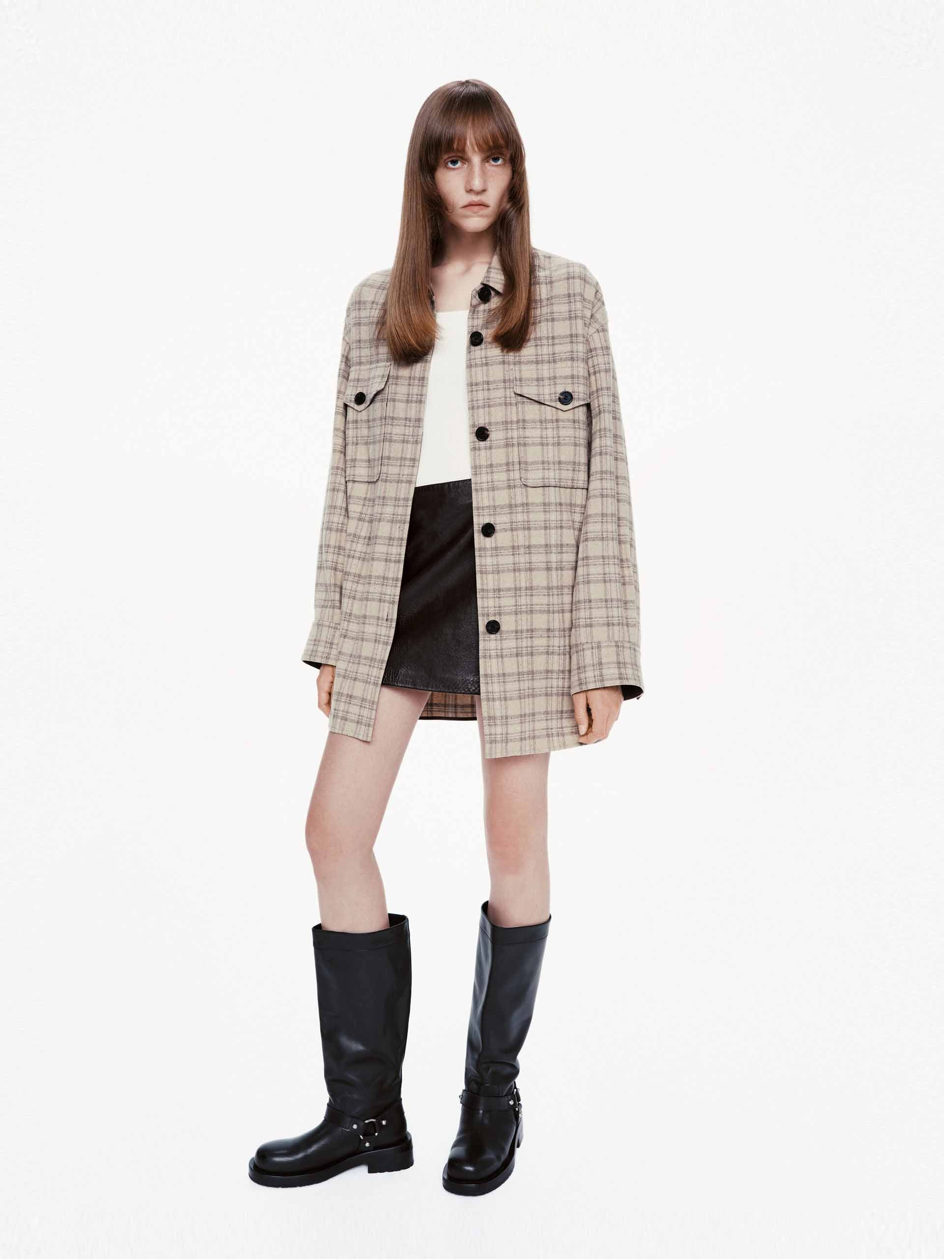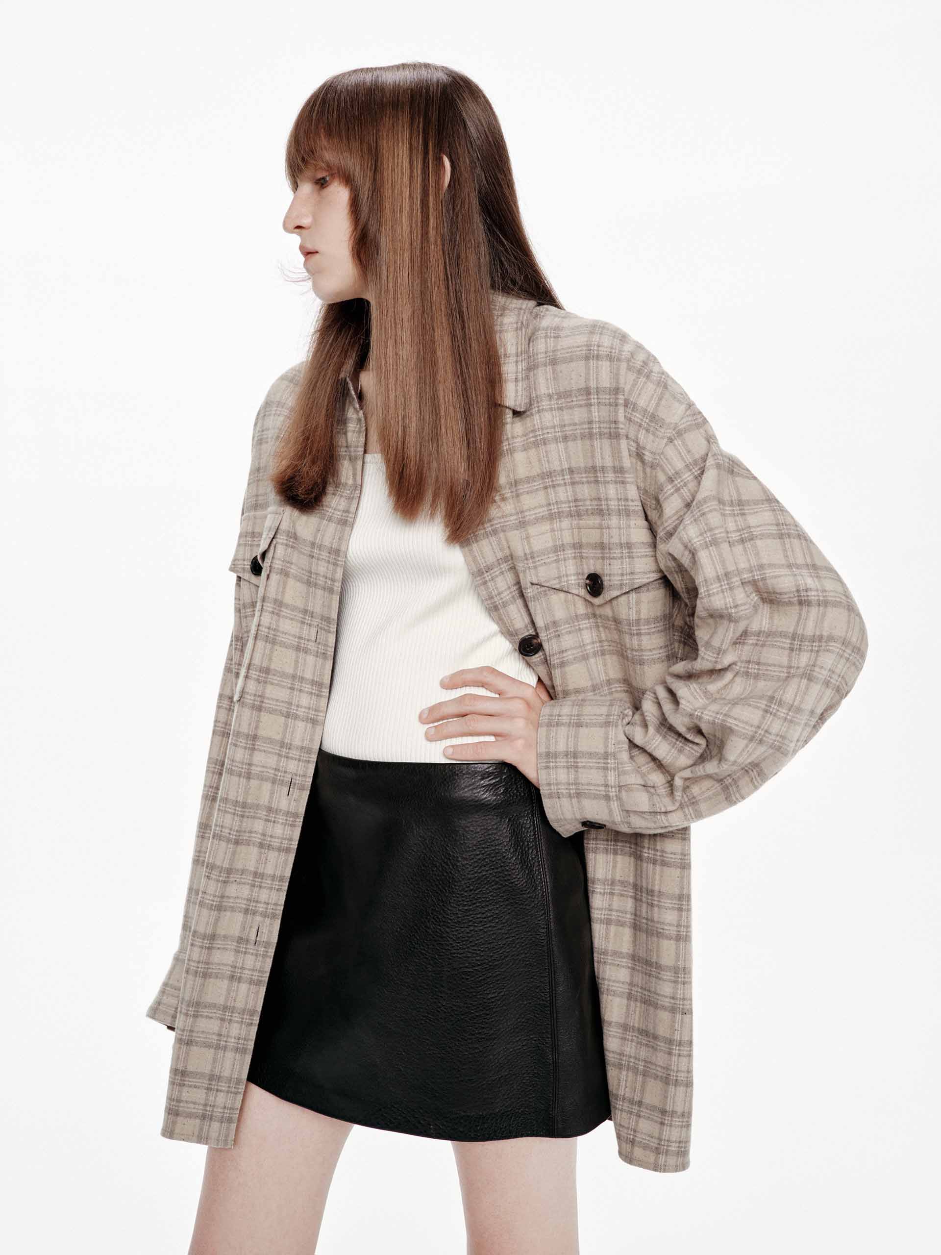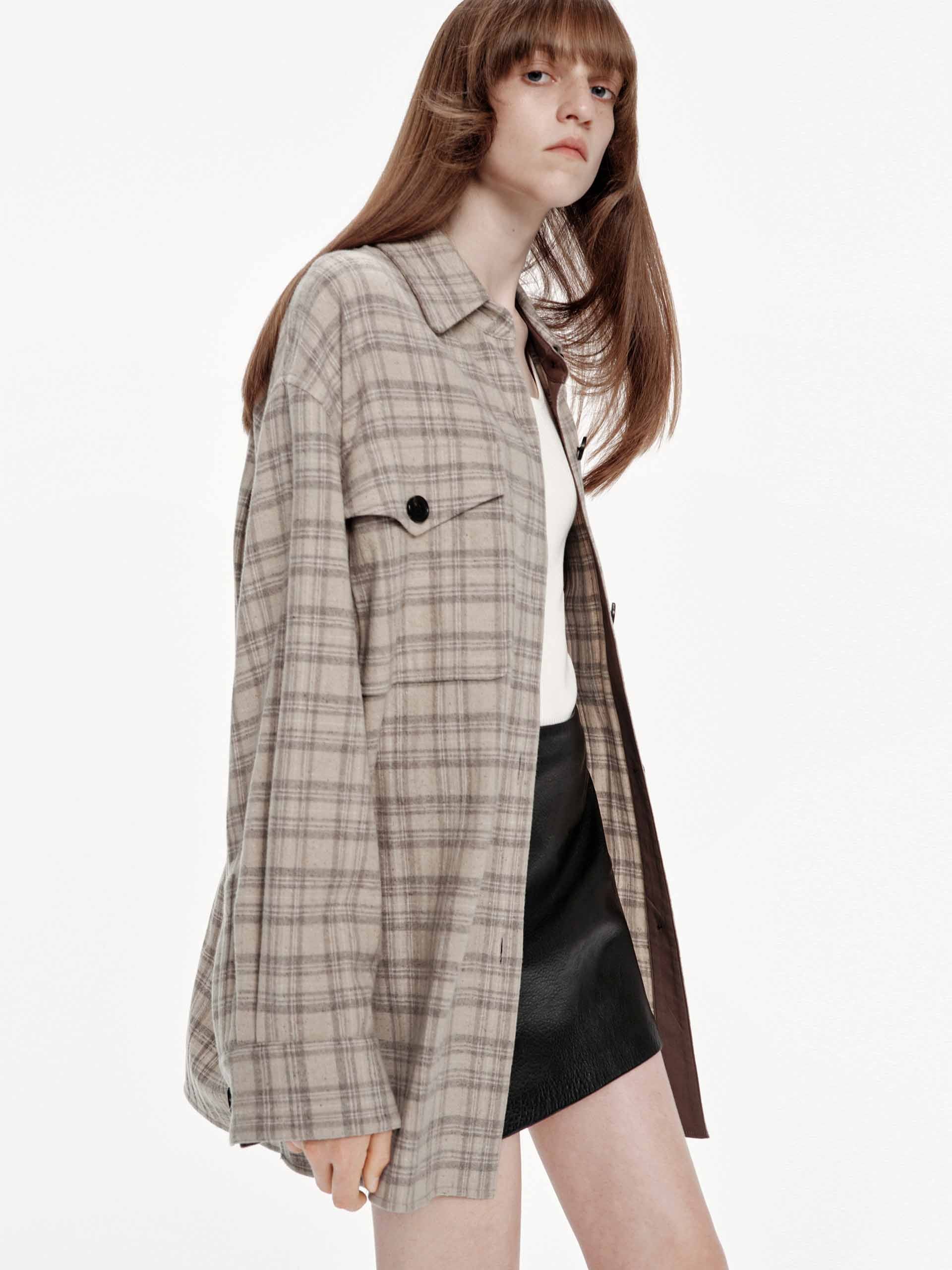 Blend timeless sophistication with contemporary ease in this coat—a modern reinterpretation of a classic shirt silhouette. It features a sharp button closure and long sleeves, offering effortless style and adaptable coverage. Practical chest pockets add a touch of functionality, while the elegant plaid pattern infuses the design with depth, texture, and heritage charm.