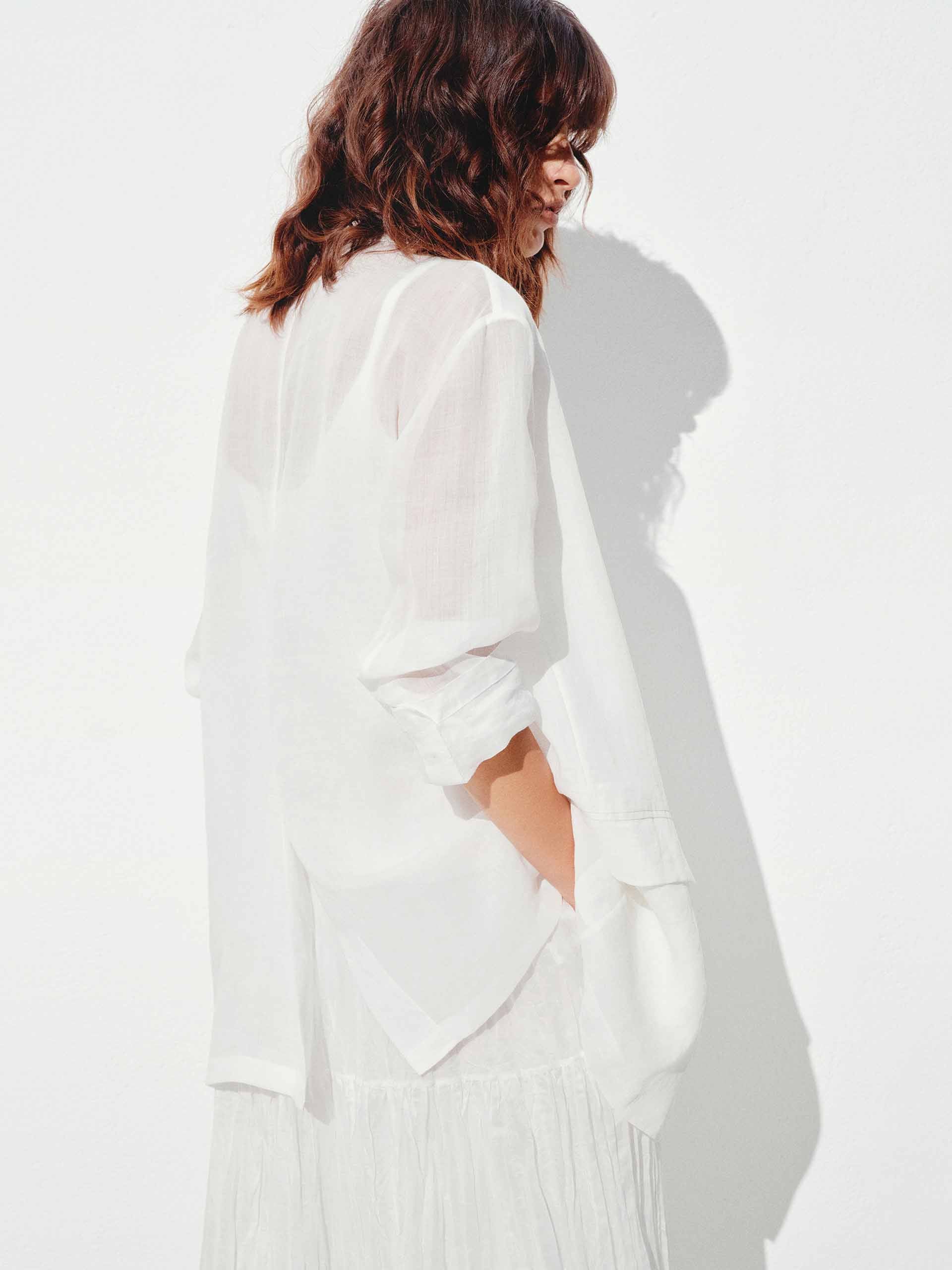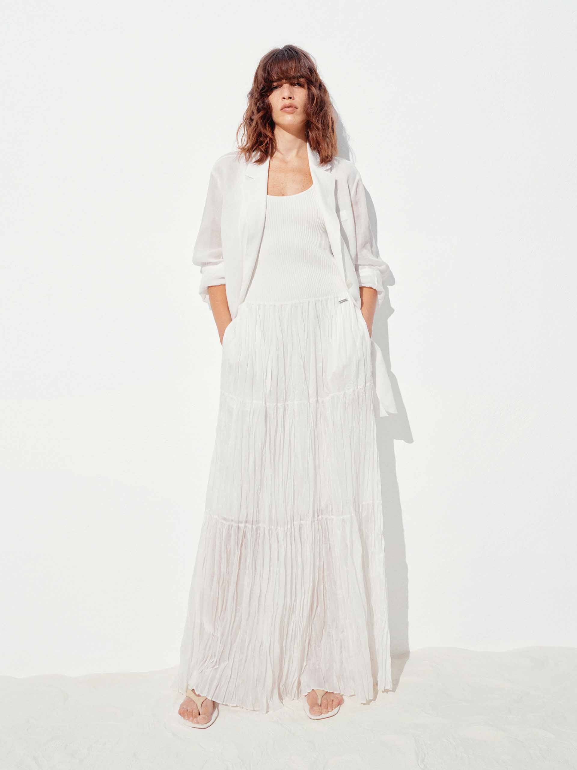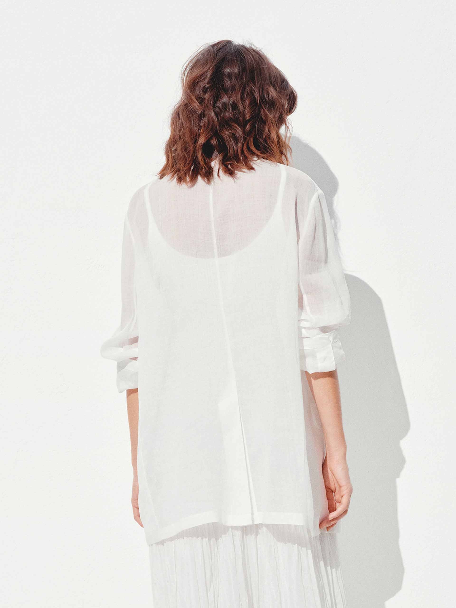 Featuring a peak lapel and button closure, this blazer exudes timeless charm. The practical patch pockets enhance both style and functionality. The single-breasted design with a sleek back slit adds a touch of modern refinement. Lightweight and naturally moisture-wicking, ramie fabric keeps you cool and comfortable throughout the day.