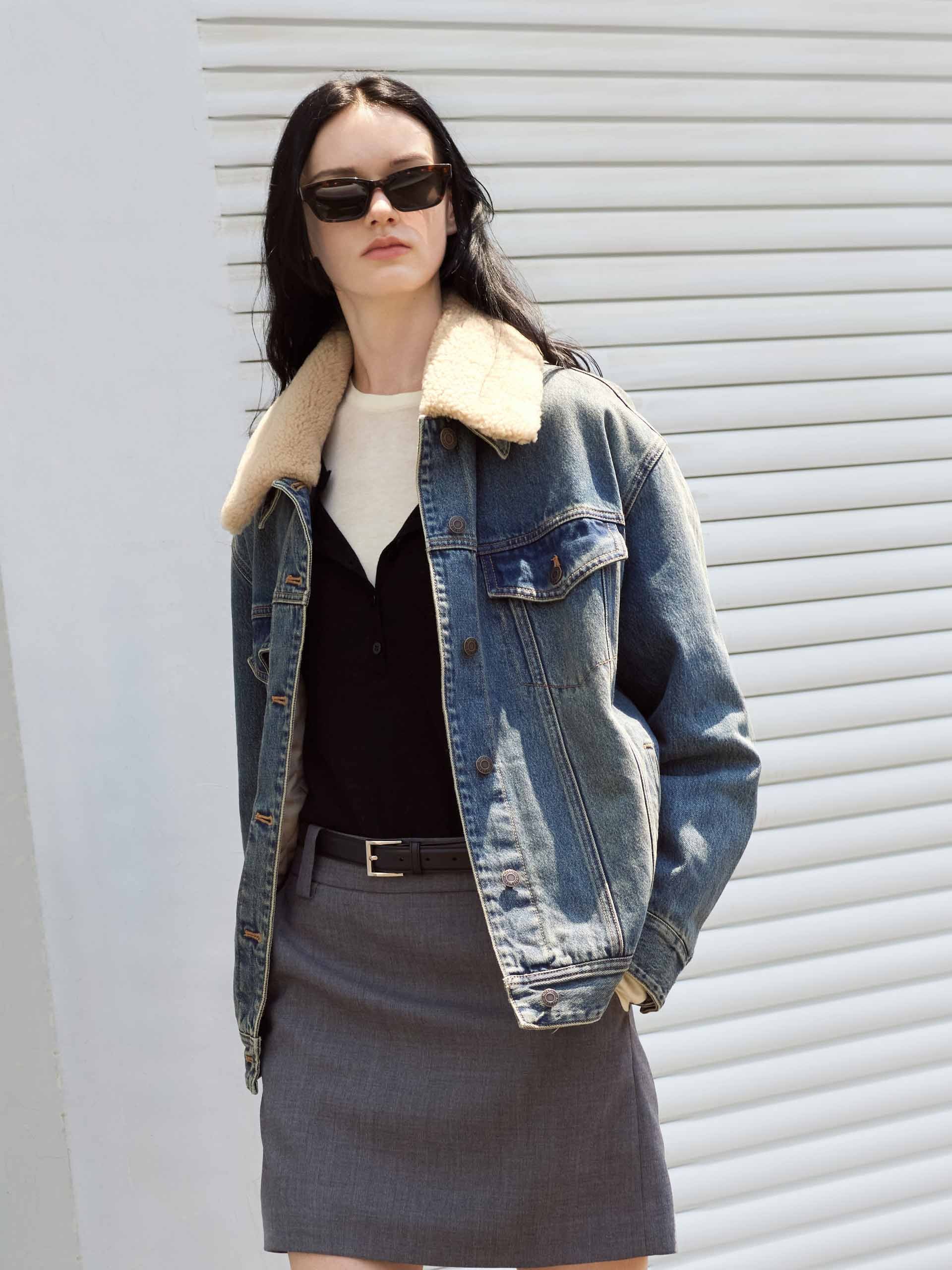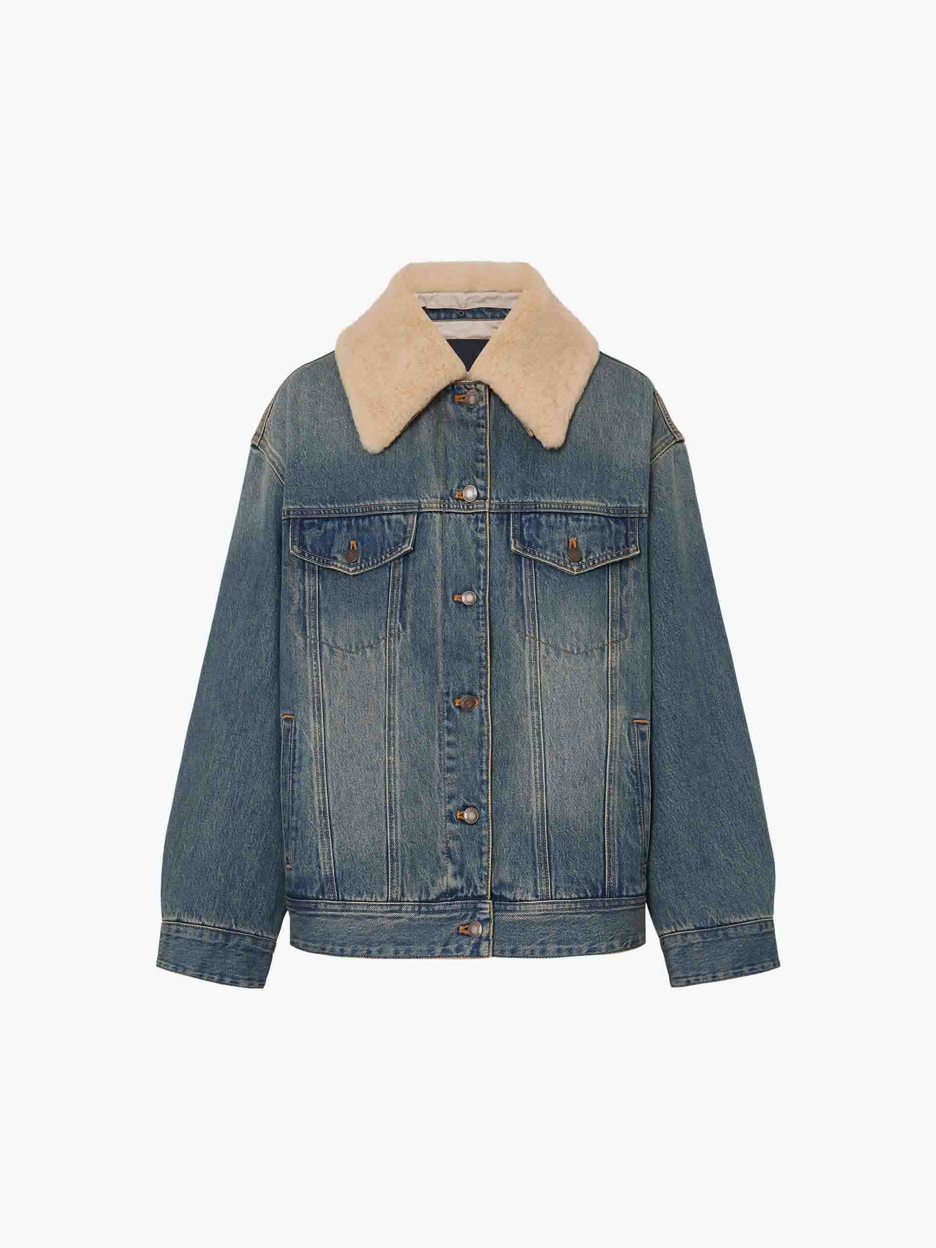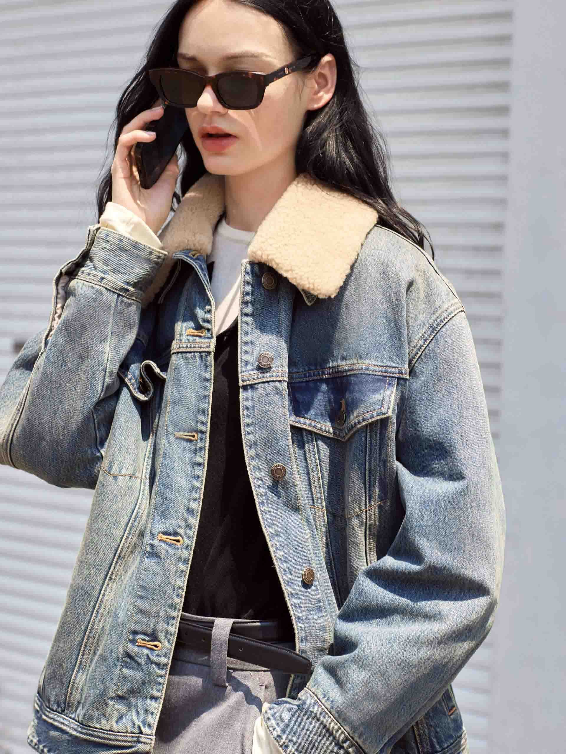 As an industry expert, trust in the functionality of this jacket. Made from denim cotton with a slightly loose fit, it's a removable shearling collar providing versatile and stylish options. Features quilted design, side and chest pockets add convenience and practicality to this expertly crafted jacket.
