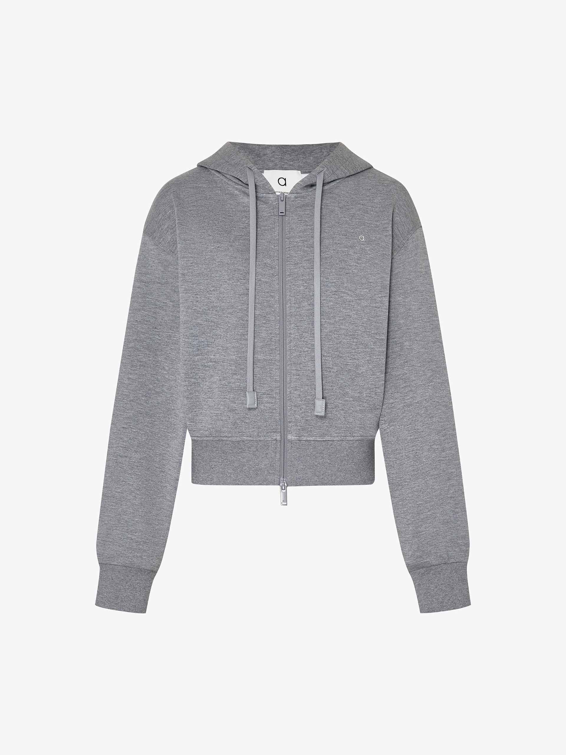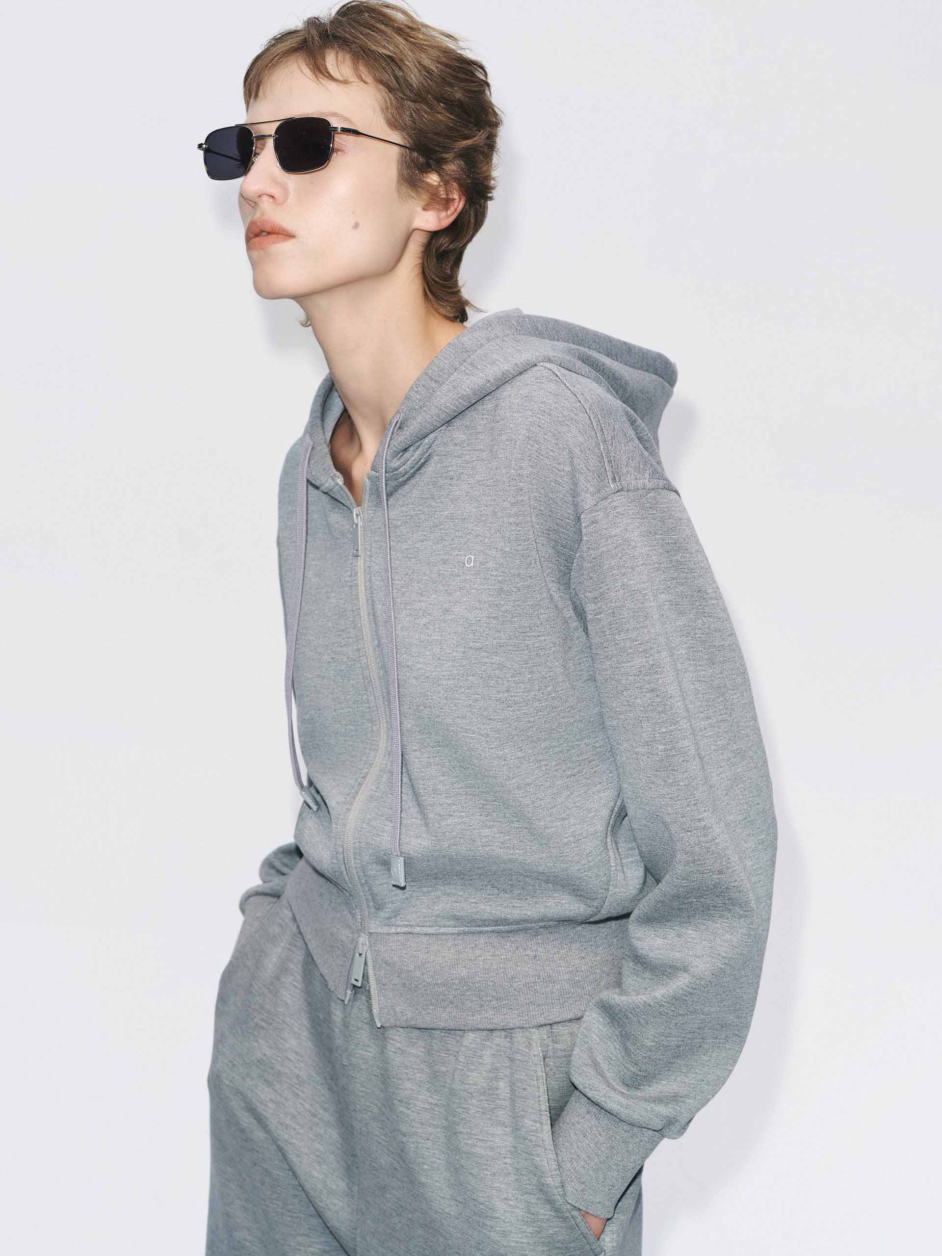 This jacket combines a sleek silhouette with functional details. The long sleeves and adjustable drawstring hood offer customizable coverage, while the innovative two-way zip closure allows flexible ventilation and ease of wear. It is perfect for layering during workouts, morning runs, or casual outdoor activities. Pair with the matching trousers for a more sophisticated and charming look.