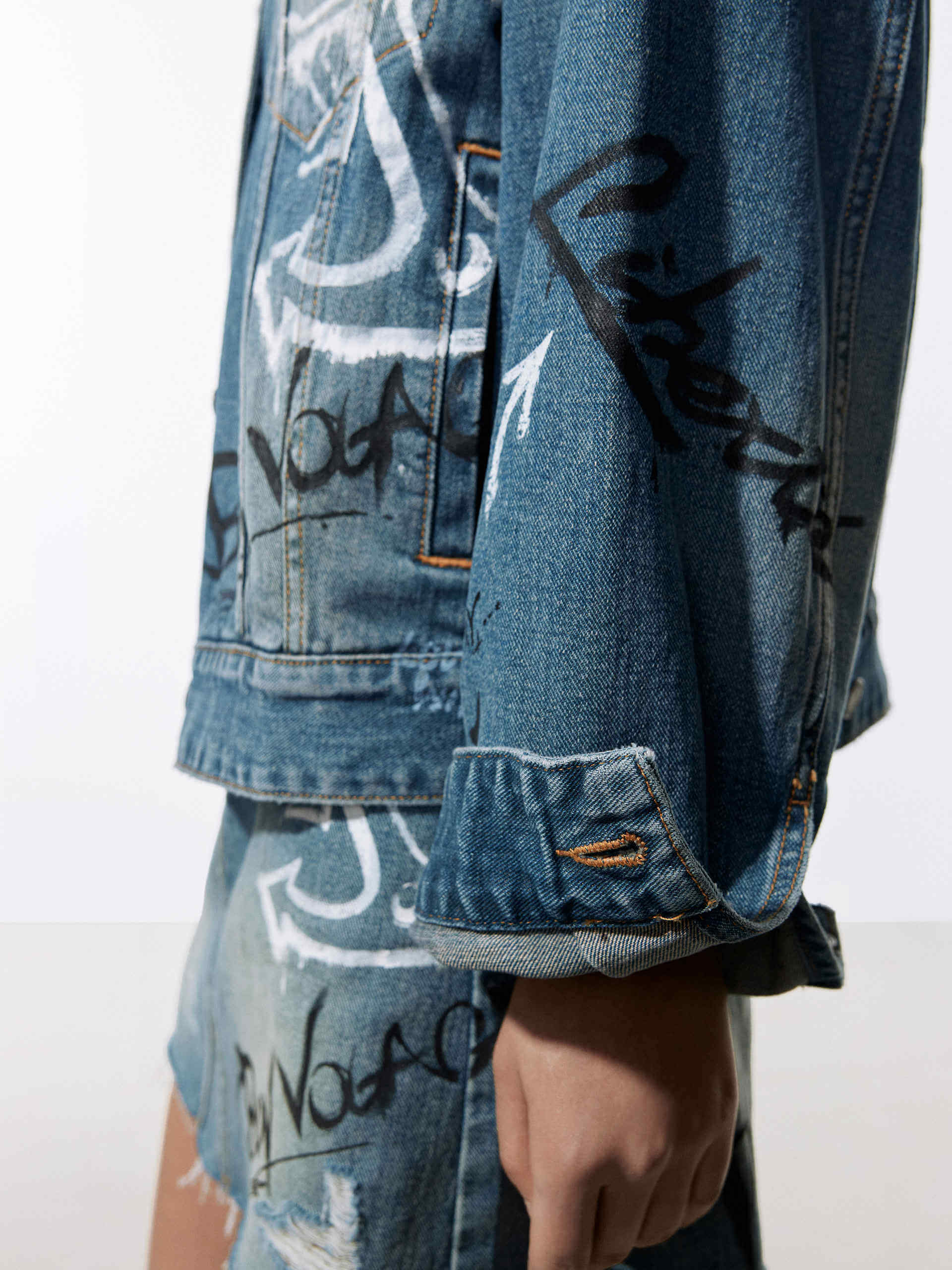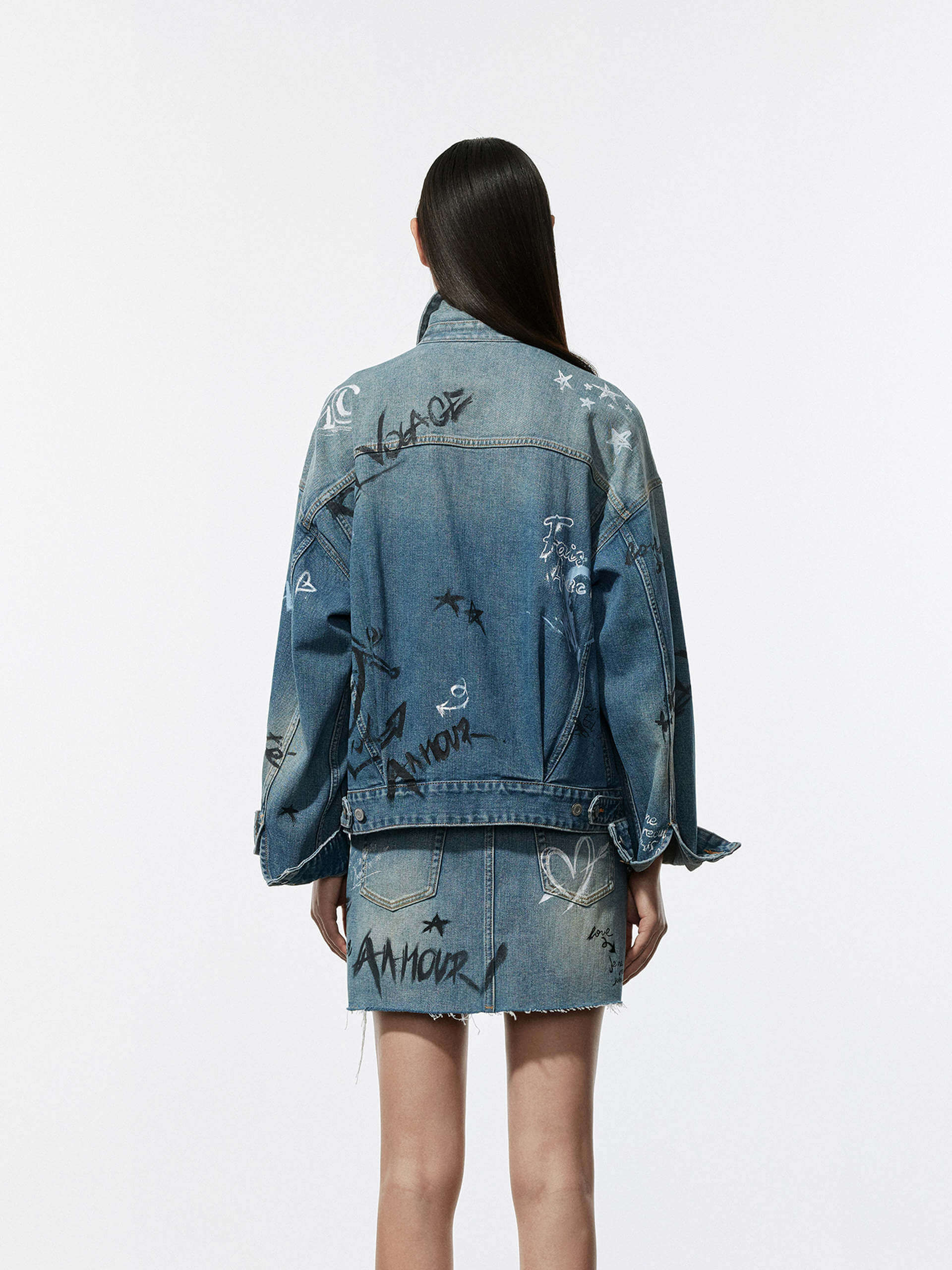 MO&Co. Women's Graffiti Pattern Denim Jacket