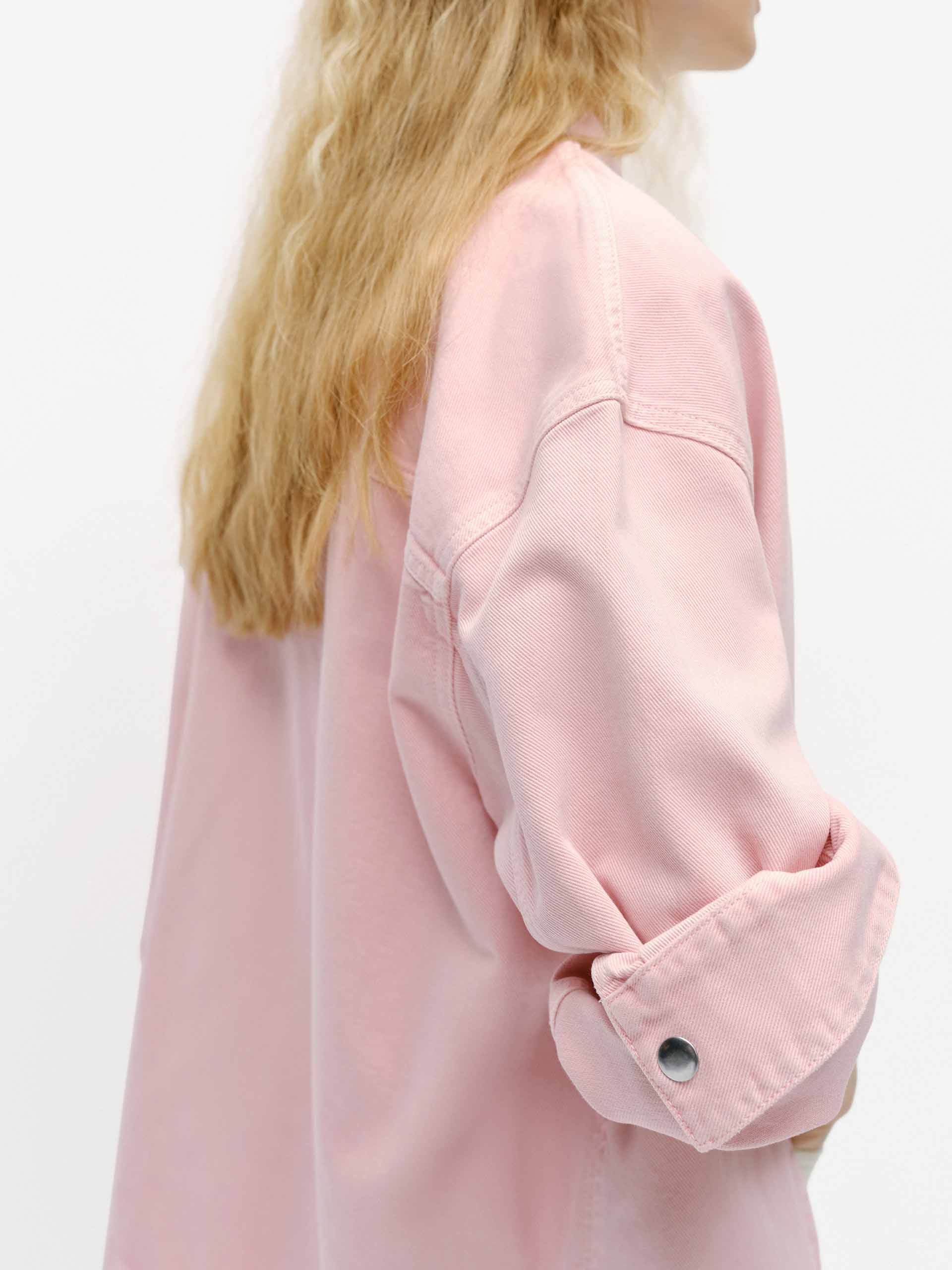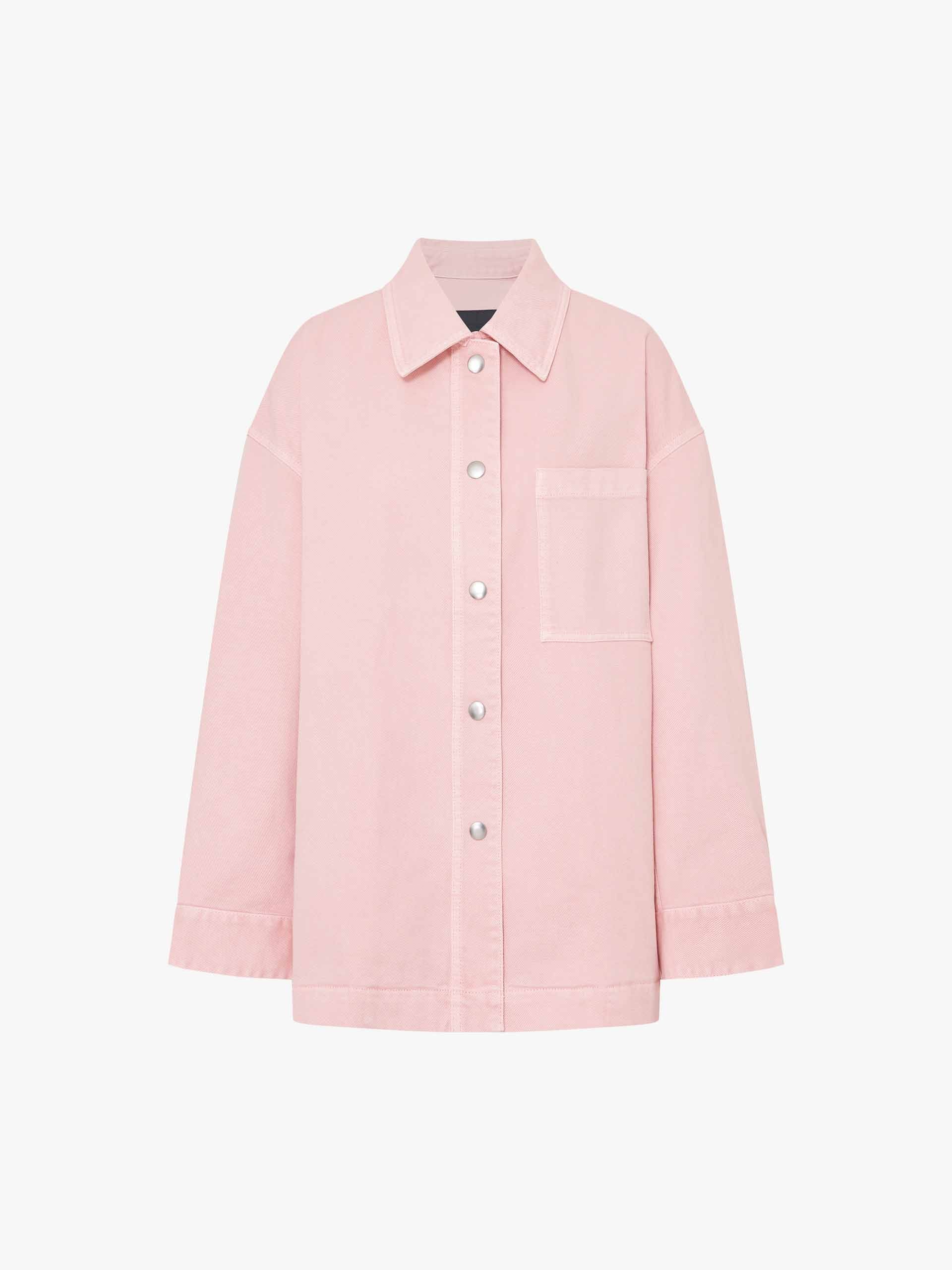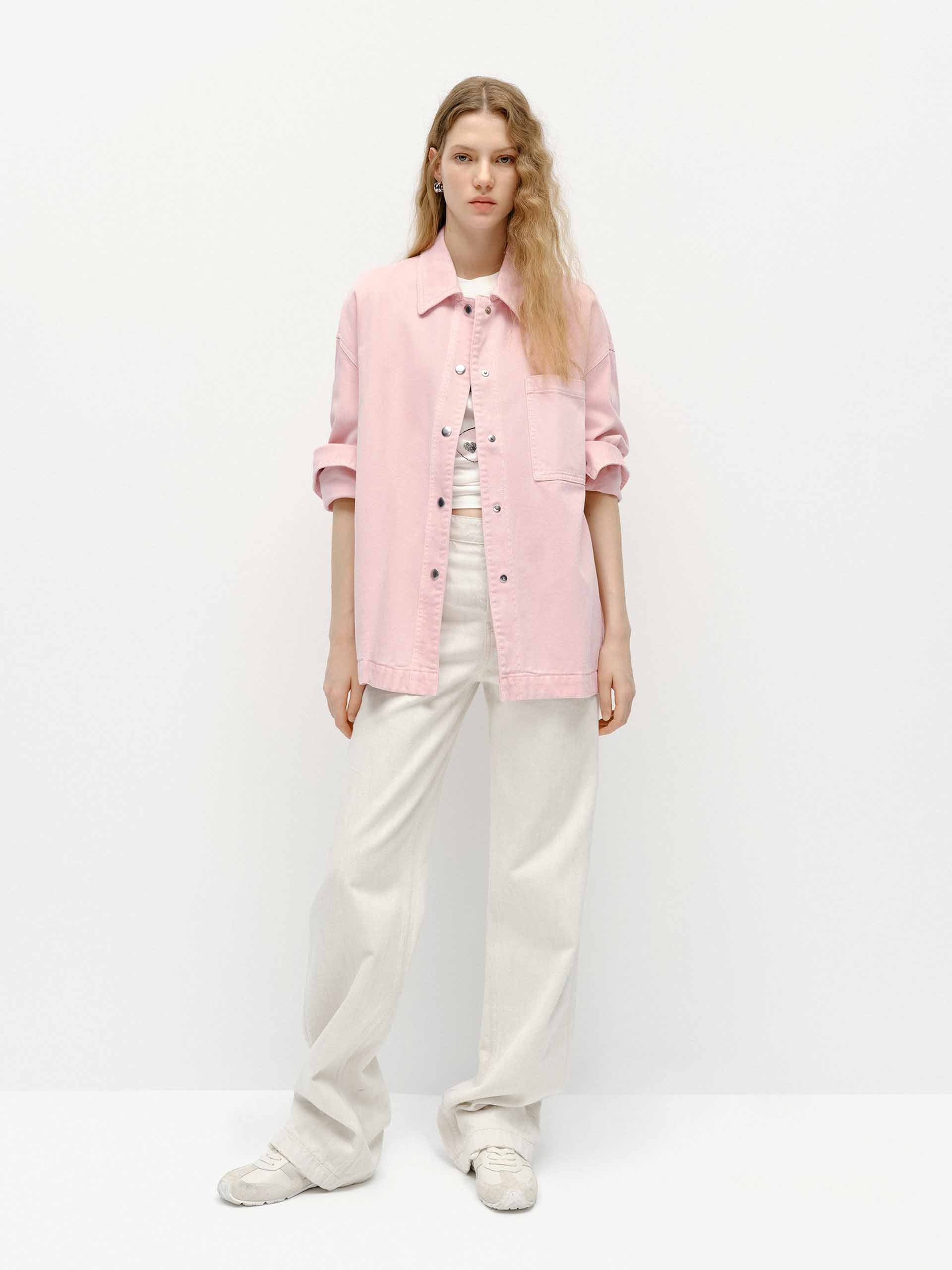 Crafted from soft and comfortable cotton, this jacket features a relaxed fit with a clean, straight-cut silhouette for a polished yet casual look. Designed with practical chest pockets and snap-button fastenings. The soft pink hue adds a fresh and modern touch, perfect for layering or wearing on its own.