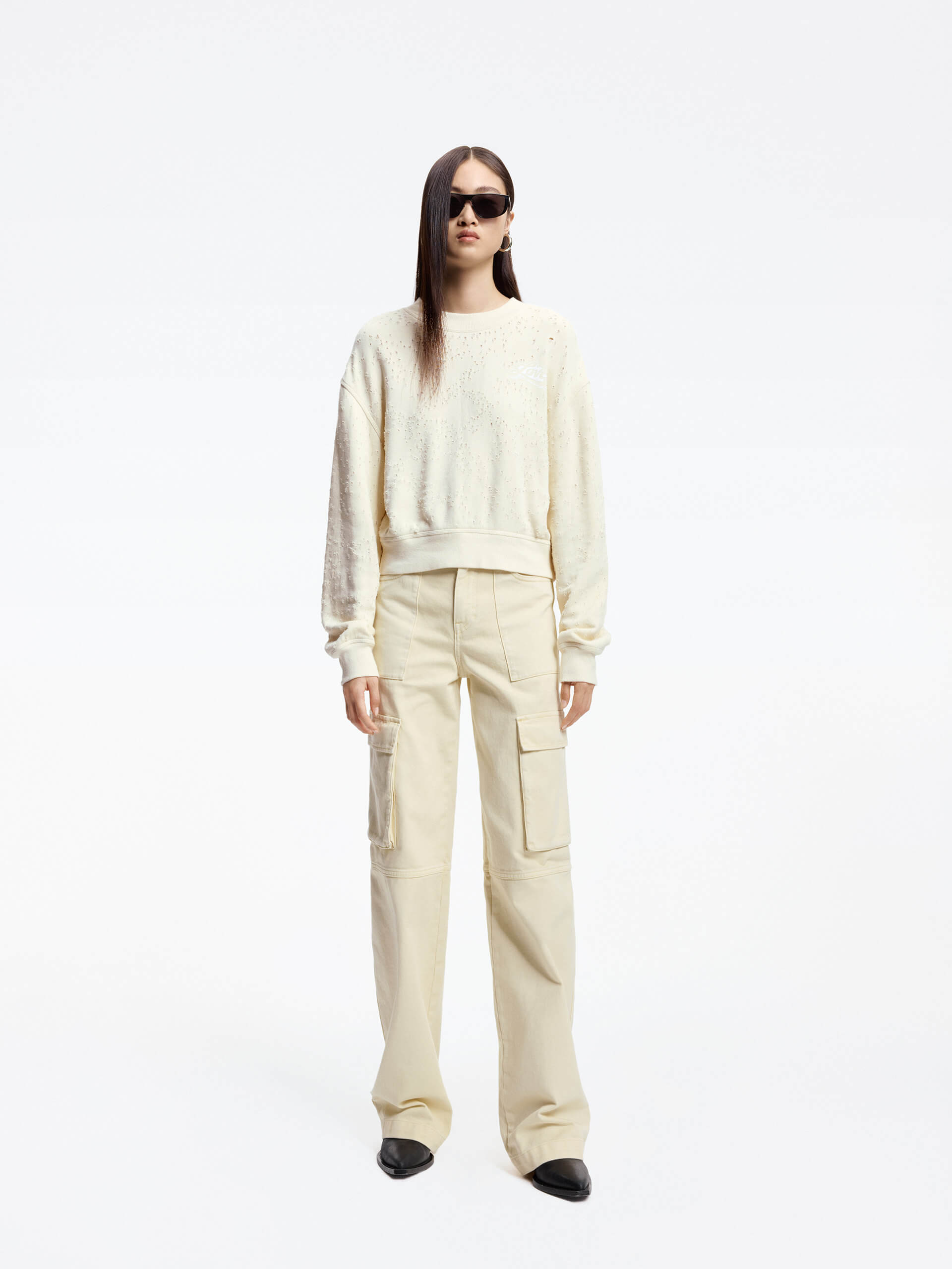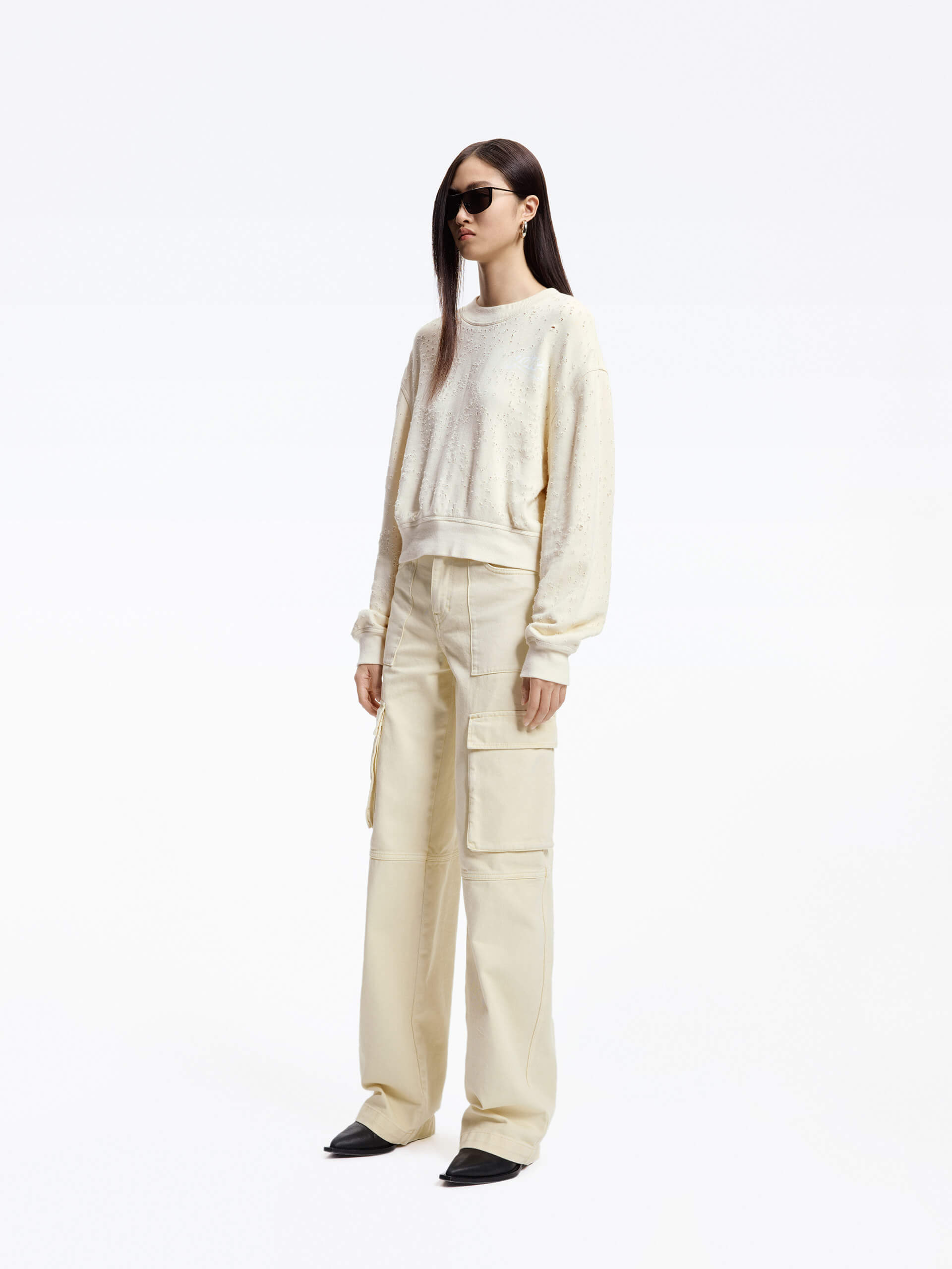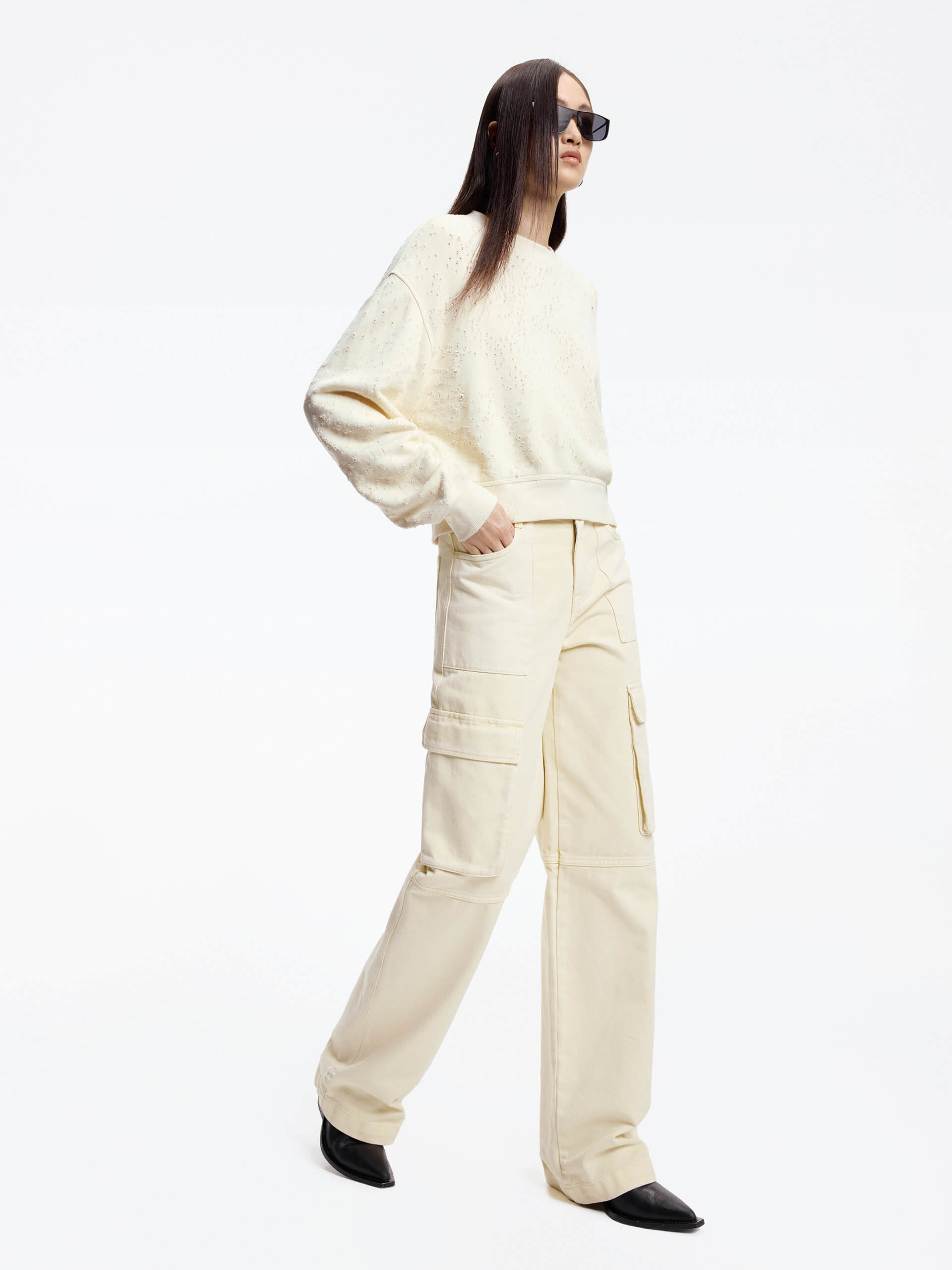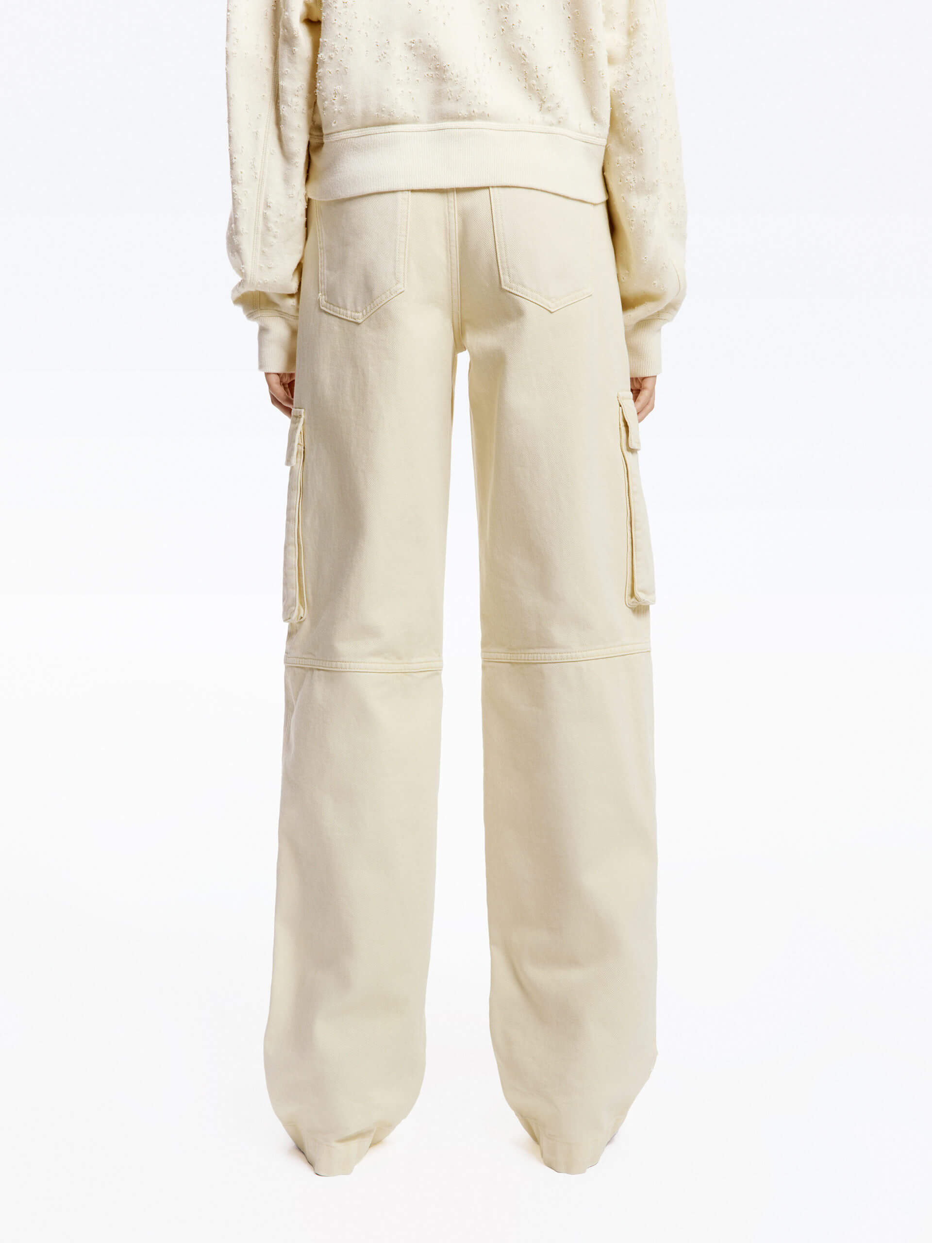 Introducing our cargo jeans. Made with 100% breathable cotton for ultimate comfort. The loose, utilitarian style features multiple pockets and a high-waisted design. The elegant beige hue adds a touch of sophistication to any outfit.