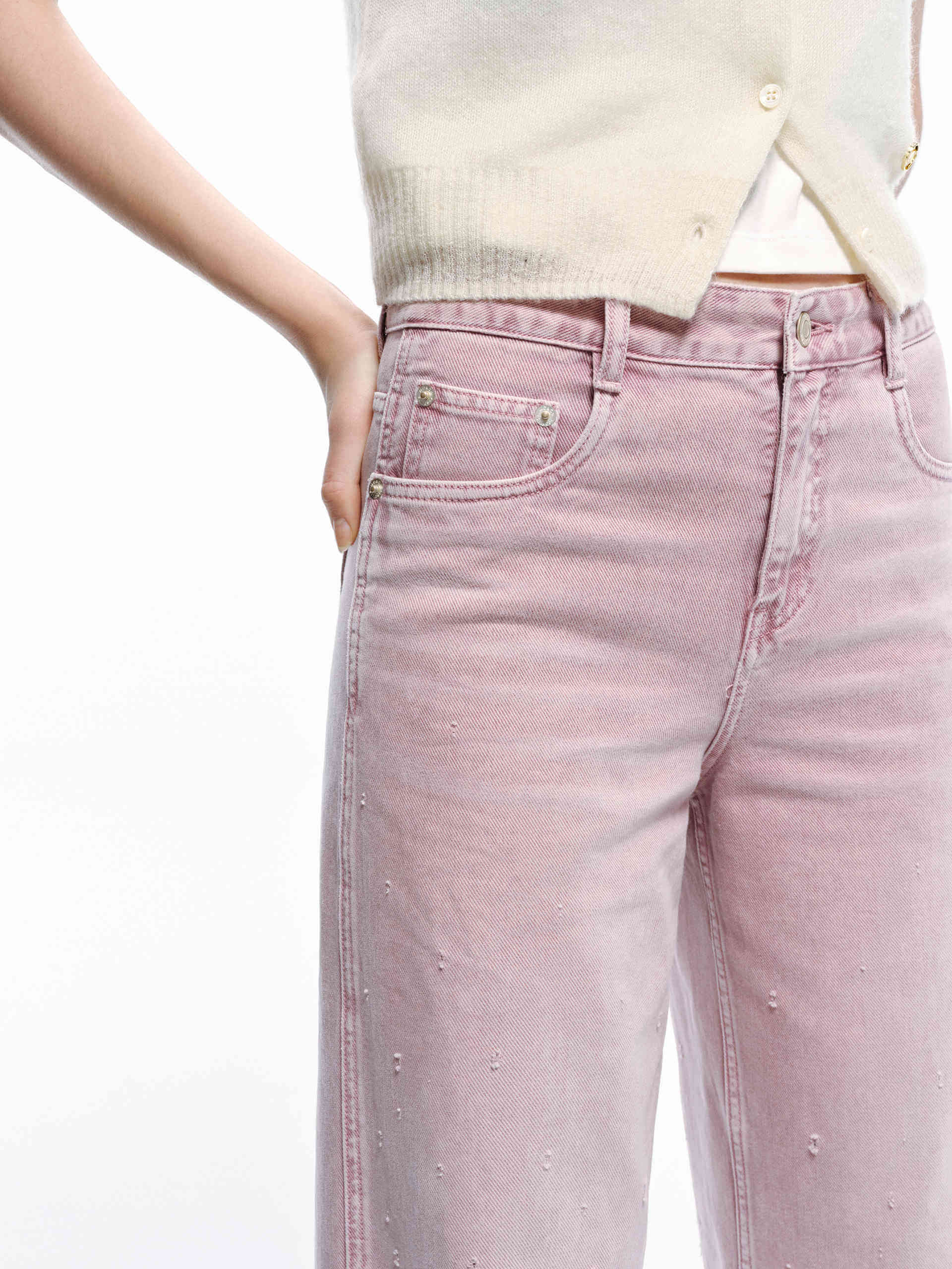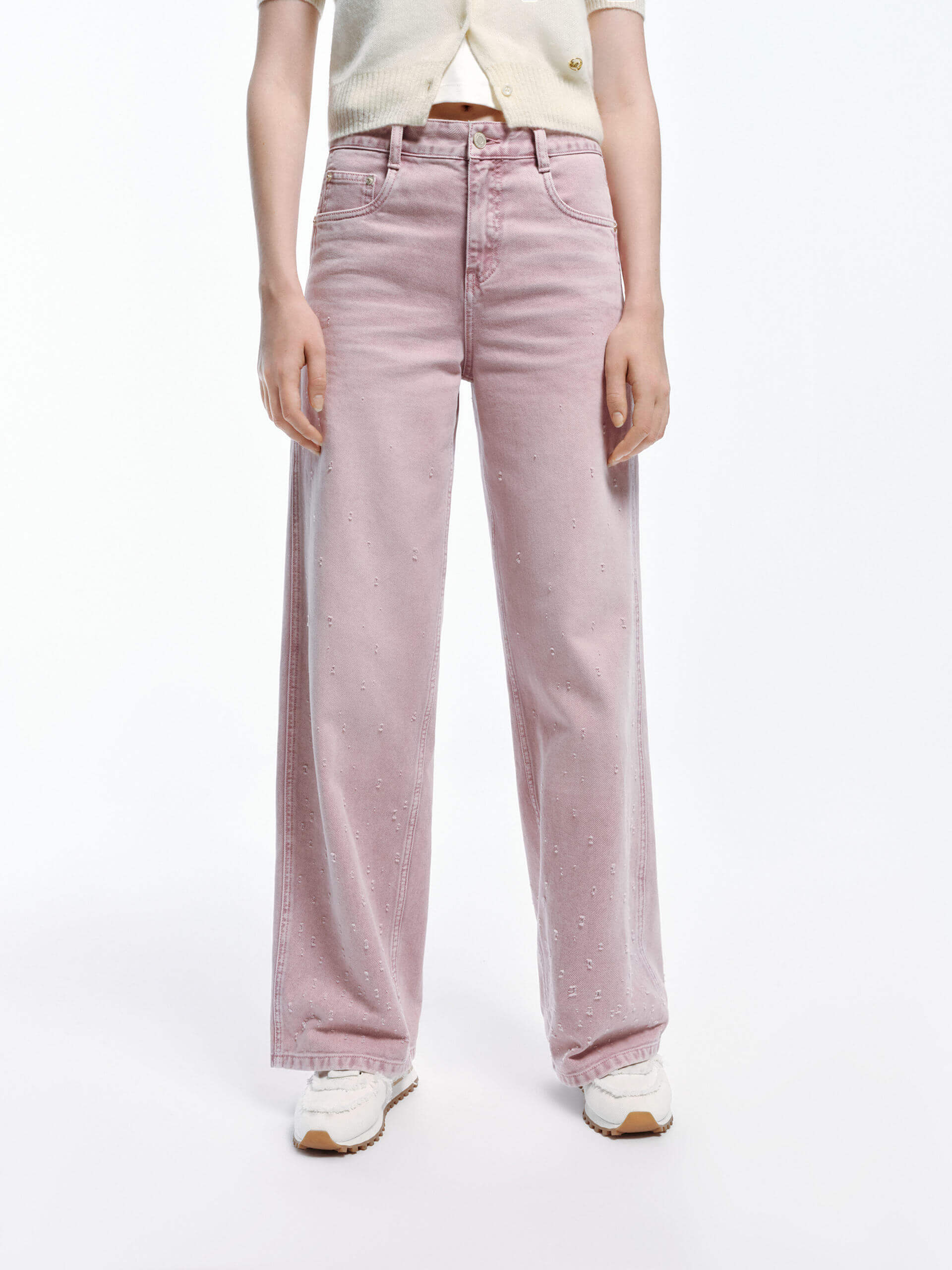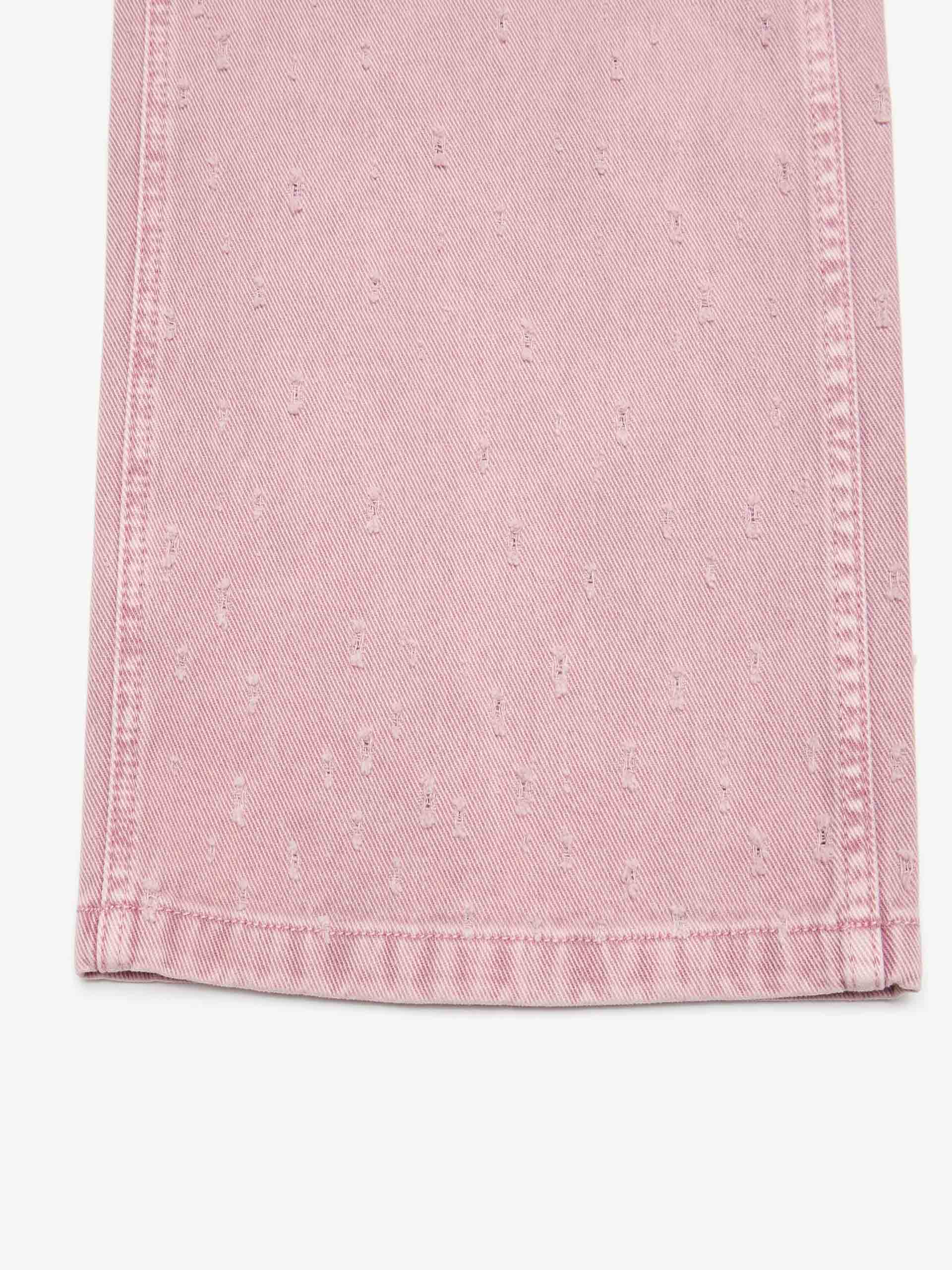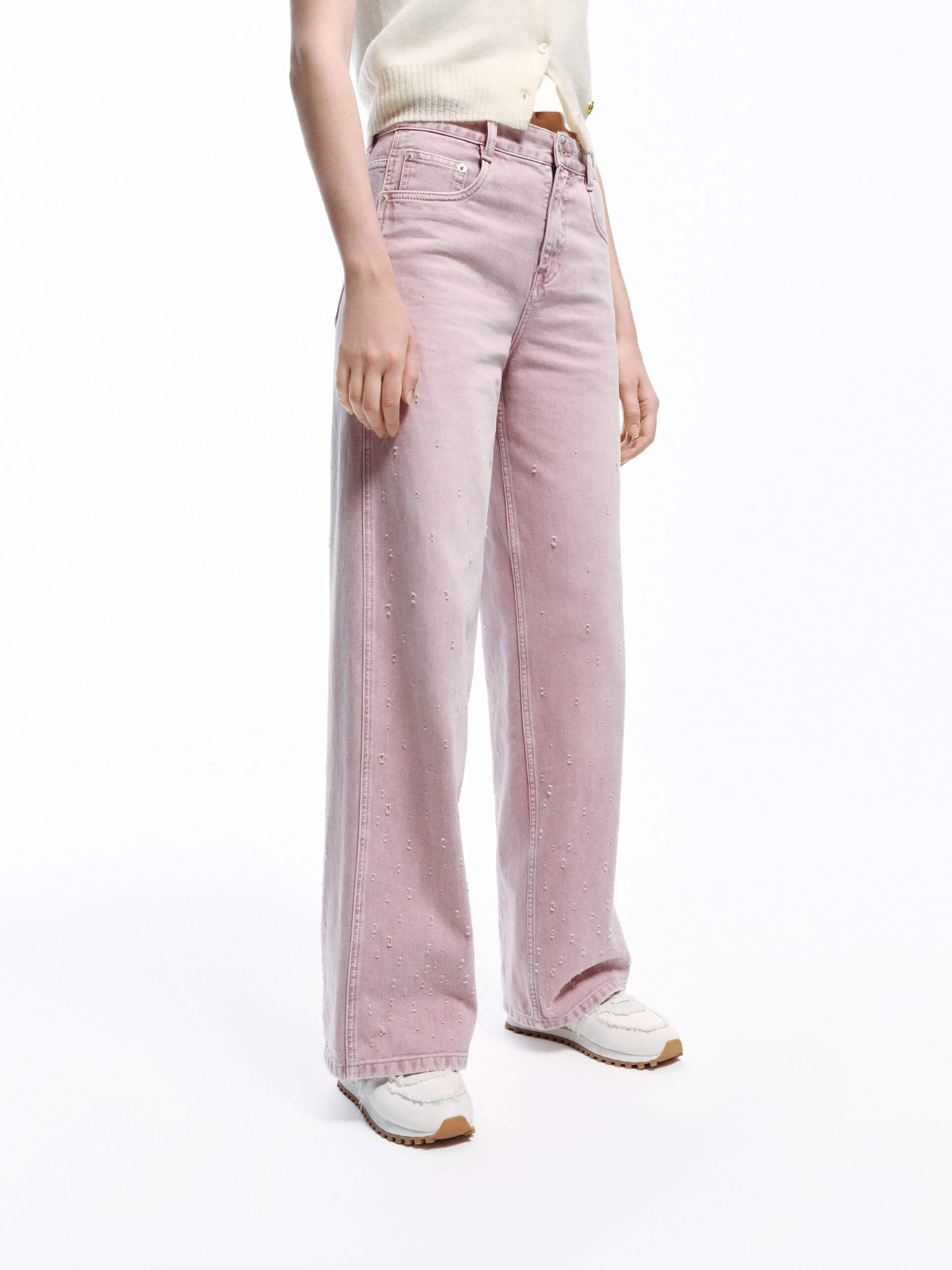 Experience comfort and style with our jeans. Made from pink-washed denim, these jeans feature a relaxed straight fit and edgy hole details. Perfect for a casual yet fashionable look.