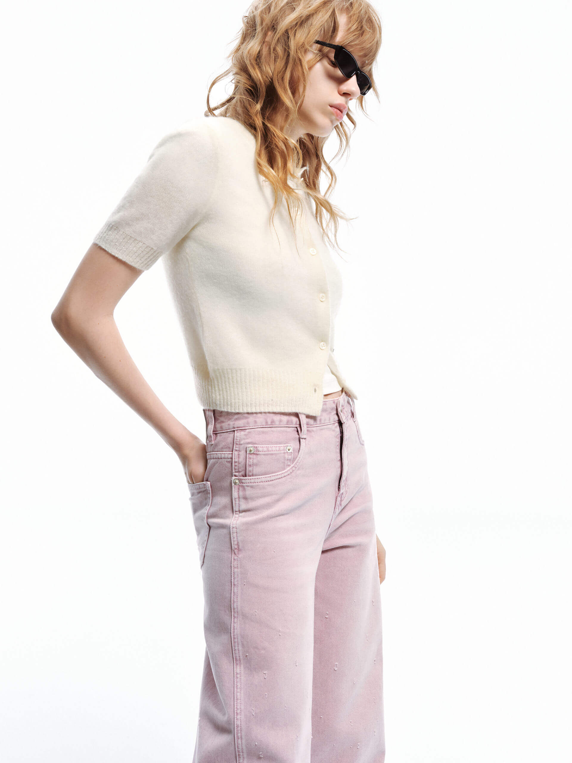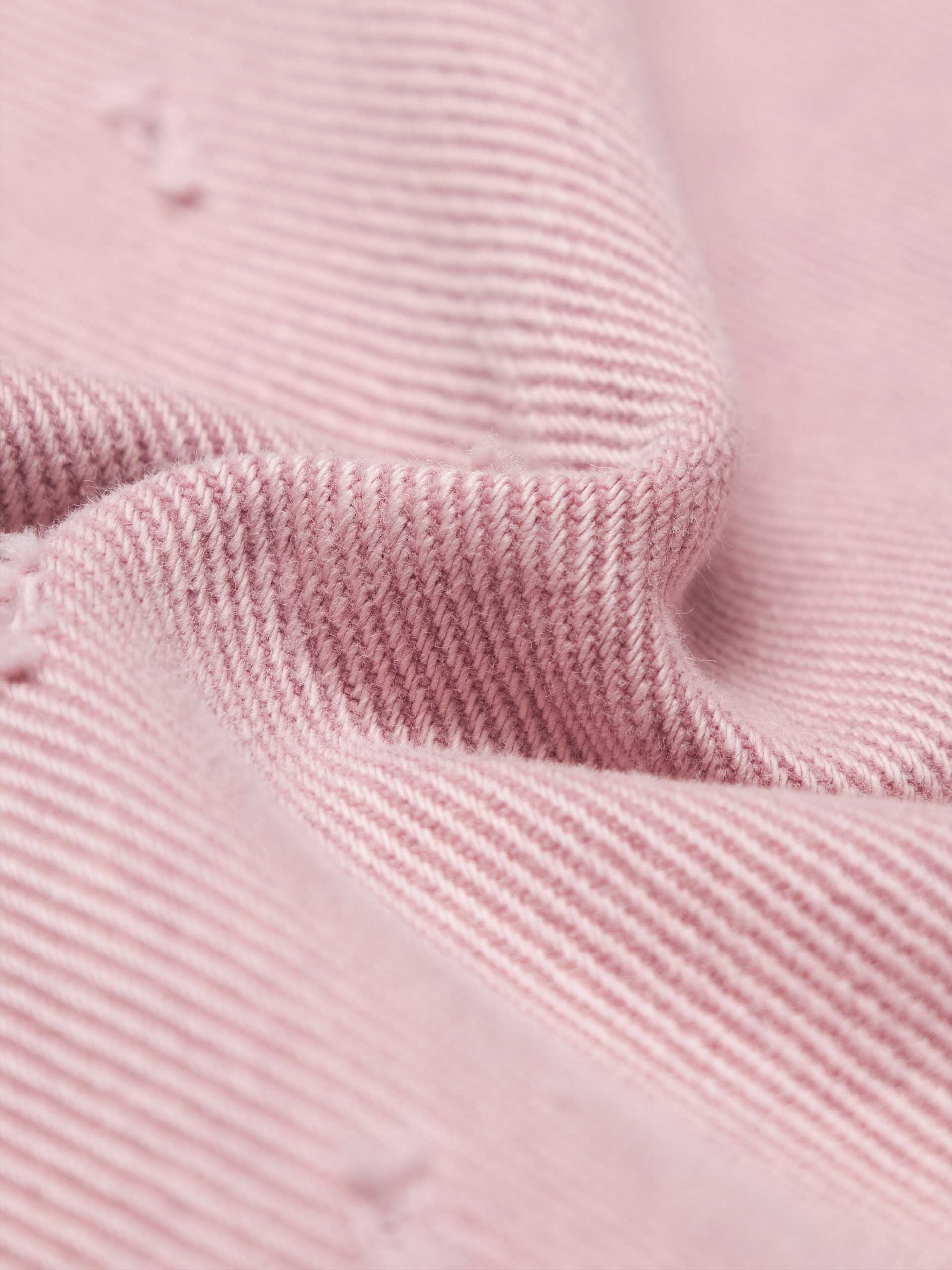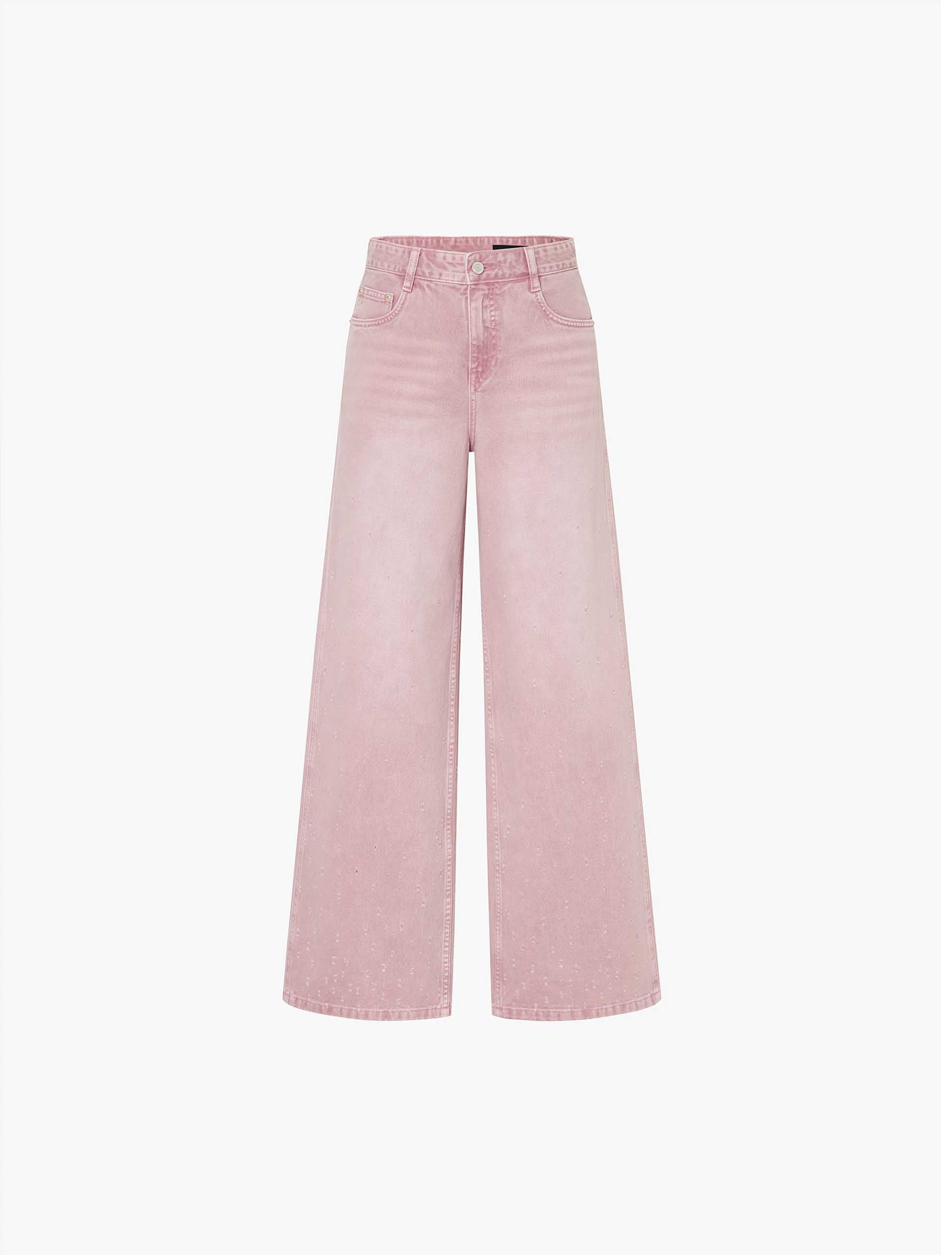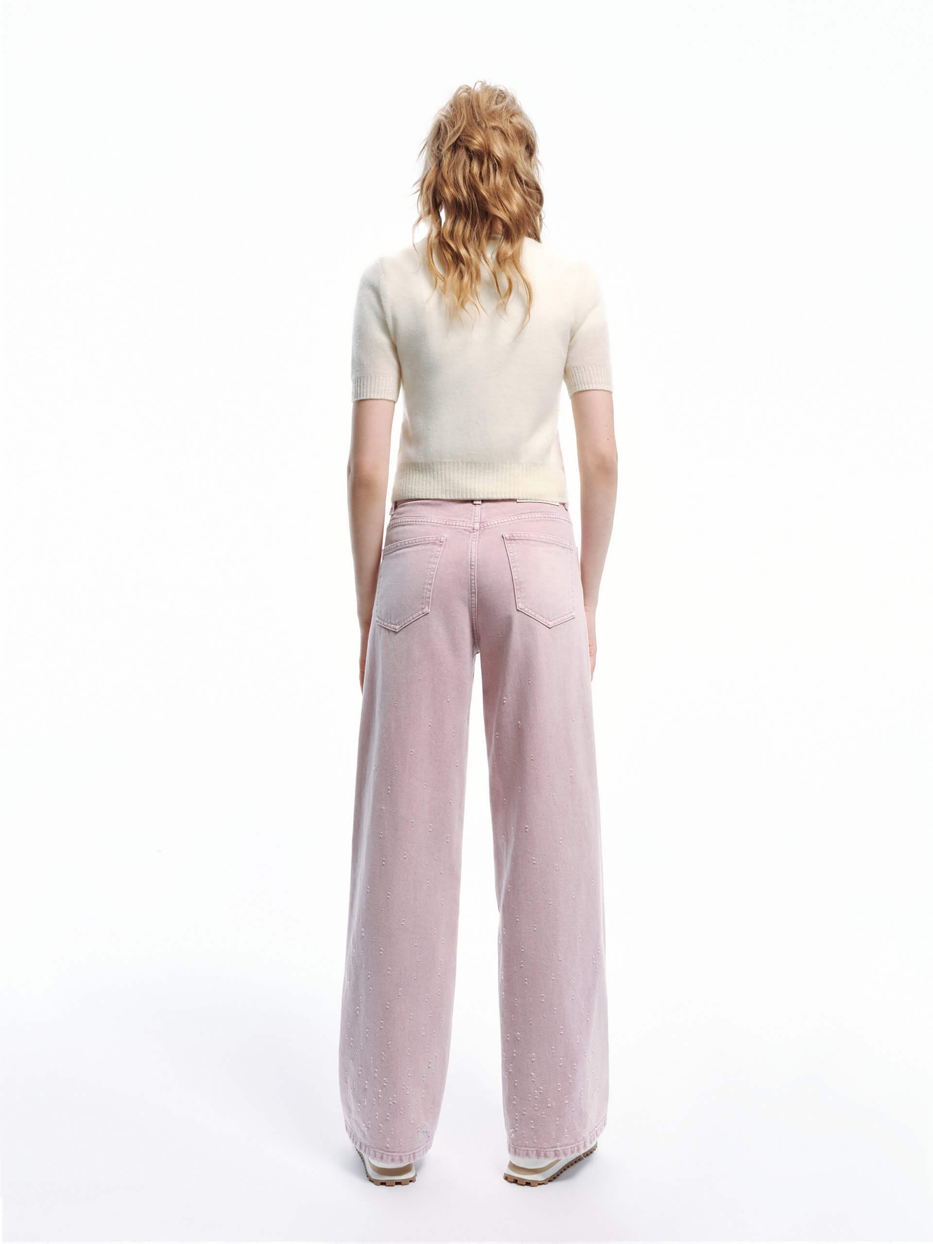 Experience comfort and style with our jeans. Made from pink-washed denim, these jeans feature a relaxed straight fit and edgy hole details. Perfect for a casual yet fashionable look.