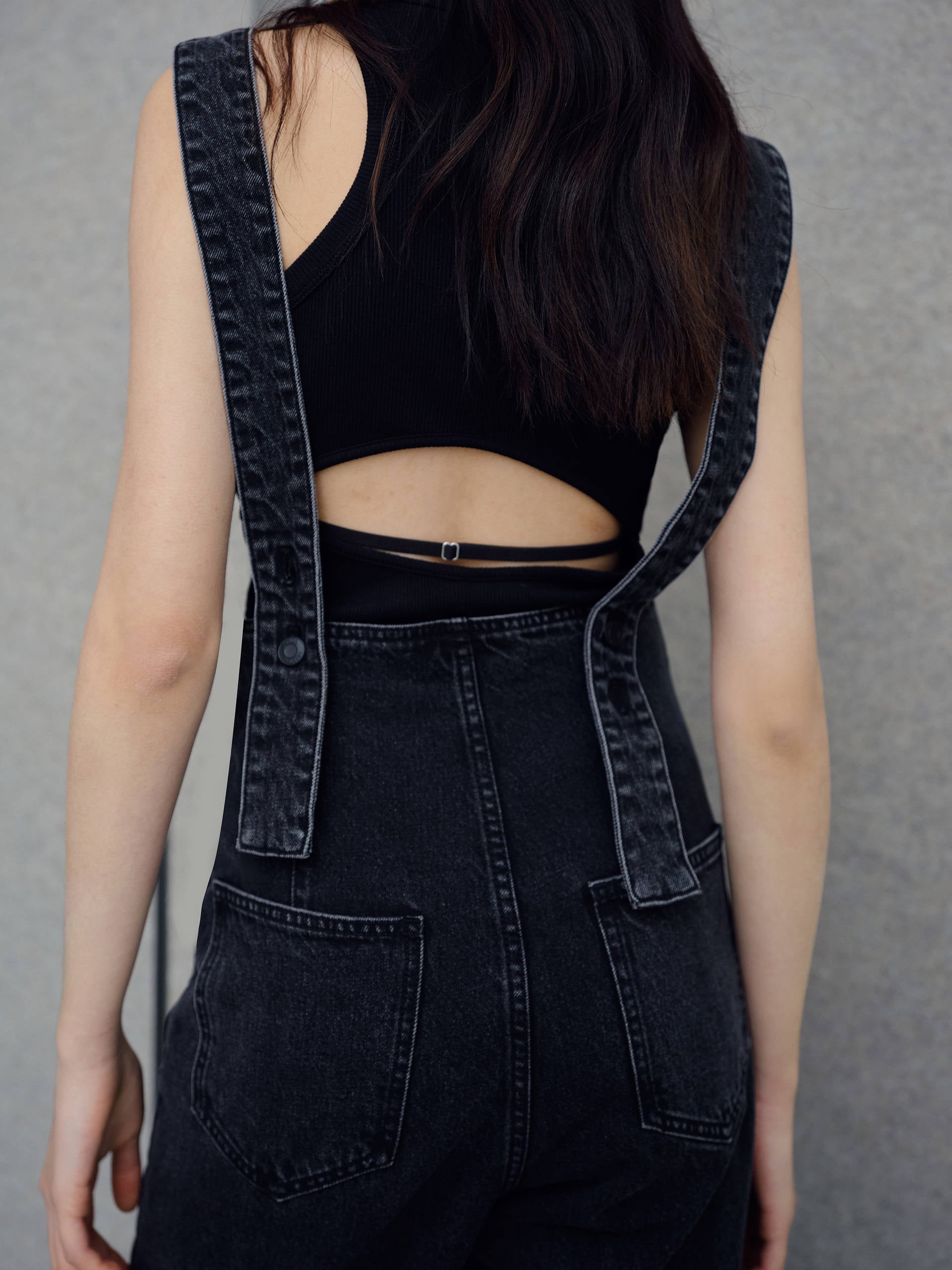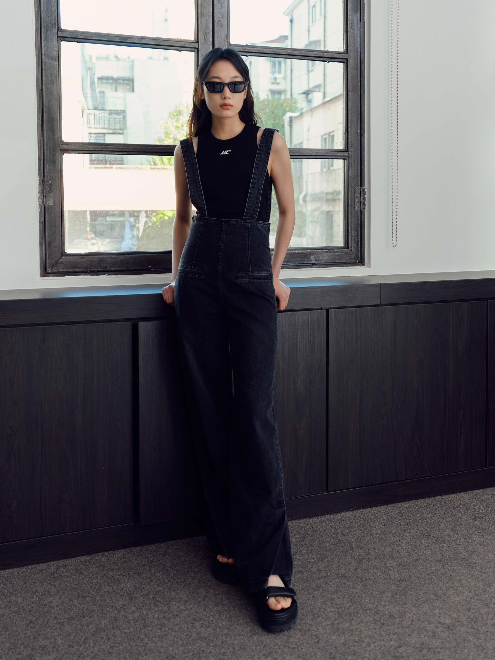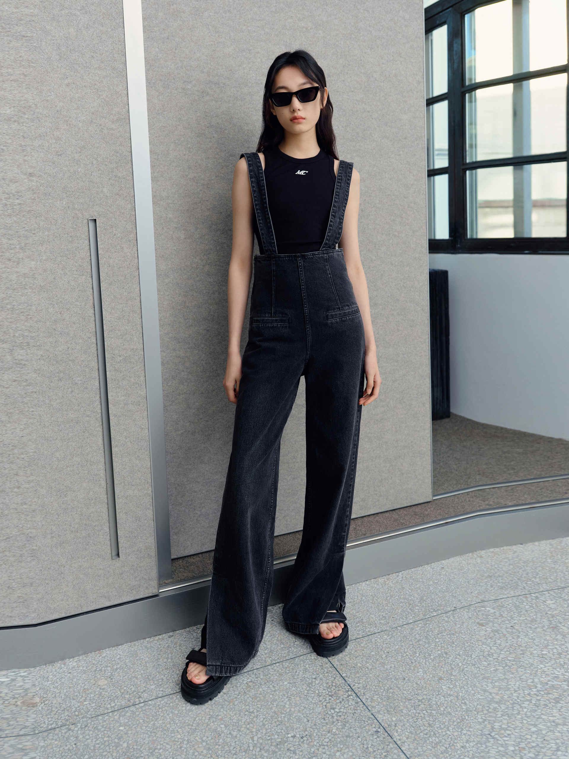 MO&Co. Women's Cotton Slit Denim jumpsuit