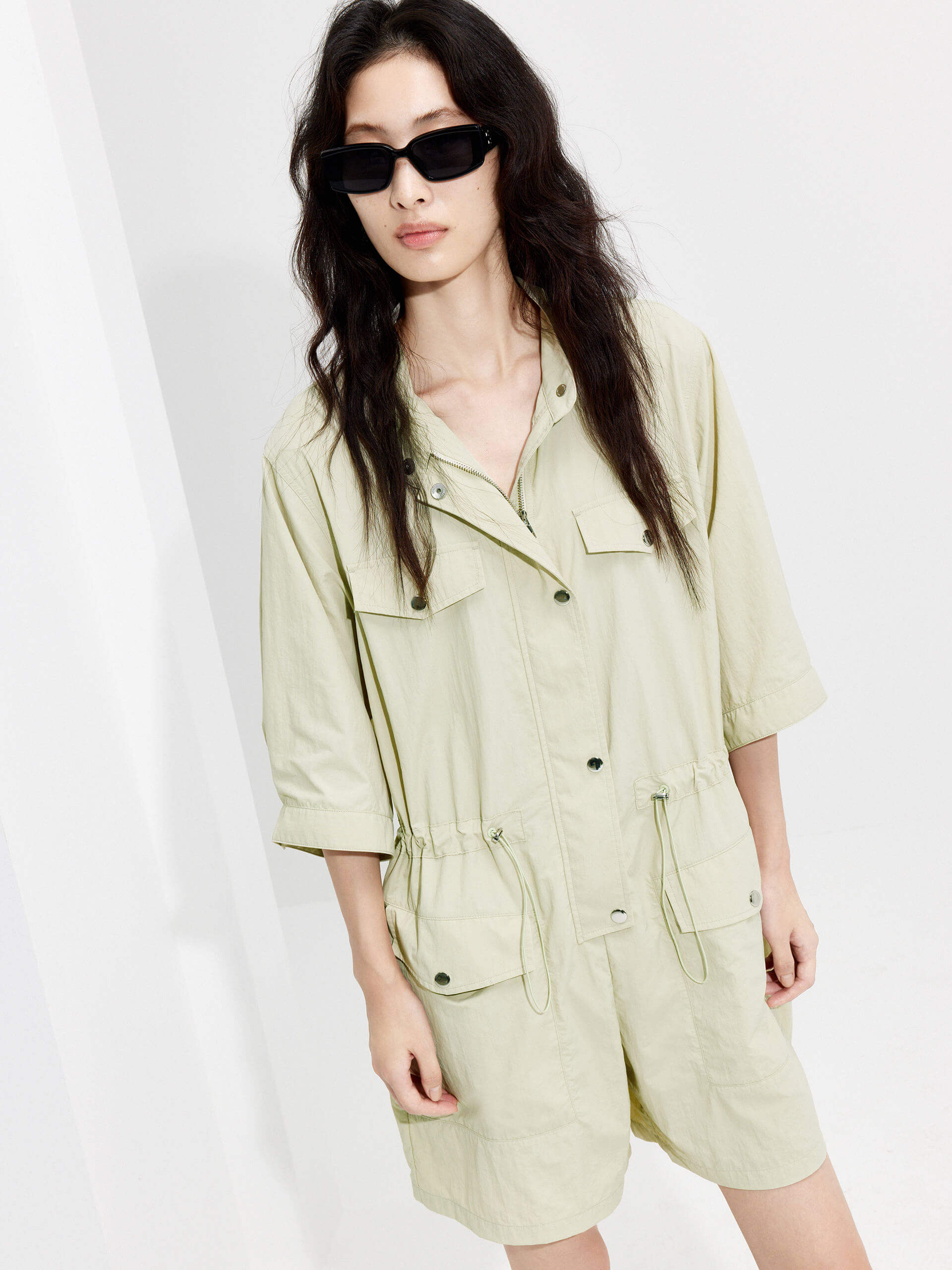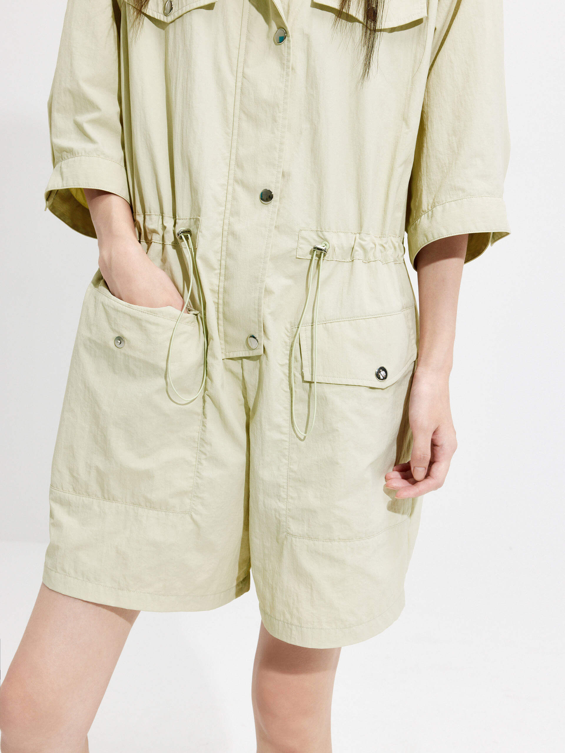Drawstring Cargo Romper