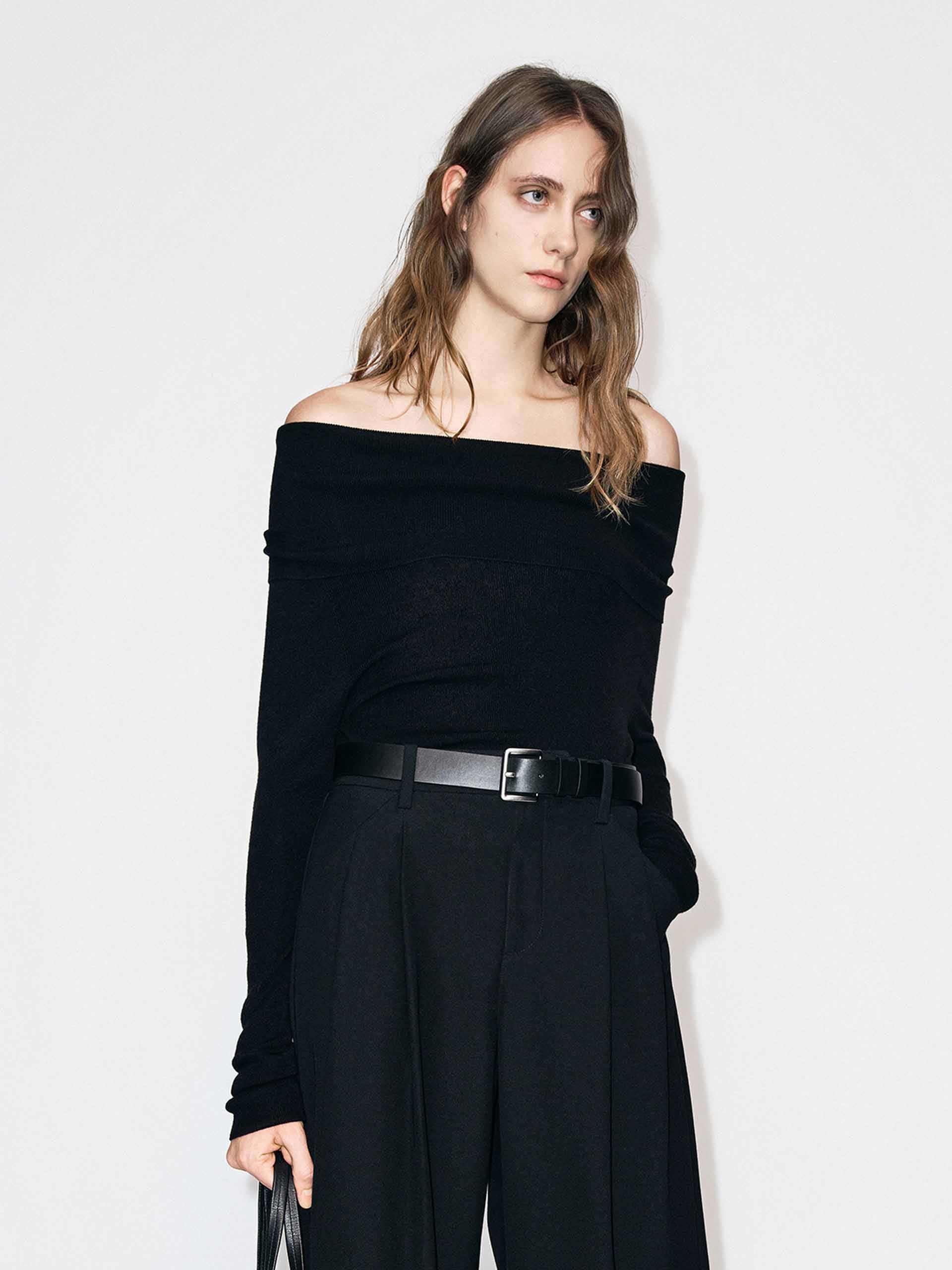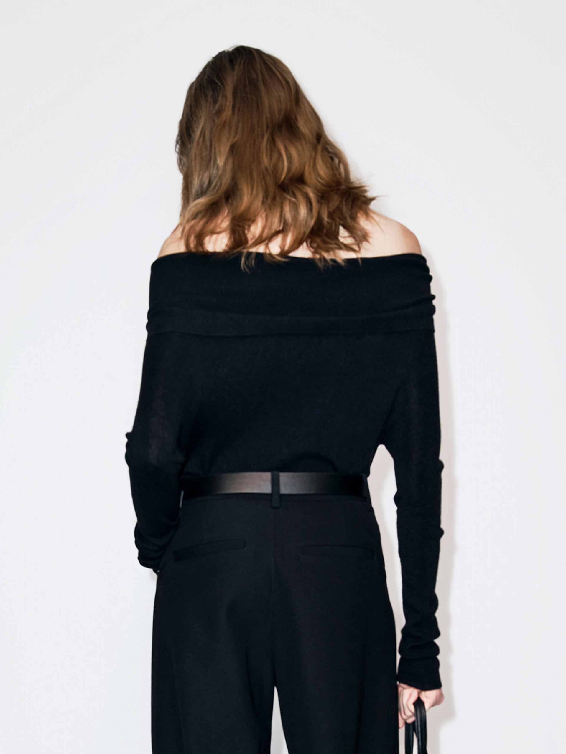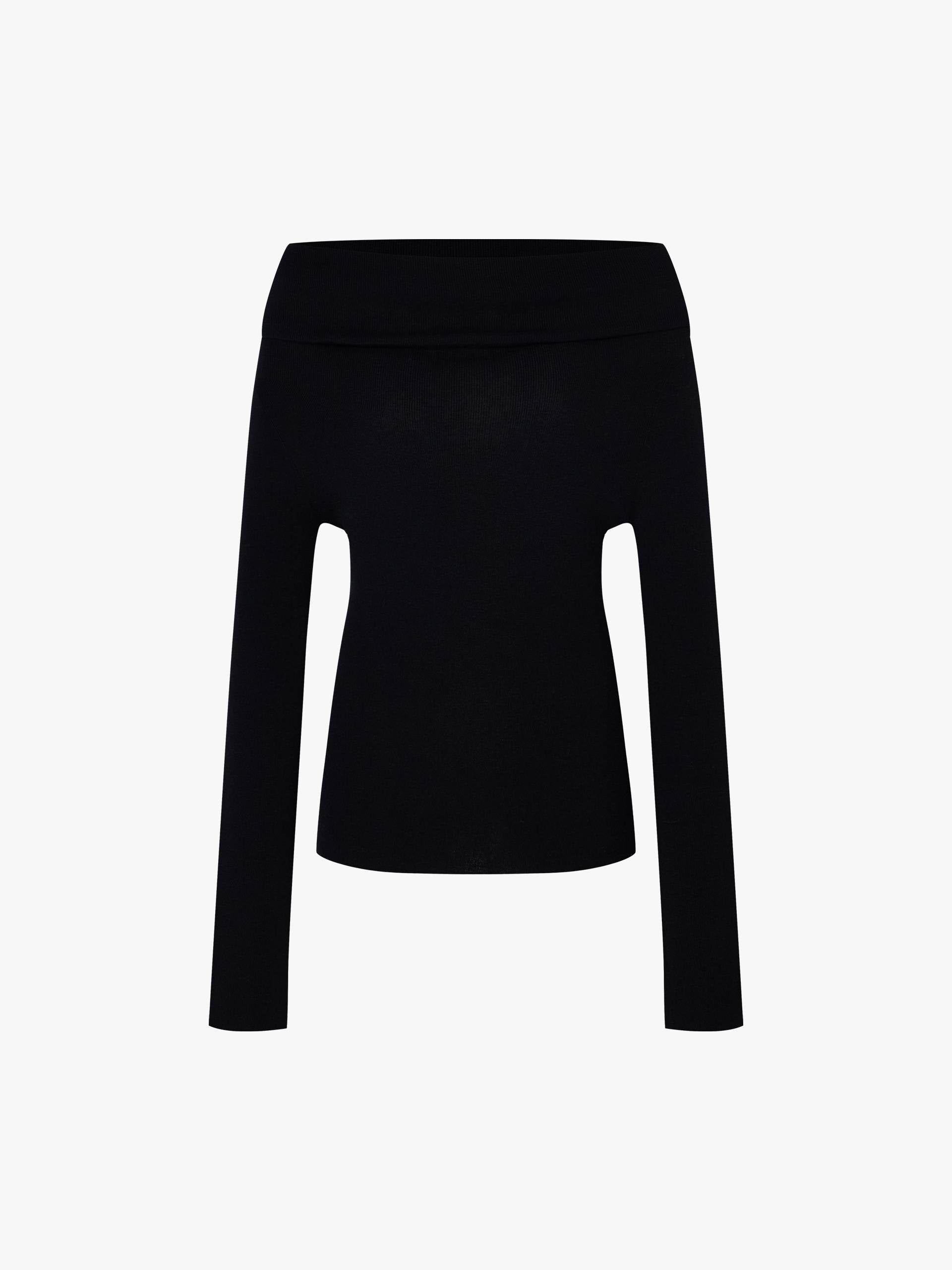Embrace effortless elegance with this knitted top, designed to highlight your silhouette with a flattering, body-hugging cut. Its versatile neckline, which can be styled in multiple ways—either as an off-the-shoulder piece or a high cowl neck—makes it a highly adaptable staple for various looks and occasions.
