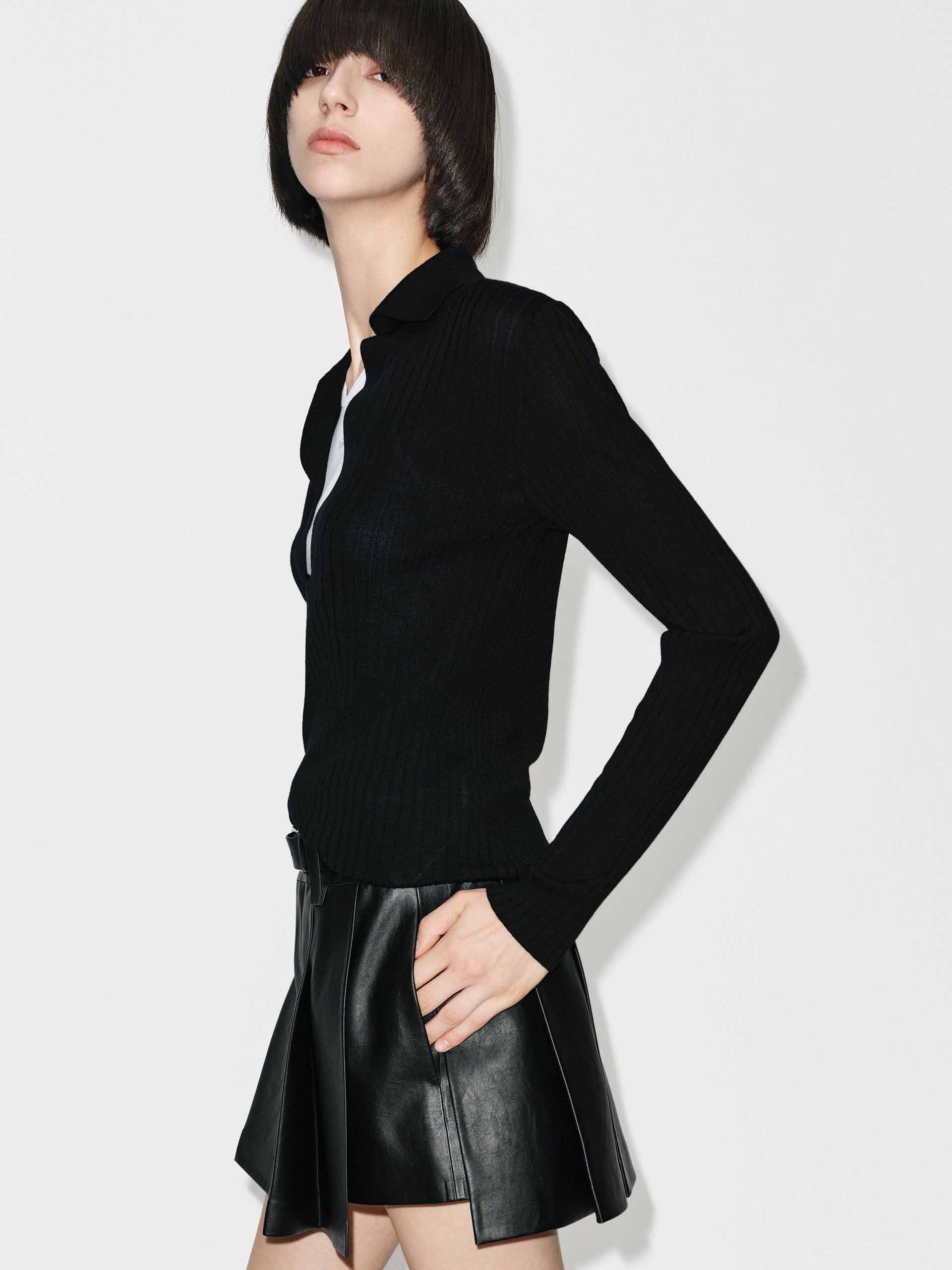 - V-neck and long sleeves detail
