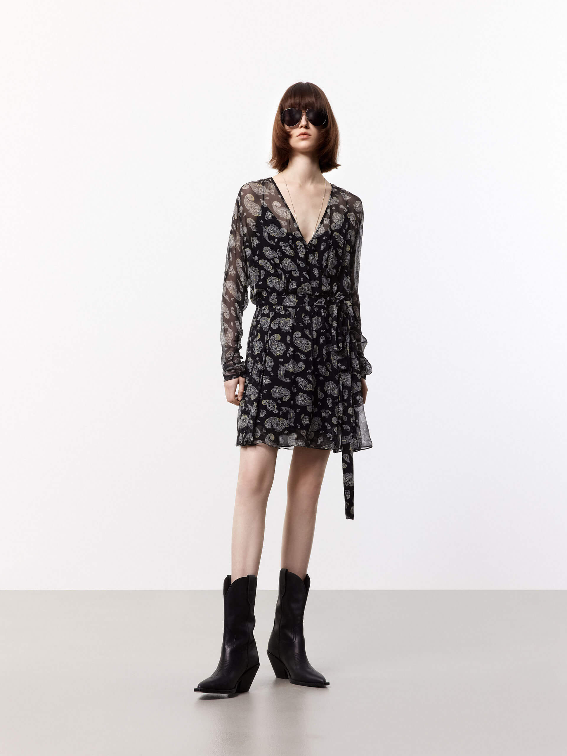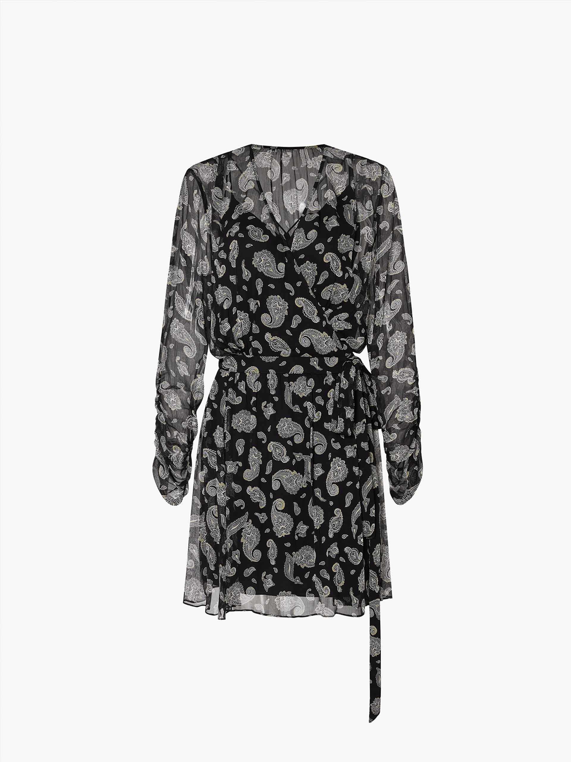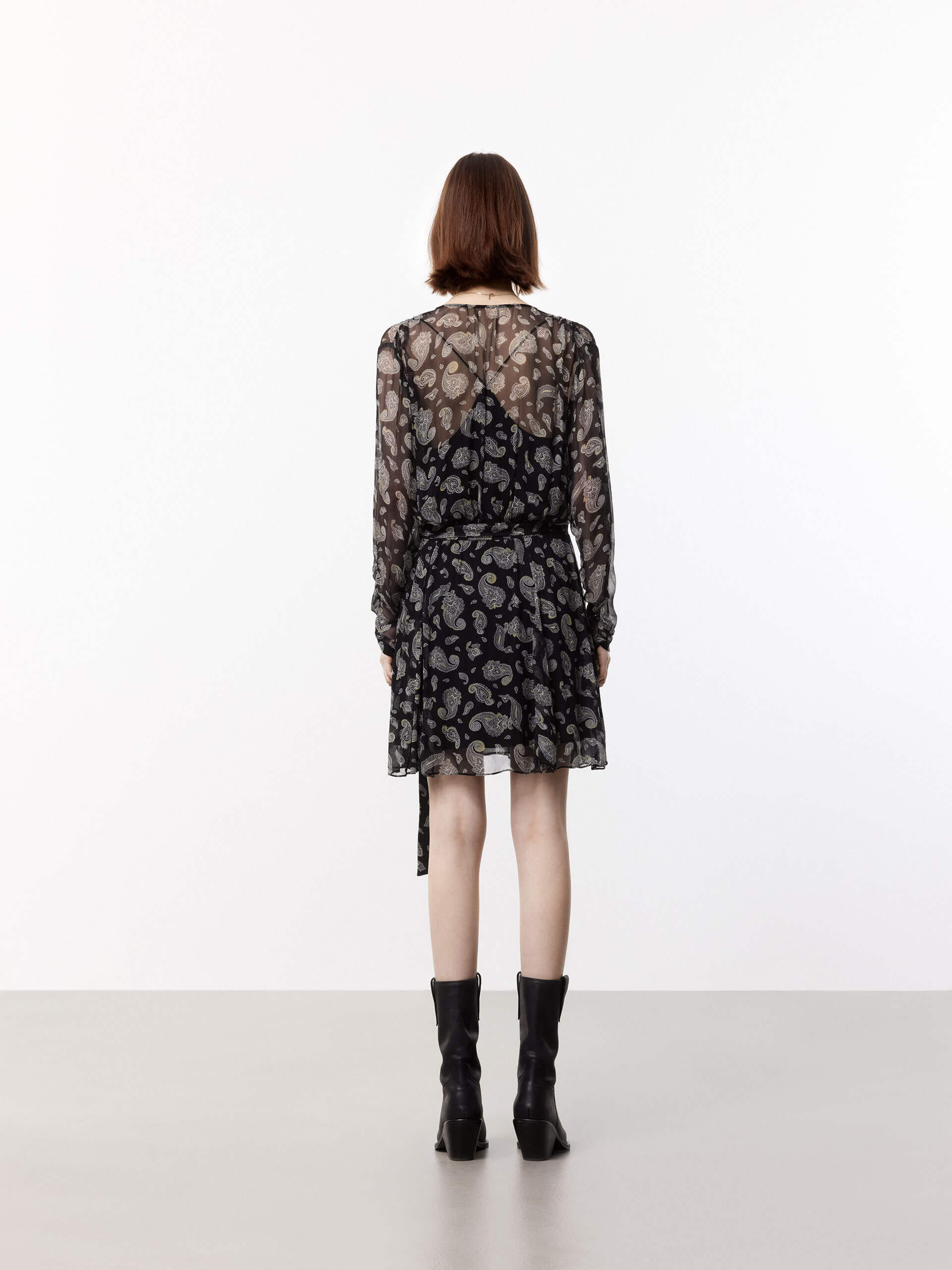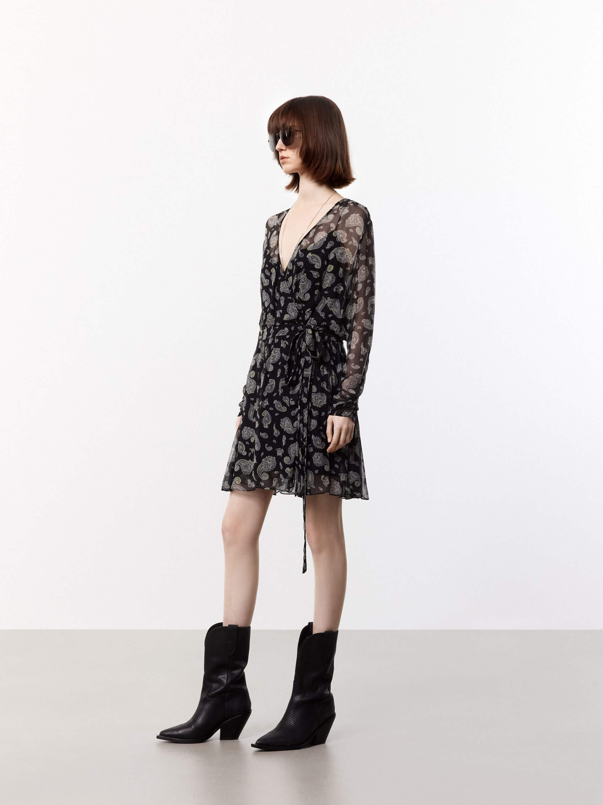 Made from lightweight, breathable fabric for all-day comfort, this dress features a beautiful floral print adding a playful and feminine touch. The unique cross-wrap design at the front wraps around the waist for a flattering figure-hugging silhouette. Pair it with strappy heels and statement earrings for a chic and sophisticated look.