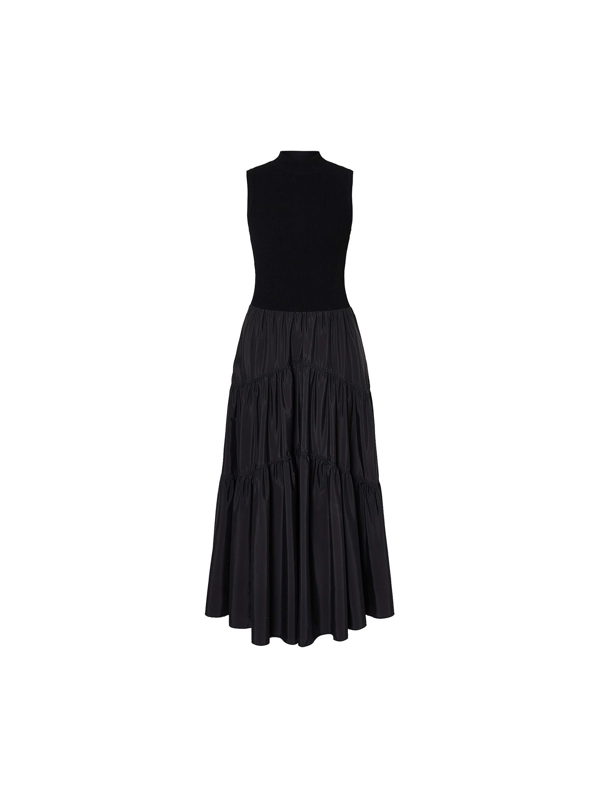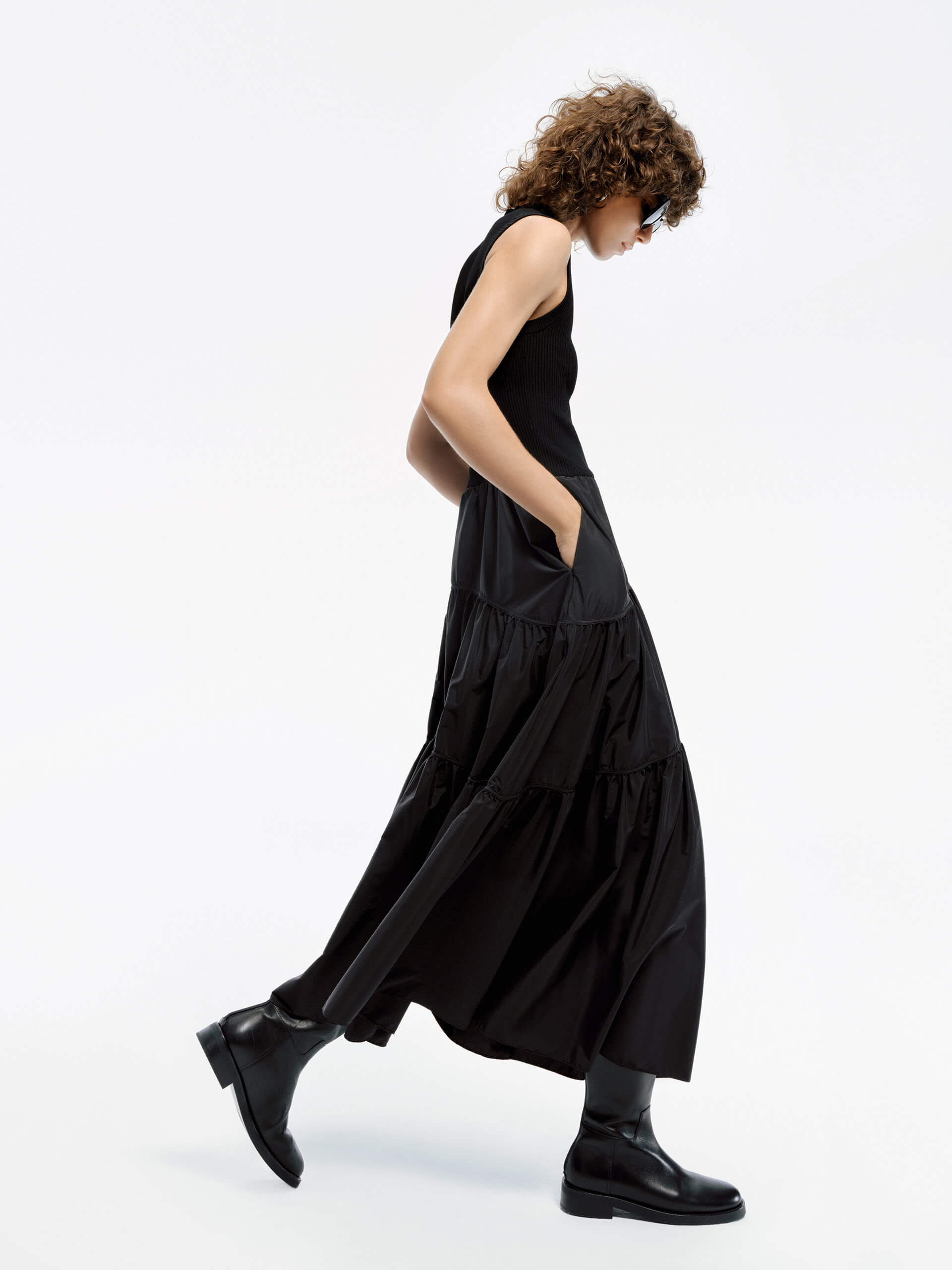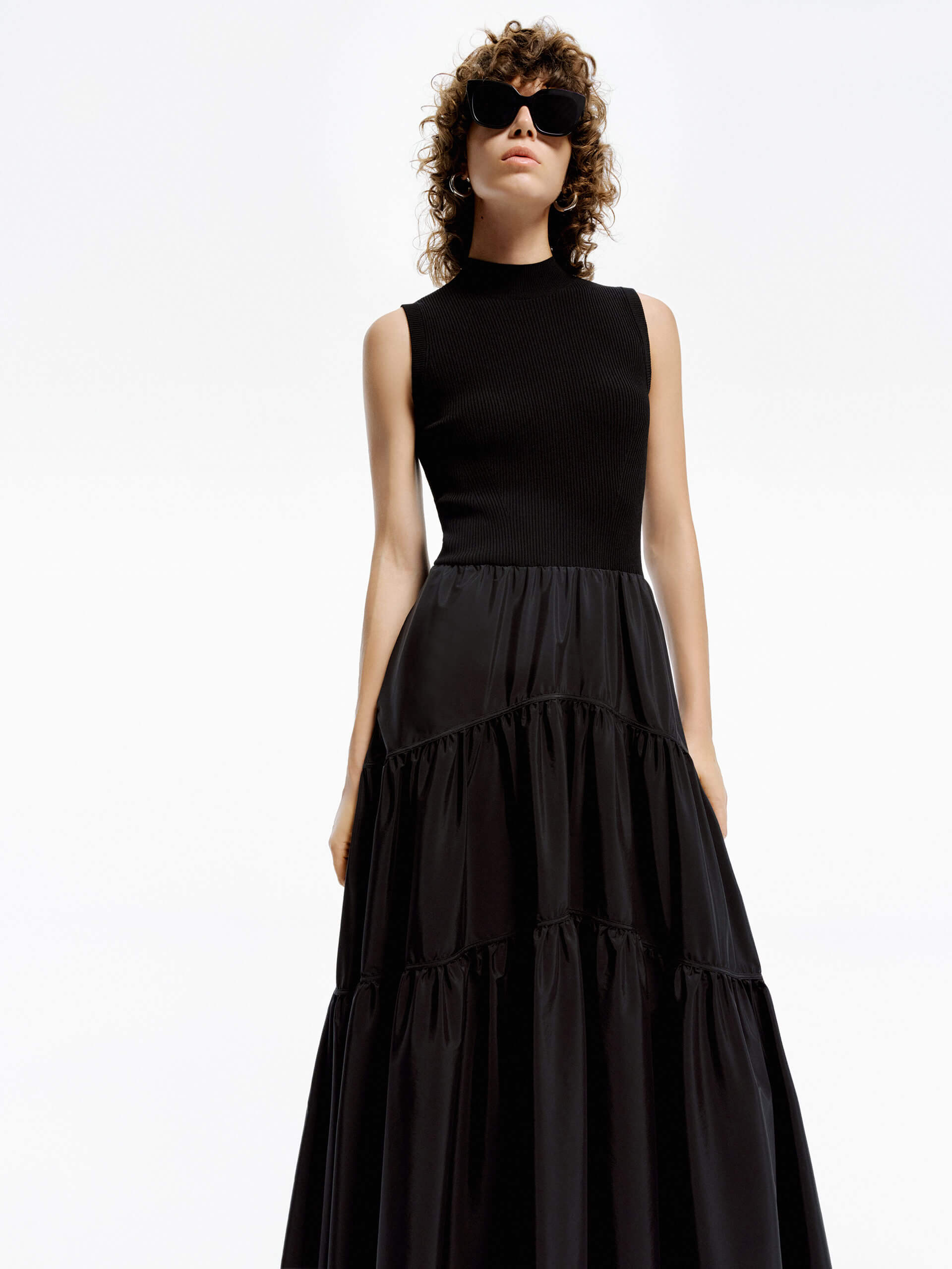 Our sleeveless midi dress is a worthwhile addition to your new-season wardrobe – it'll work for a whole host of SS events. It's designed with a slim jersey top and flares out to a flowy blend skirt that's trimmed with layered pleated and seams details.