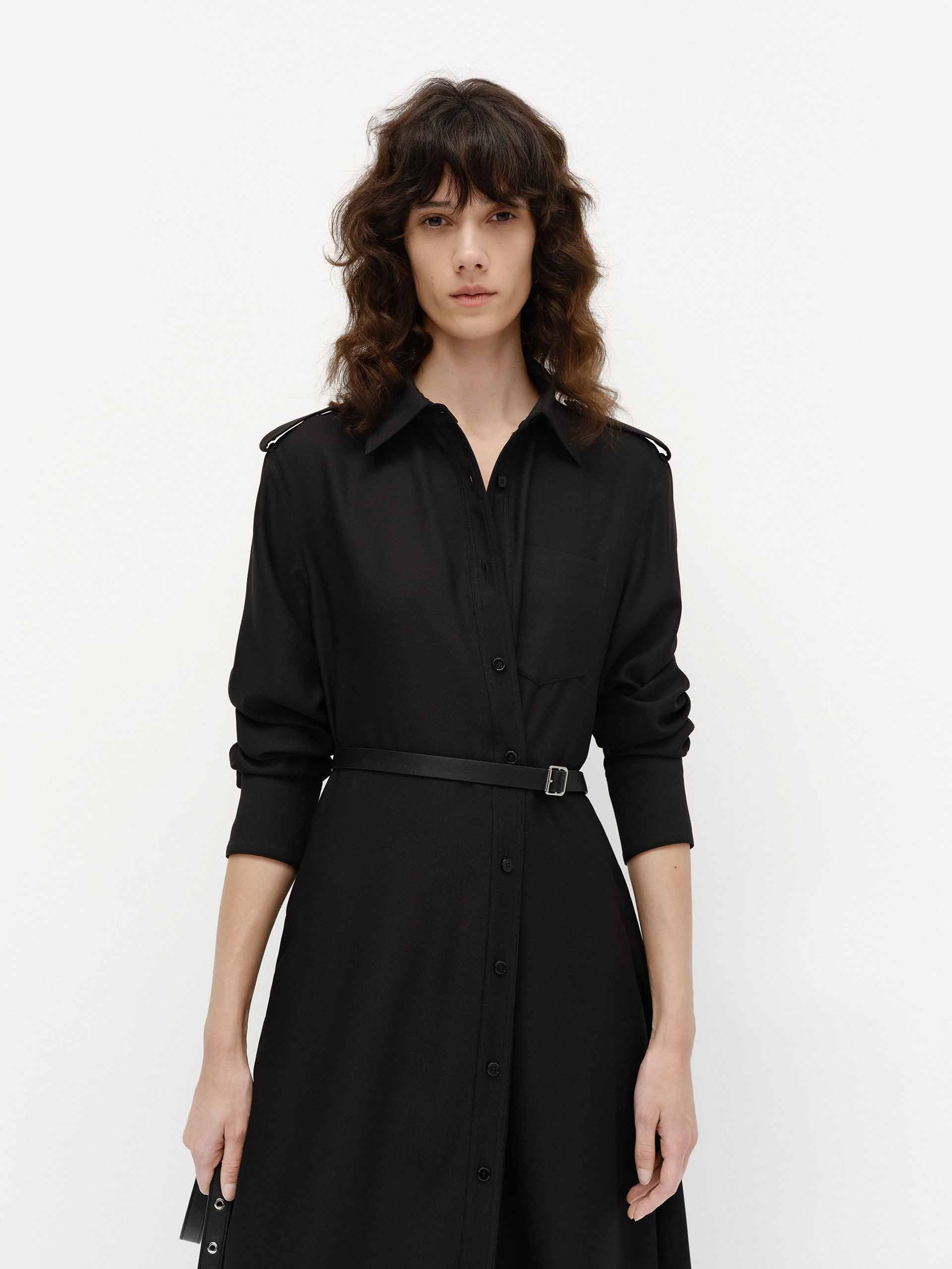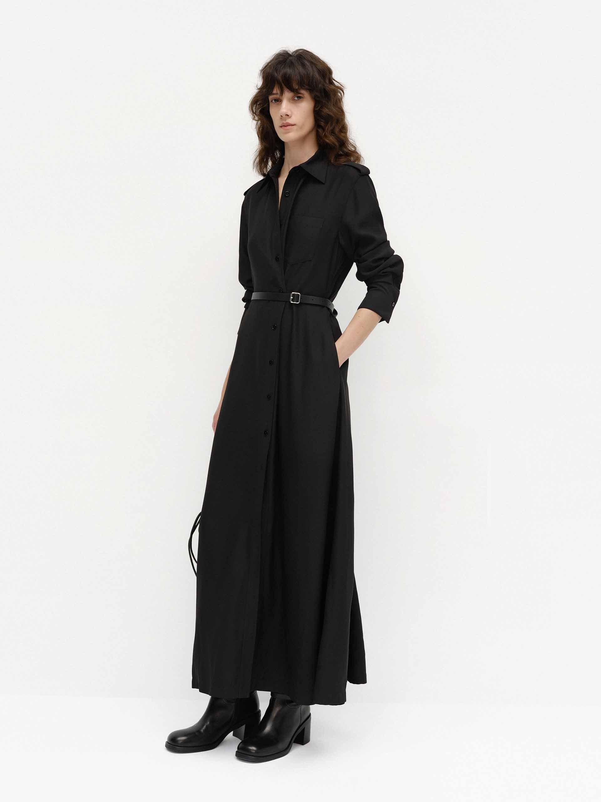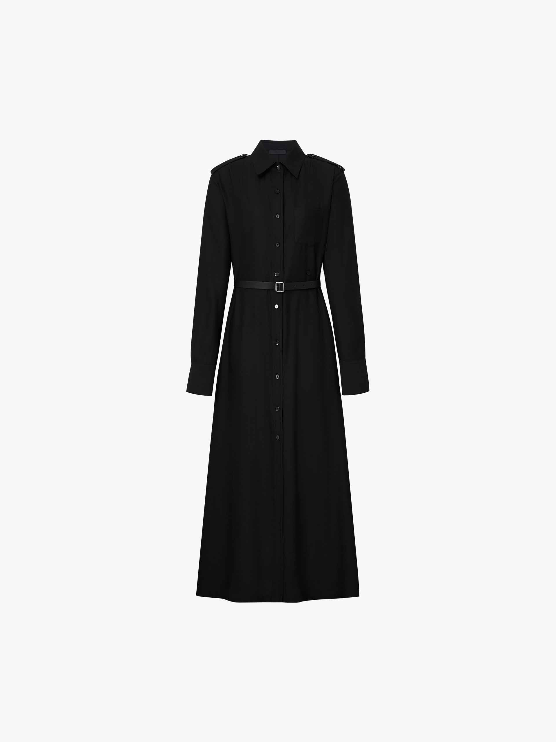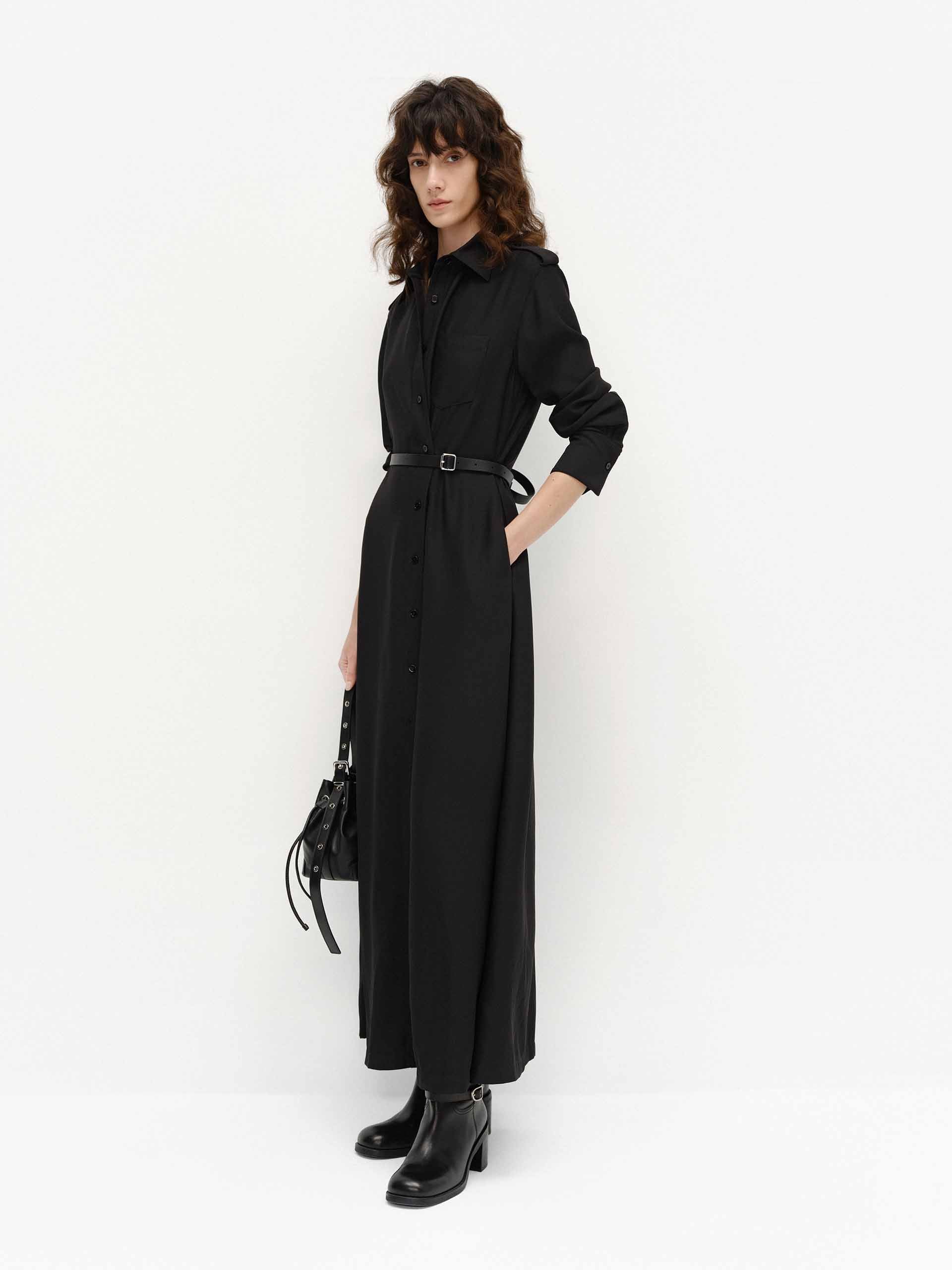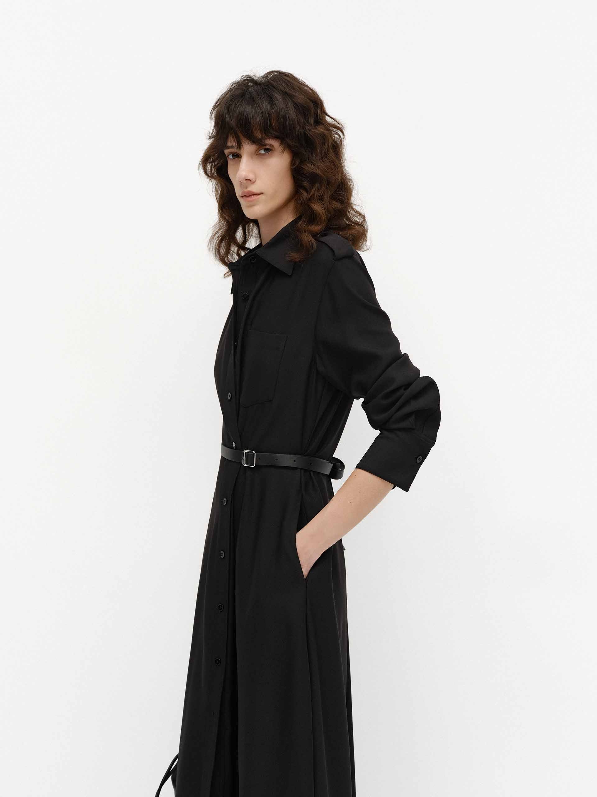 Experience comfort and elegance with this dress. Made from a light and airy fabric, it features a longline shirt silhouette with a button closure and side pocket for added convenience. The included belt adds a touch of style and can be worn for a flattering fit.