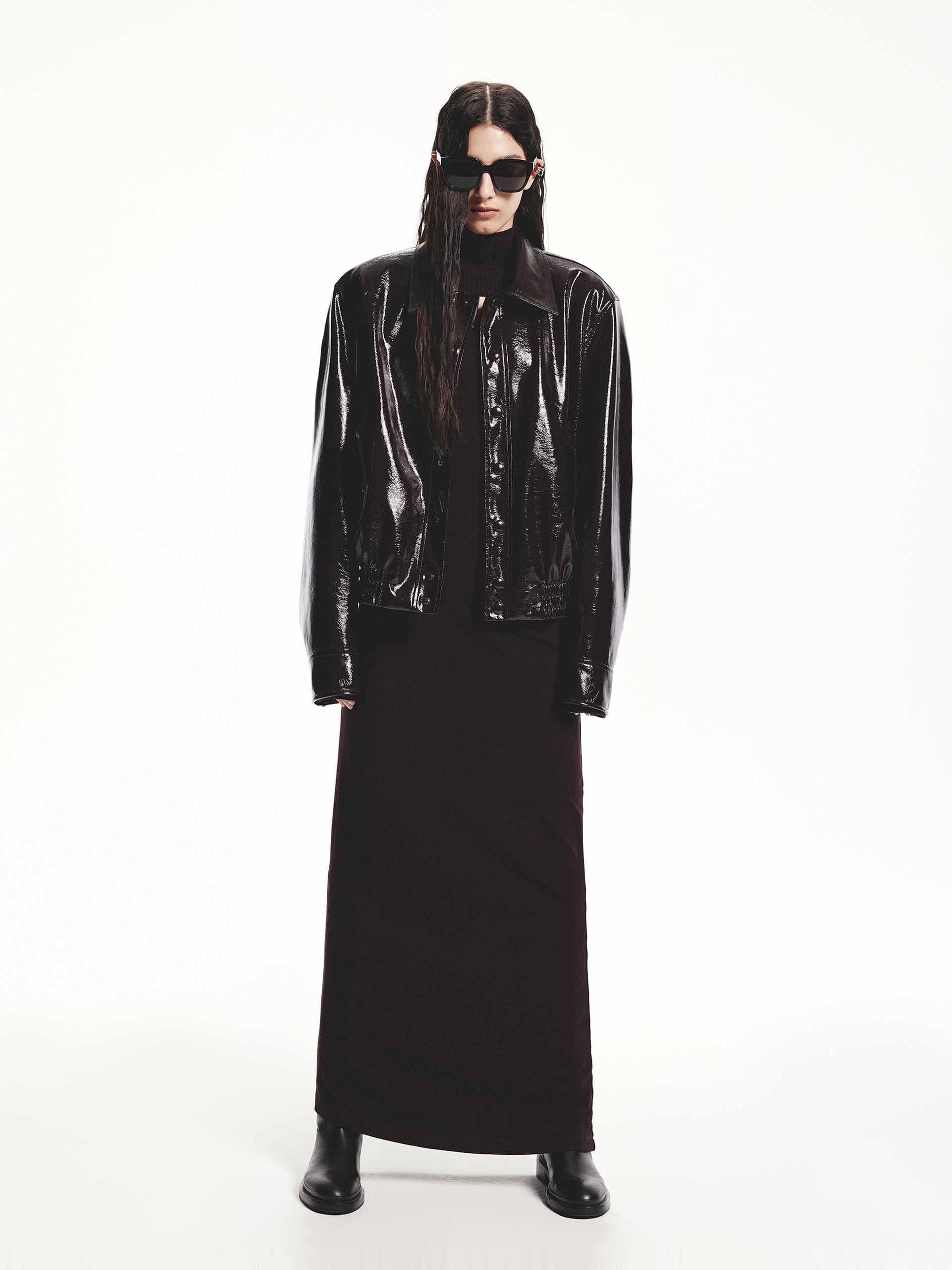 - Slim fit and maxi silhouette