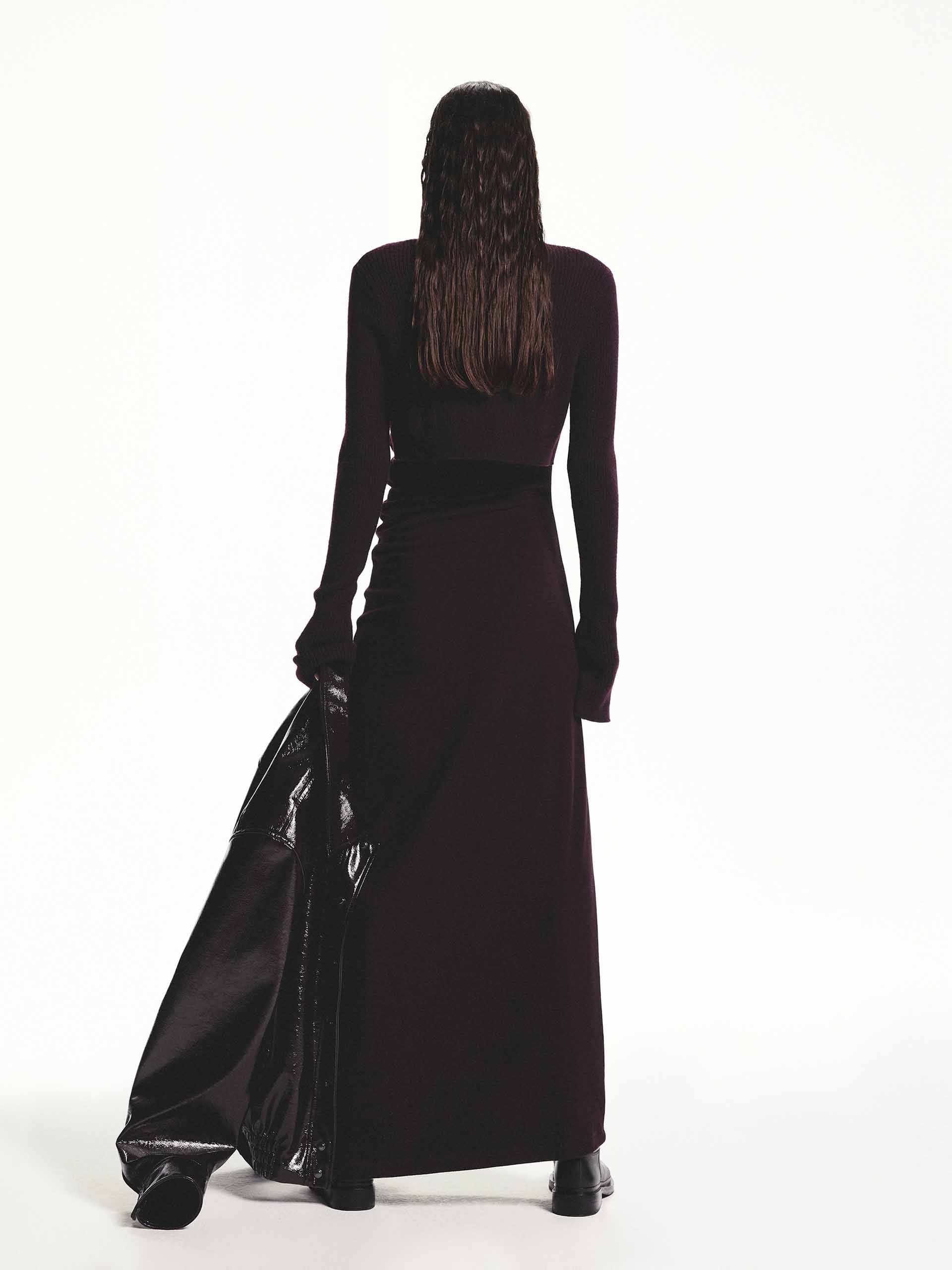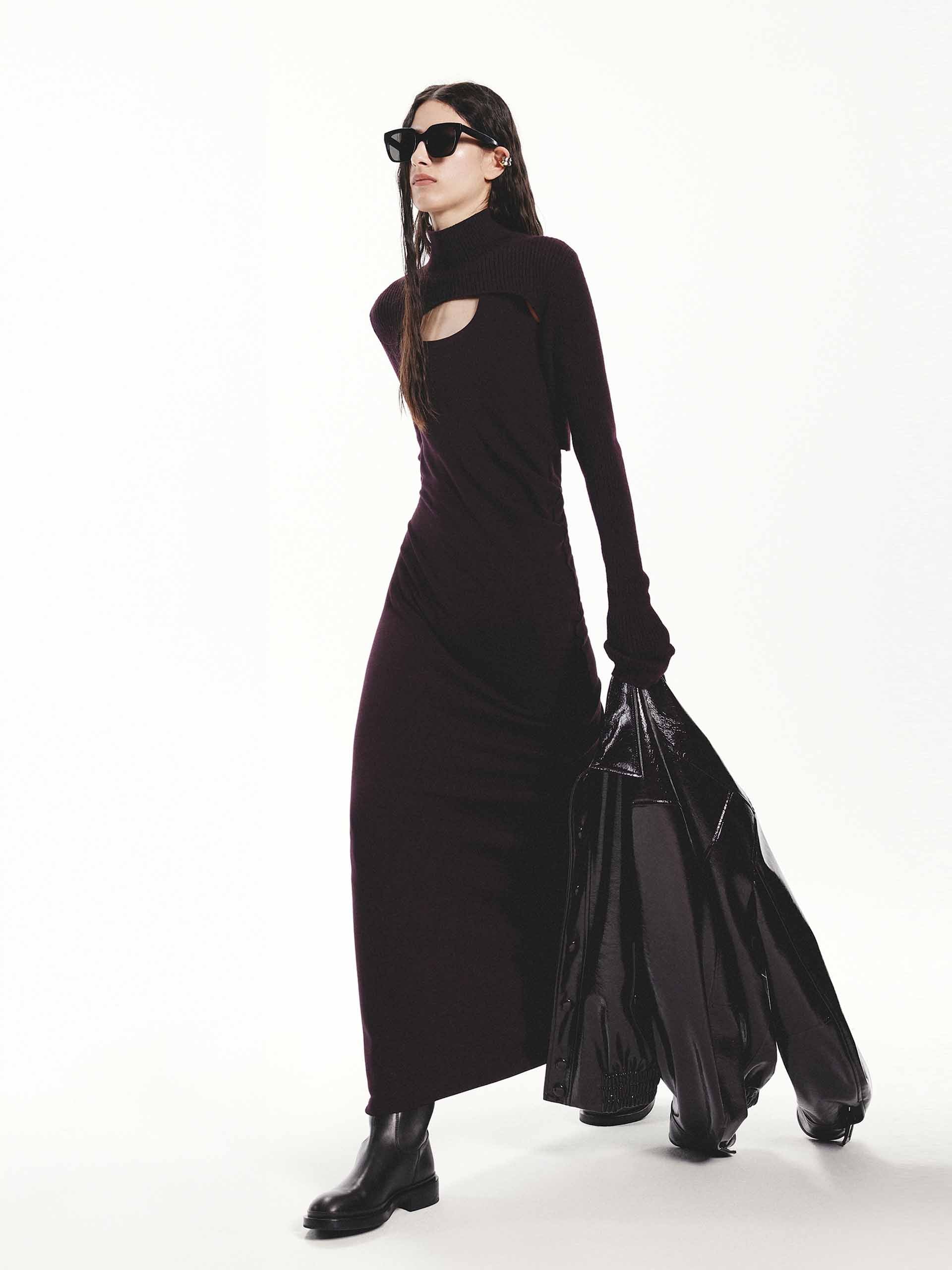 This dress is made of 100% wool. Cut in slim fit and maxi silhouette create a flattering and elongating effect. It offers a pleated design, which adds visual interest and allows for flexibility and movement. Pair it with boots and jewelry for a stylish look.