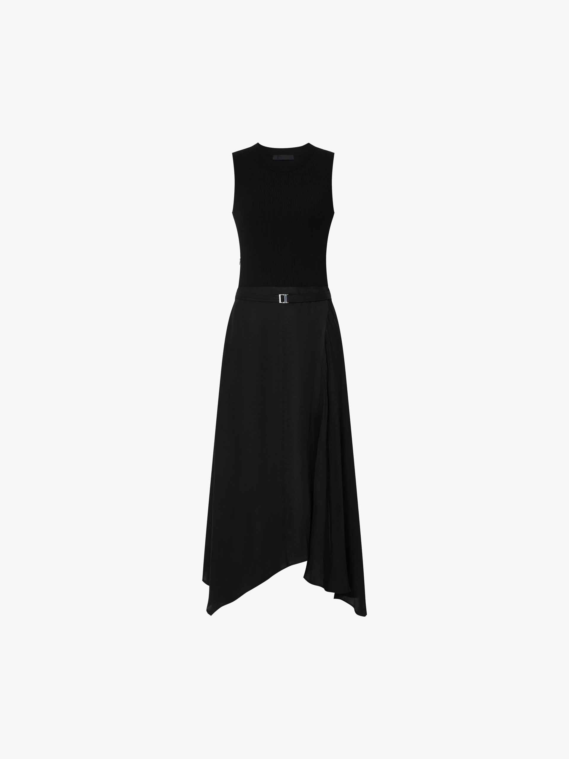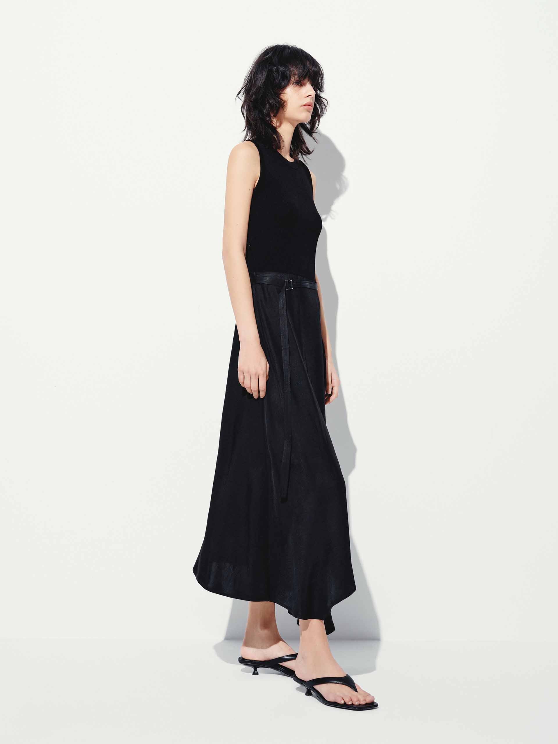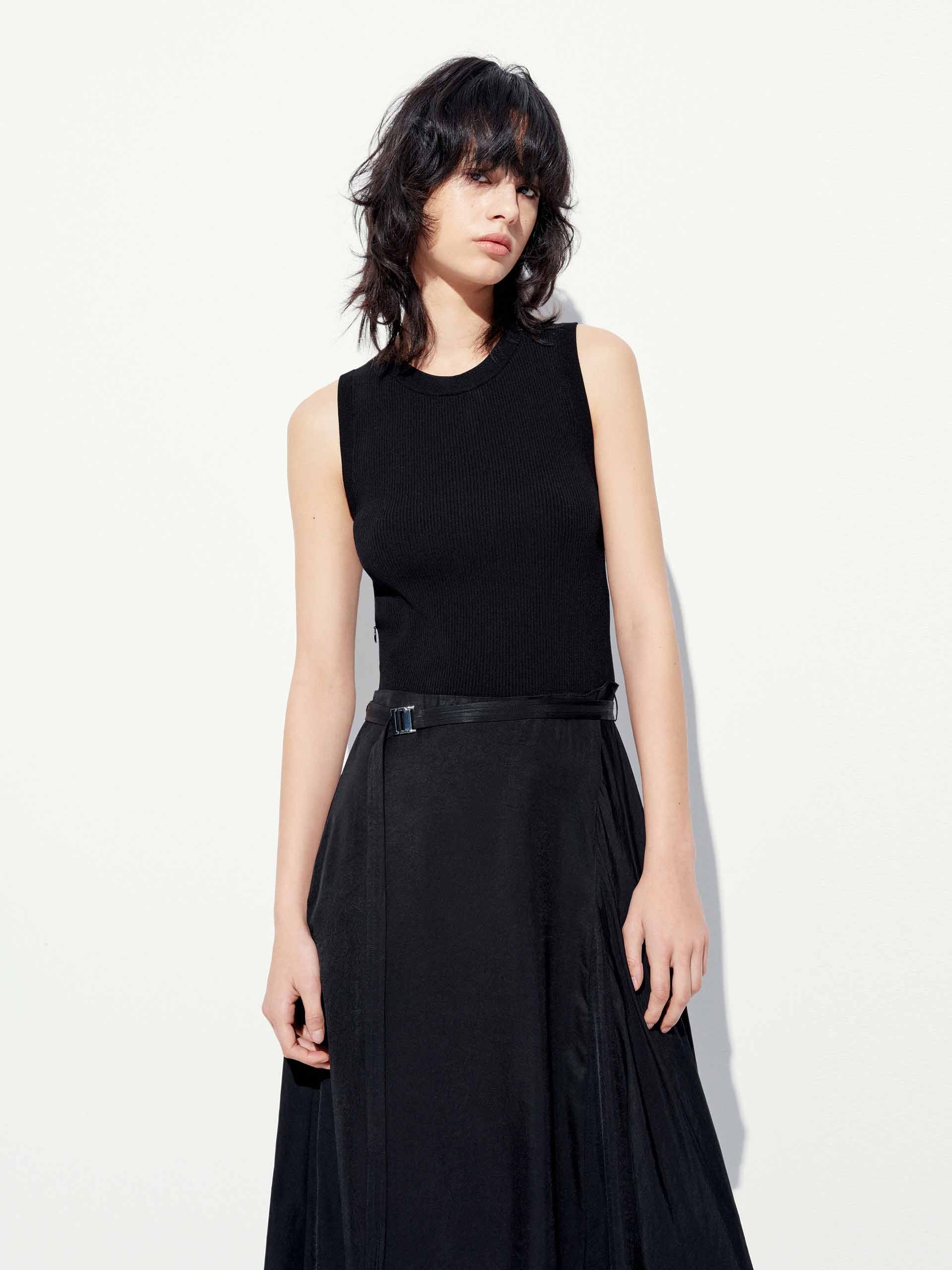 - Sleeveless, asymmetric hem
