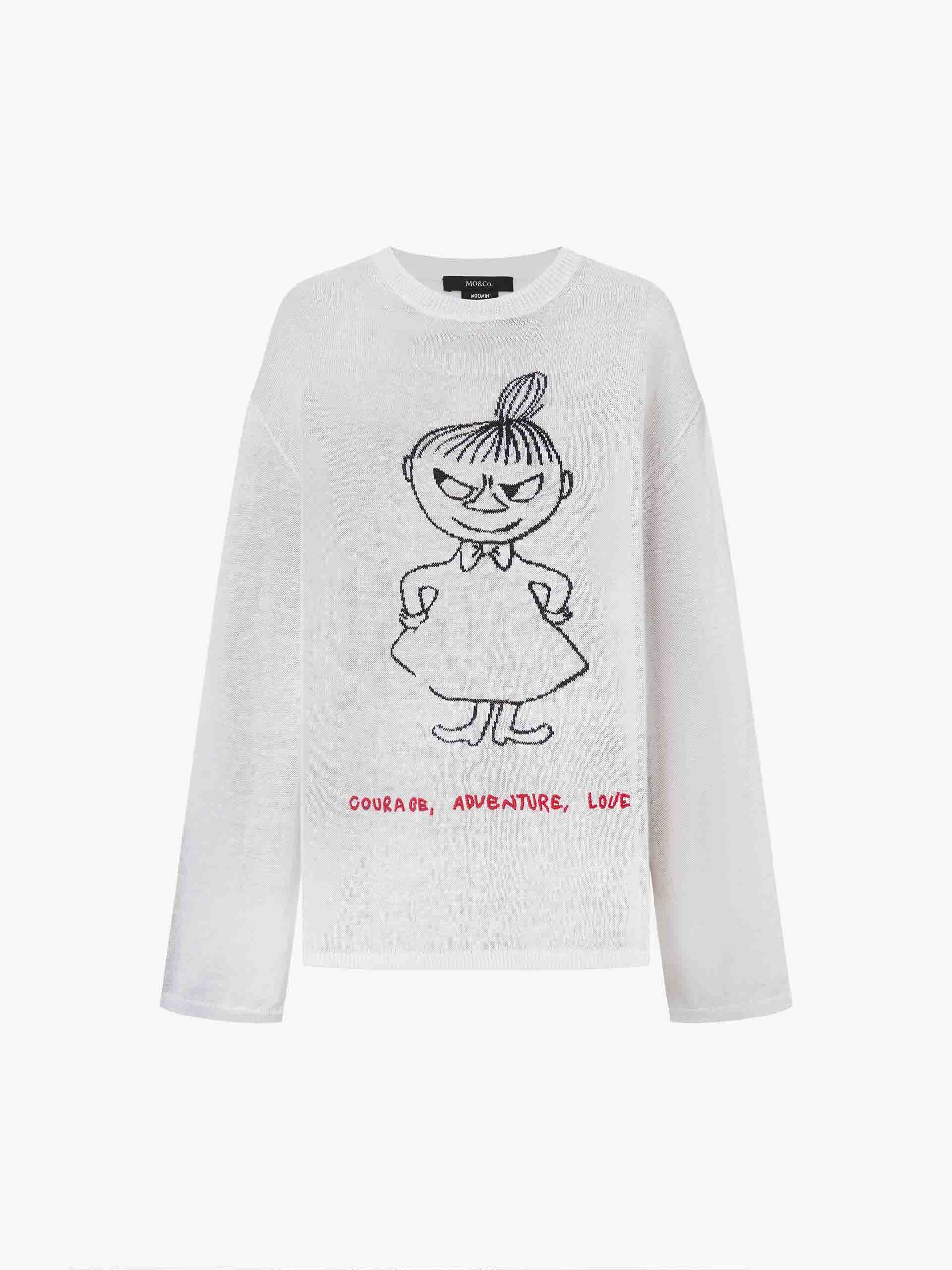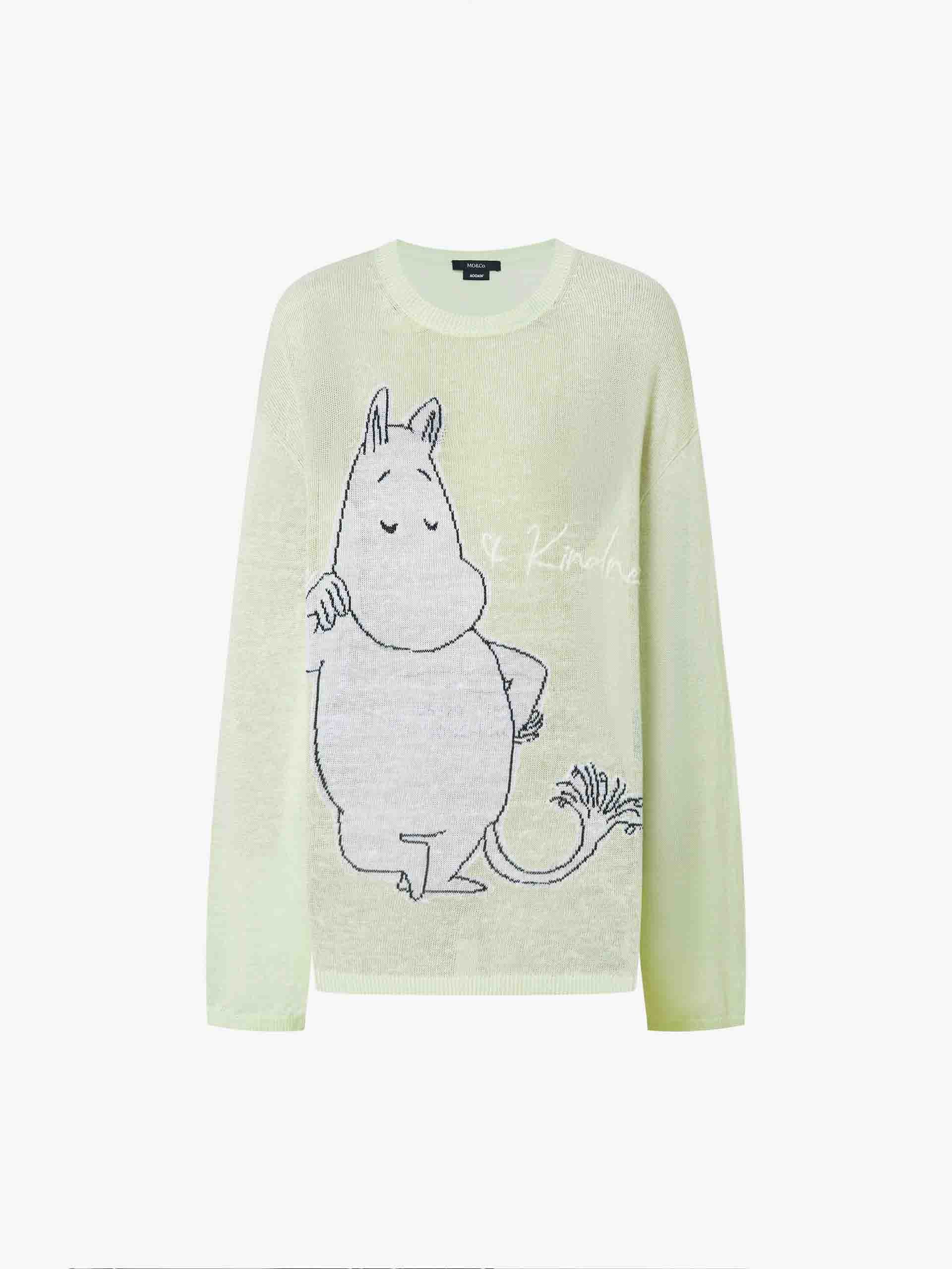 This MO&Co. x MOOMIN collaboration knit top offers a playful yet refined take on casual style. The lightweight linen-cotton blend creates a subtly sheer, airy feel, while the charming Moomin embroidery adds a playful touch to your spring and summer looks.