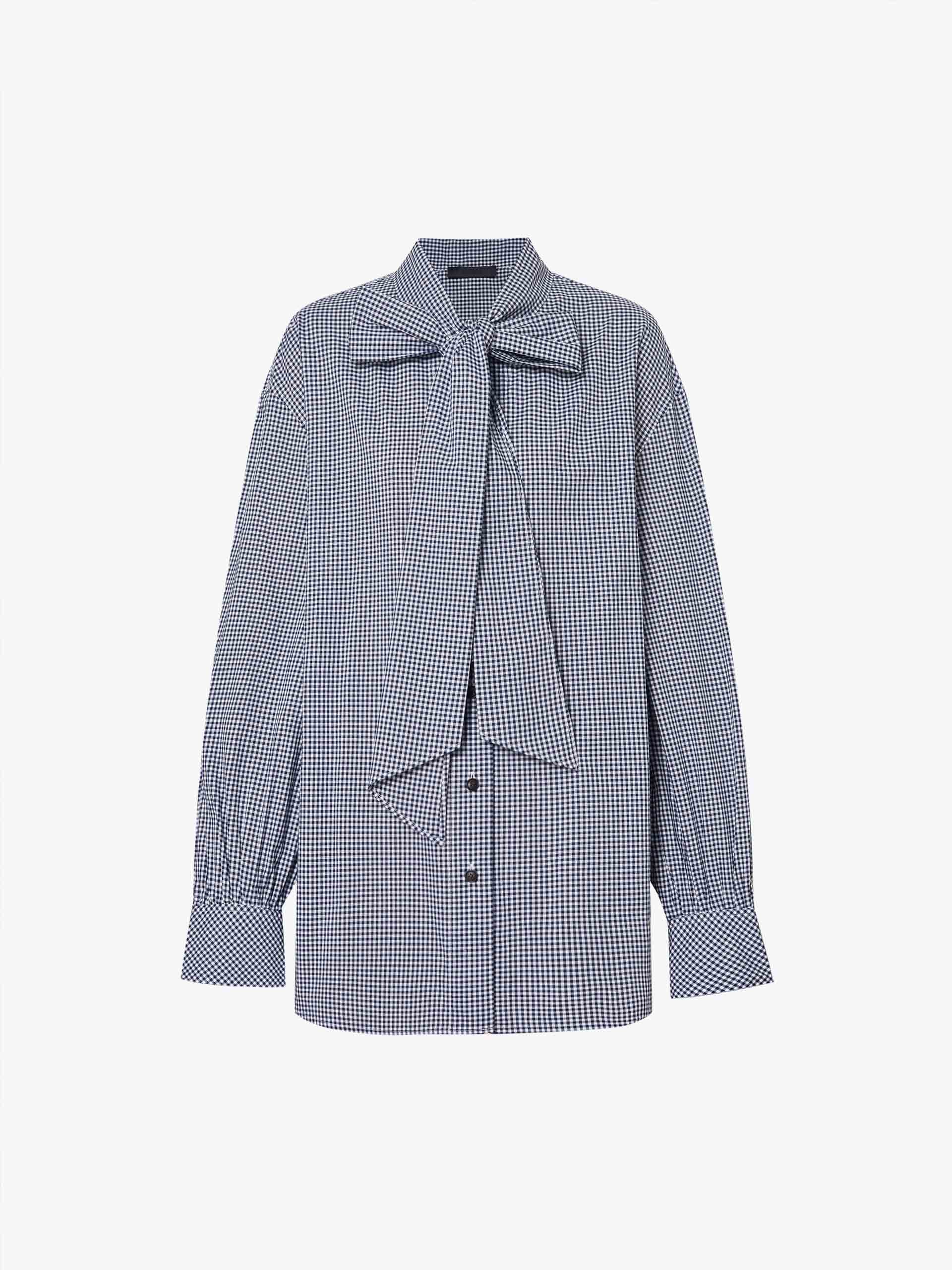 Cotton Tie Plaid Blouse