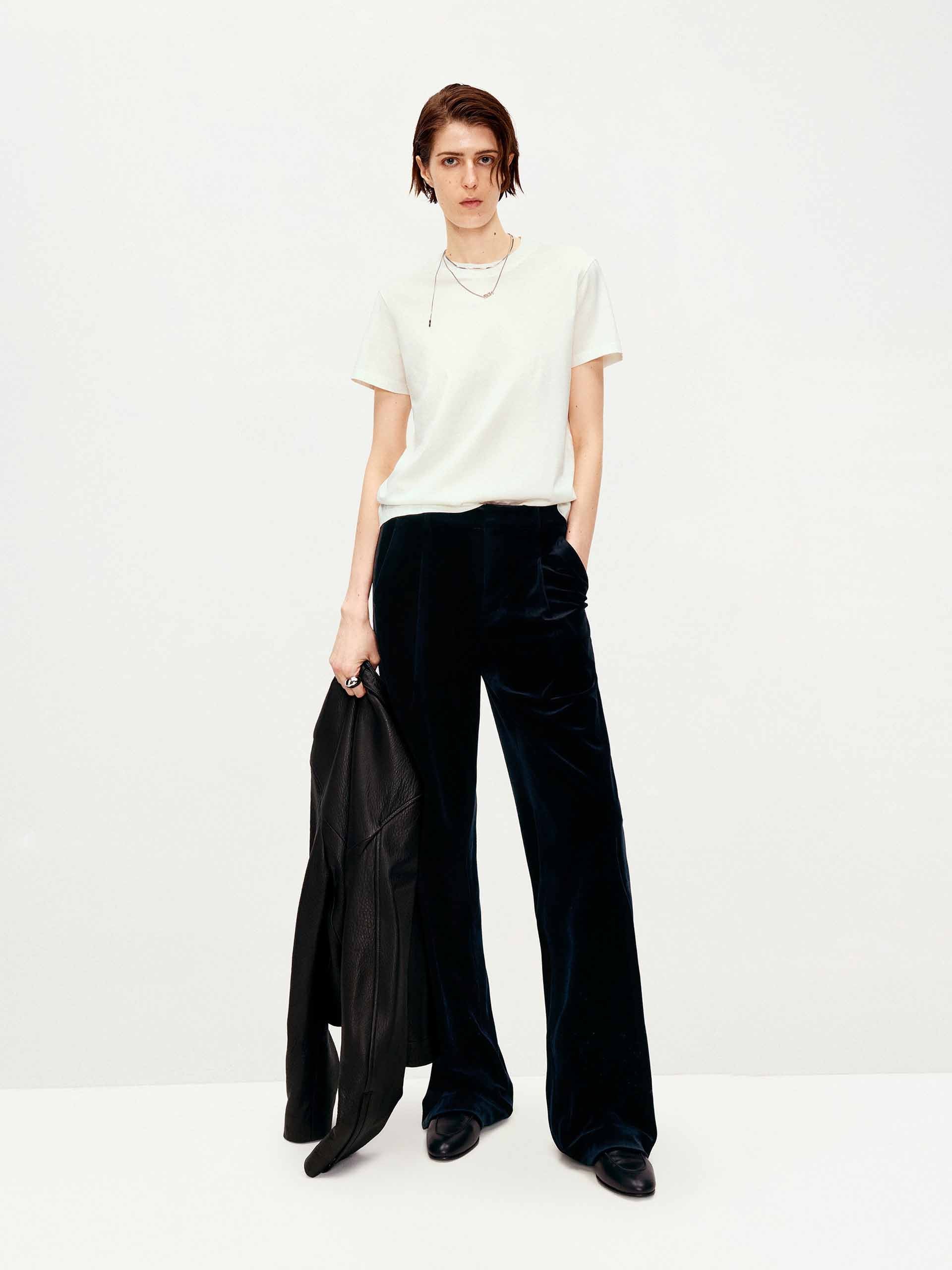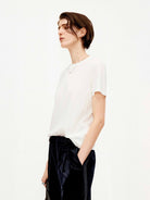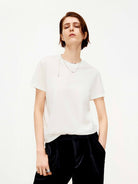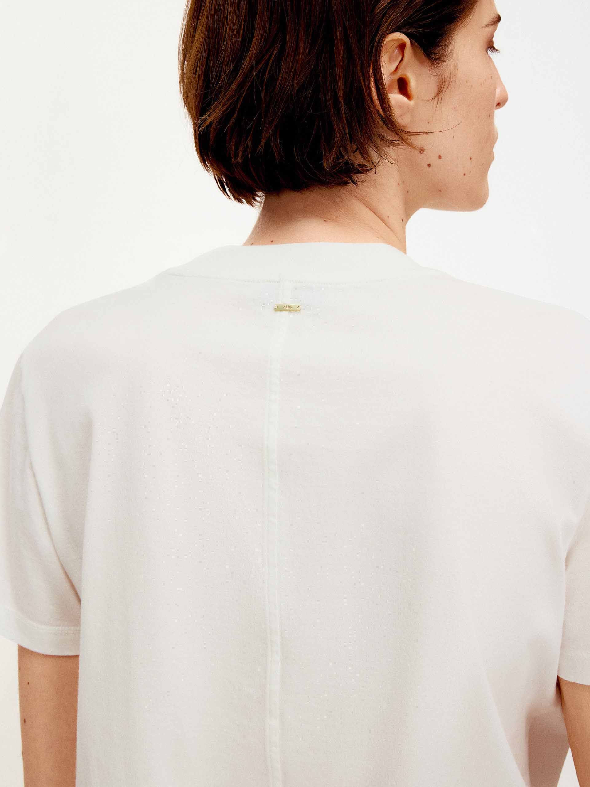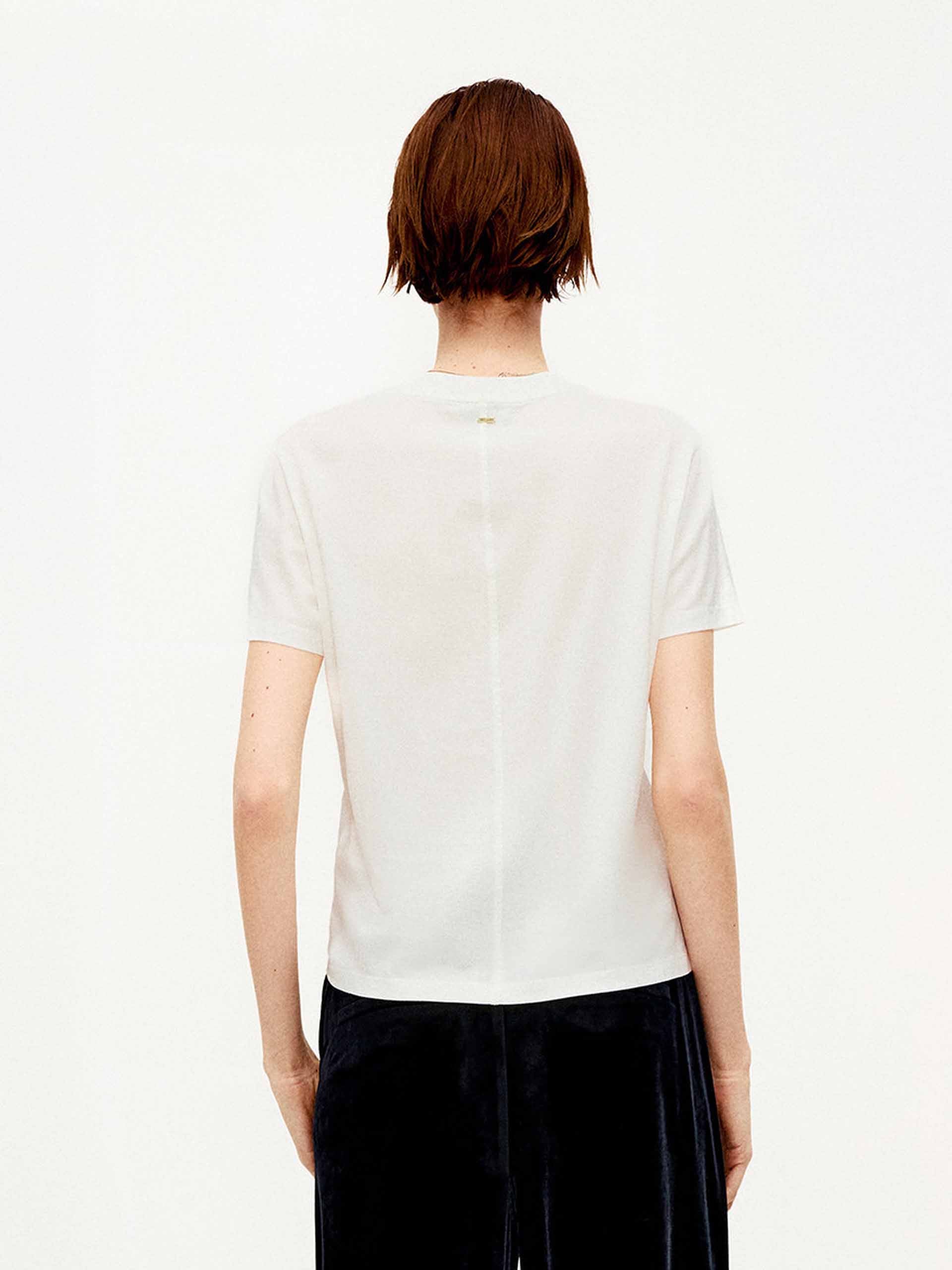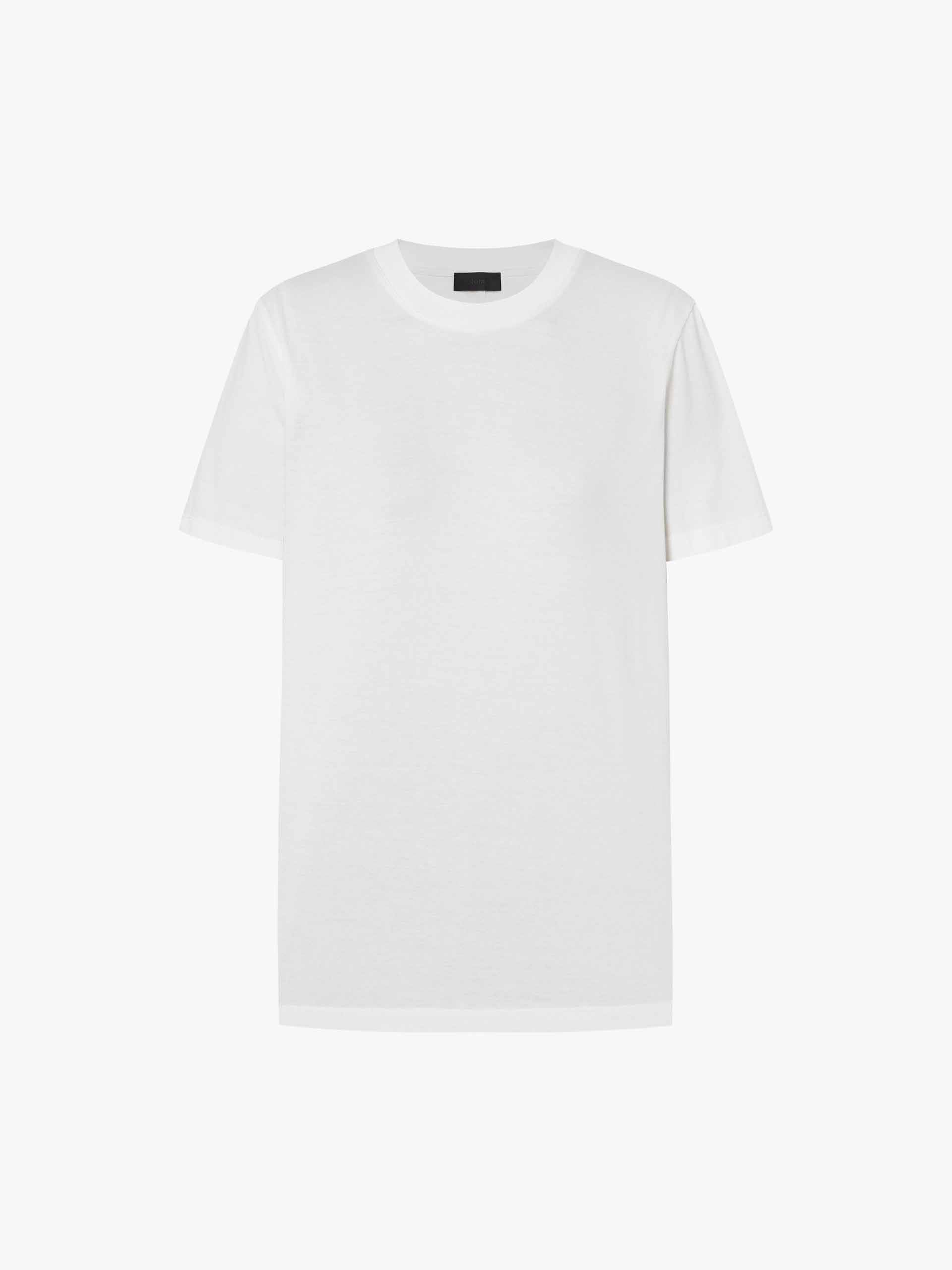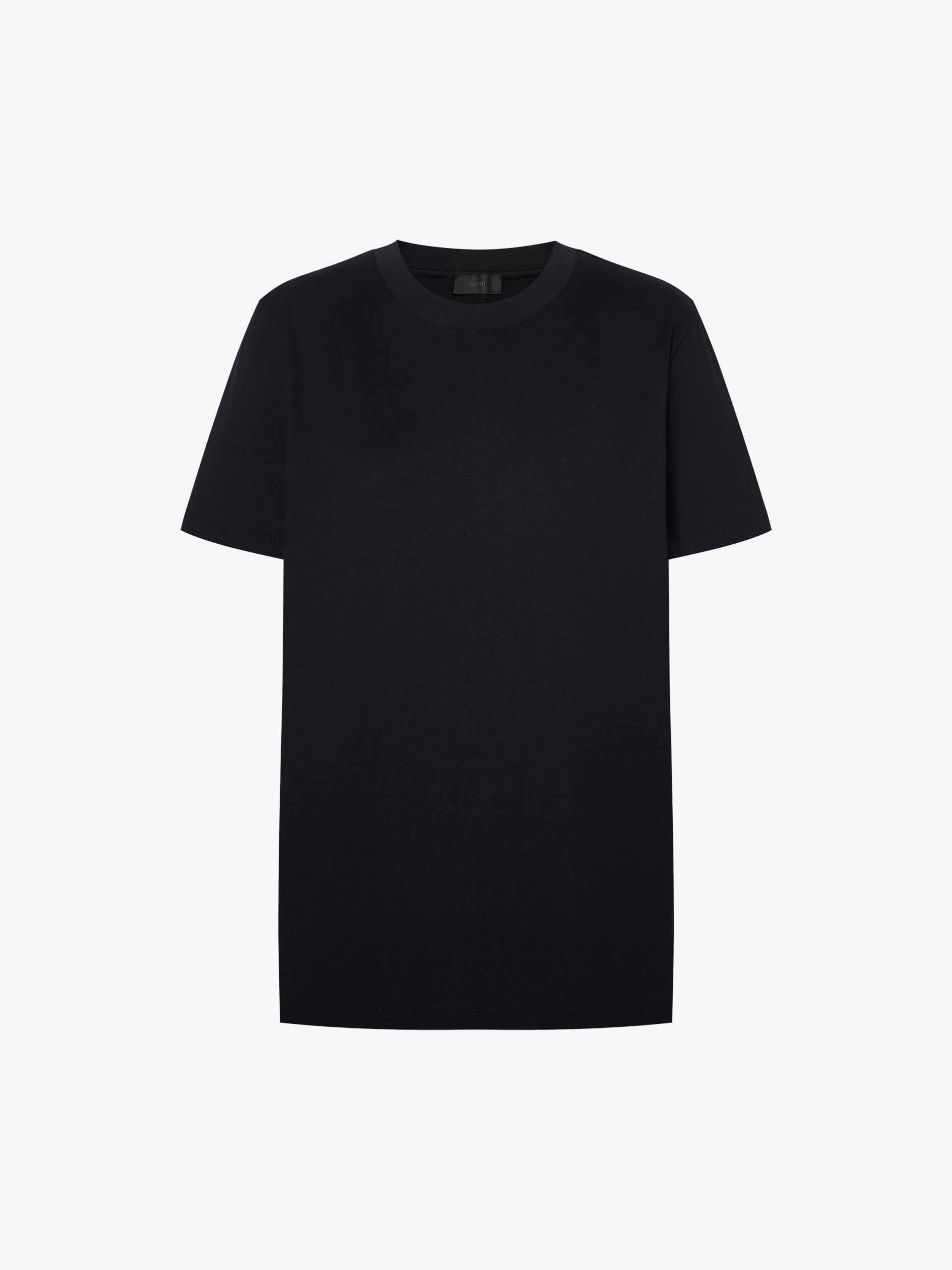 Crafted from premium 100% pure cotton, this T-shirt ensures exceptional softness and breathability. Its classic regular fit and timeless round neck provide a versatile and comfortable silhouette, perfect for daily wear. The defining feature is the pronounced center back seam, which adds structural interest and a tailored touch, accentuated by a subtle yet striking back metal patch.