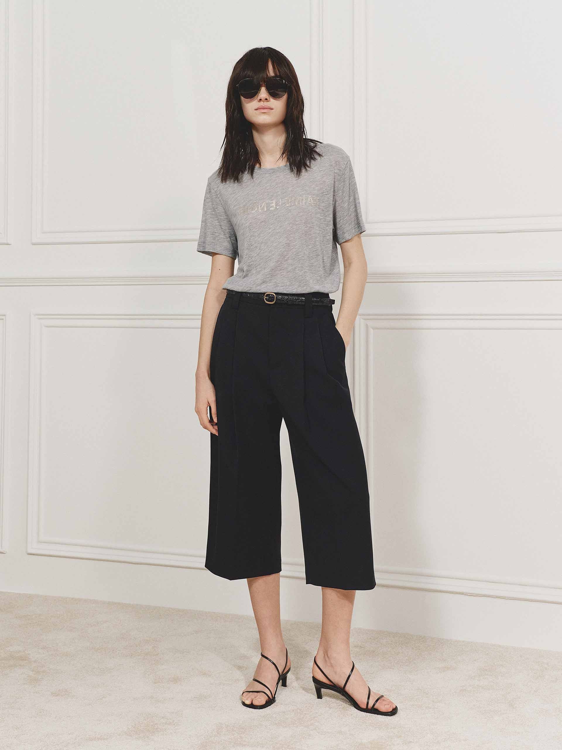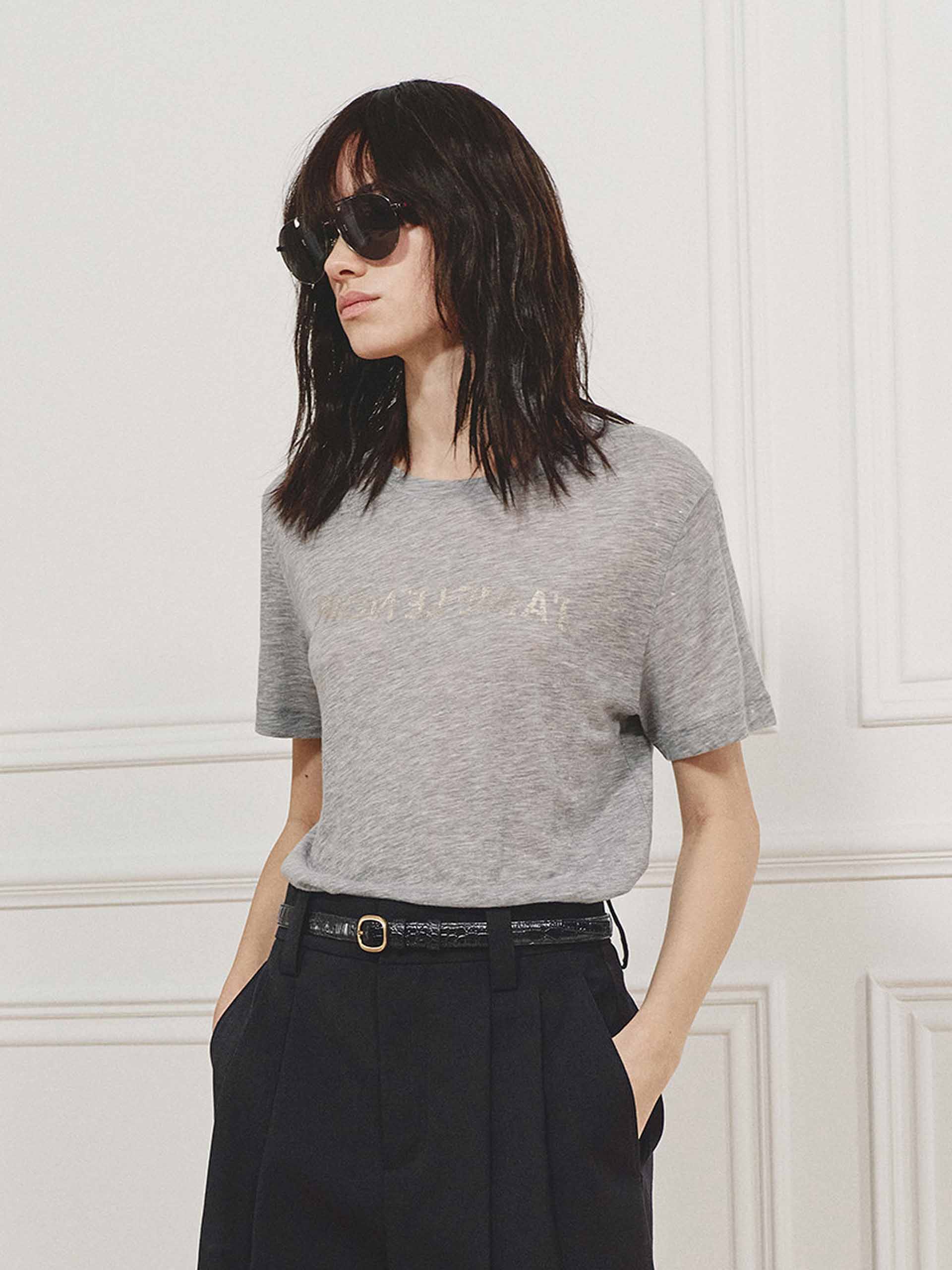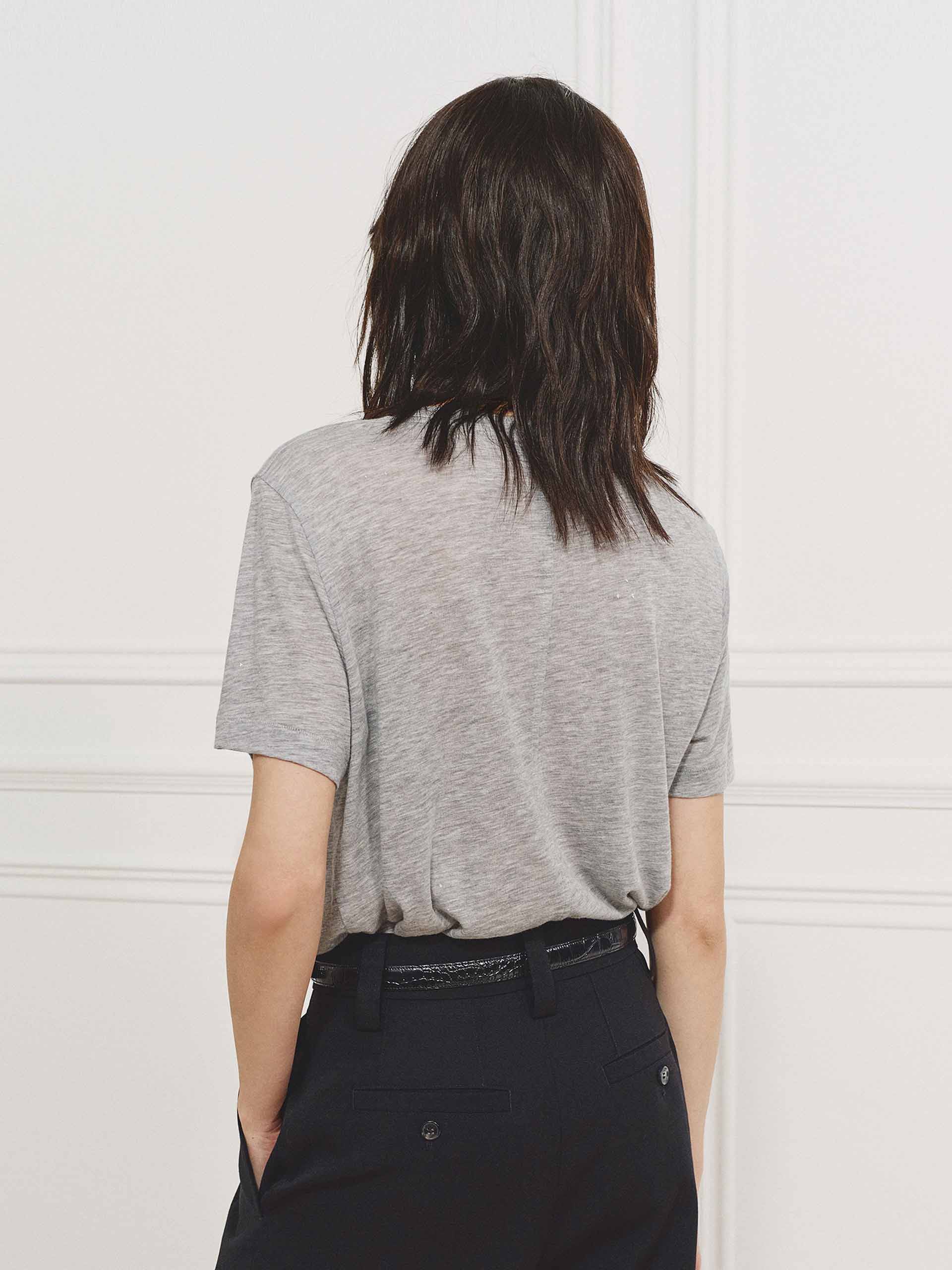 A regular-fit T-shirt defined by its fabric first. Crafted from a Tencel and wool blend, the material is unexpectedly lightweight — breathable, soft, and naturally thermoregulating. The surface remains clean and minimal, with a subtle hot stamping print that catches light rather than attention. No excess, ust texture, breathability, and an easy silhouette.