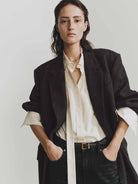 Command attention with our blazer, expertly tailored from 100% wool for a sharp and structured silhouette that exudes timeless sophistication. It features a classic peak lapel and refined pad shoulder detail to enhance your frame with a powerful, confident posture. The functional button cuffs and a fully lined interior underscore the exceptional craftsmanship and polished finish of this essential wardrobe piece.