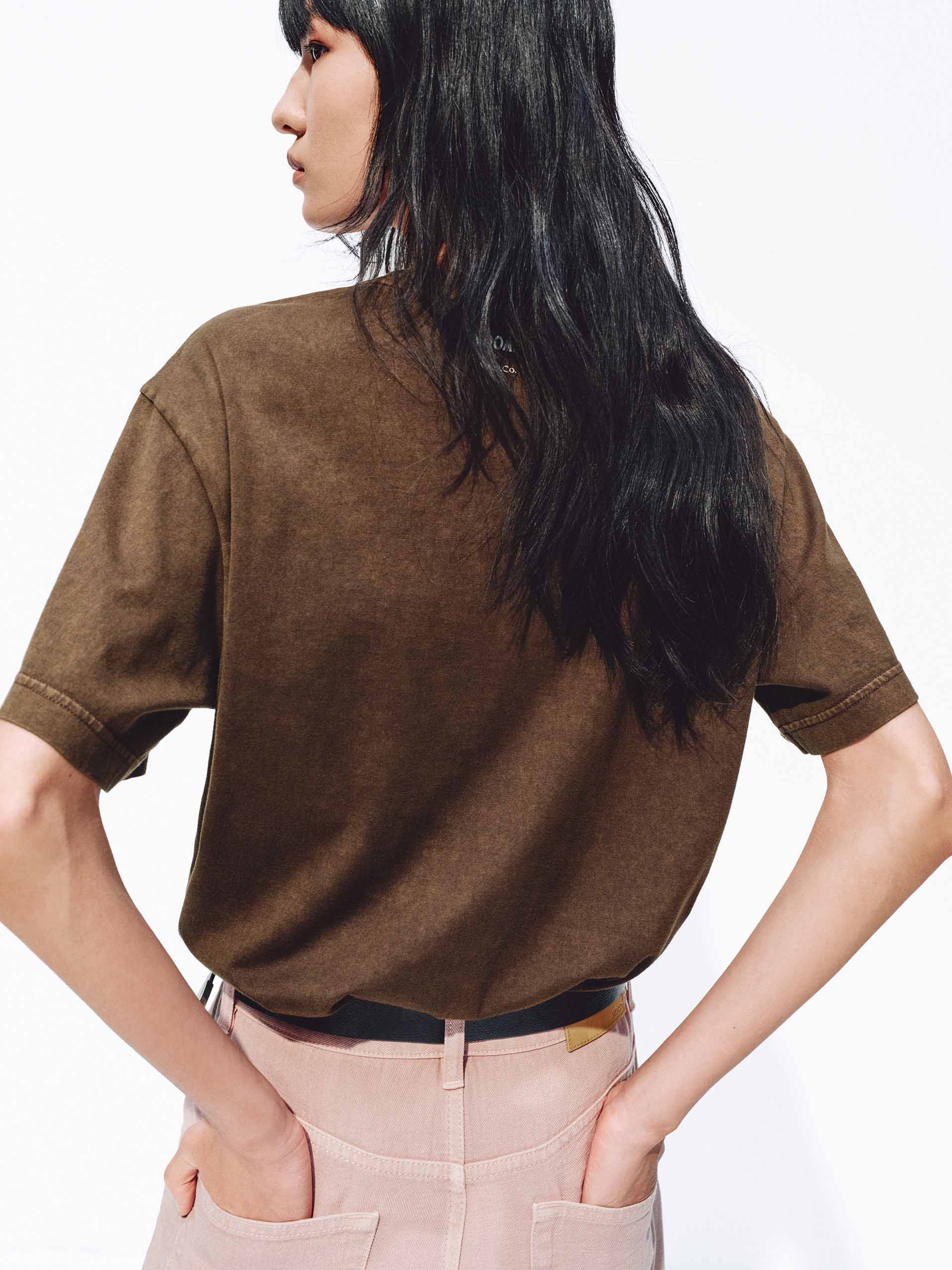A T-shirt Effortlessly cool and comfortable, this pure cotton tee features a playful cartoon print with a vintage edge wash for that perfectly worn-in look. The regular fit flatters all body types while the 100% cotton fabric keeps you breathable throughout the day.