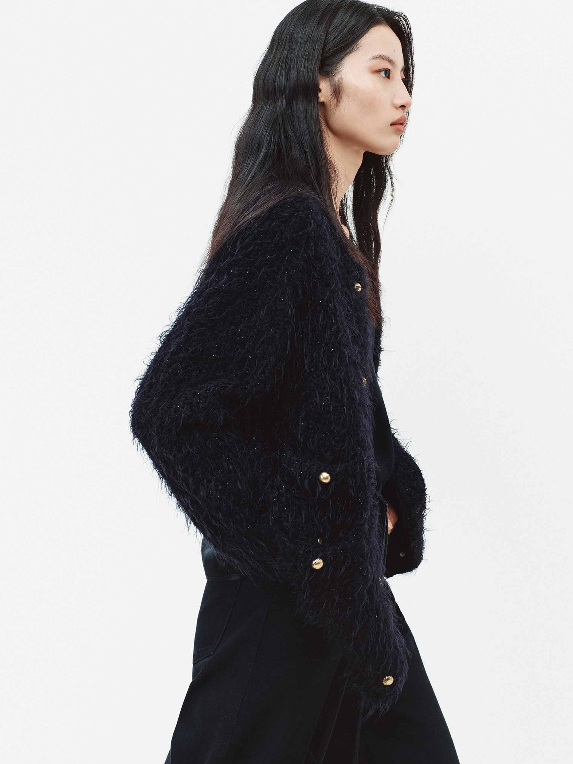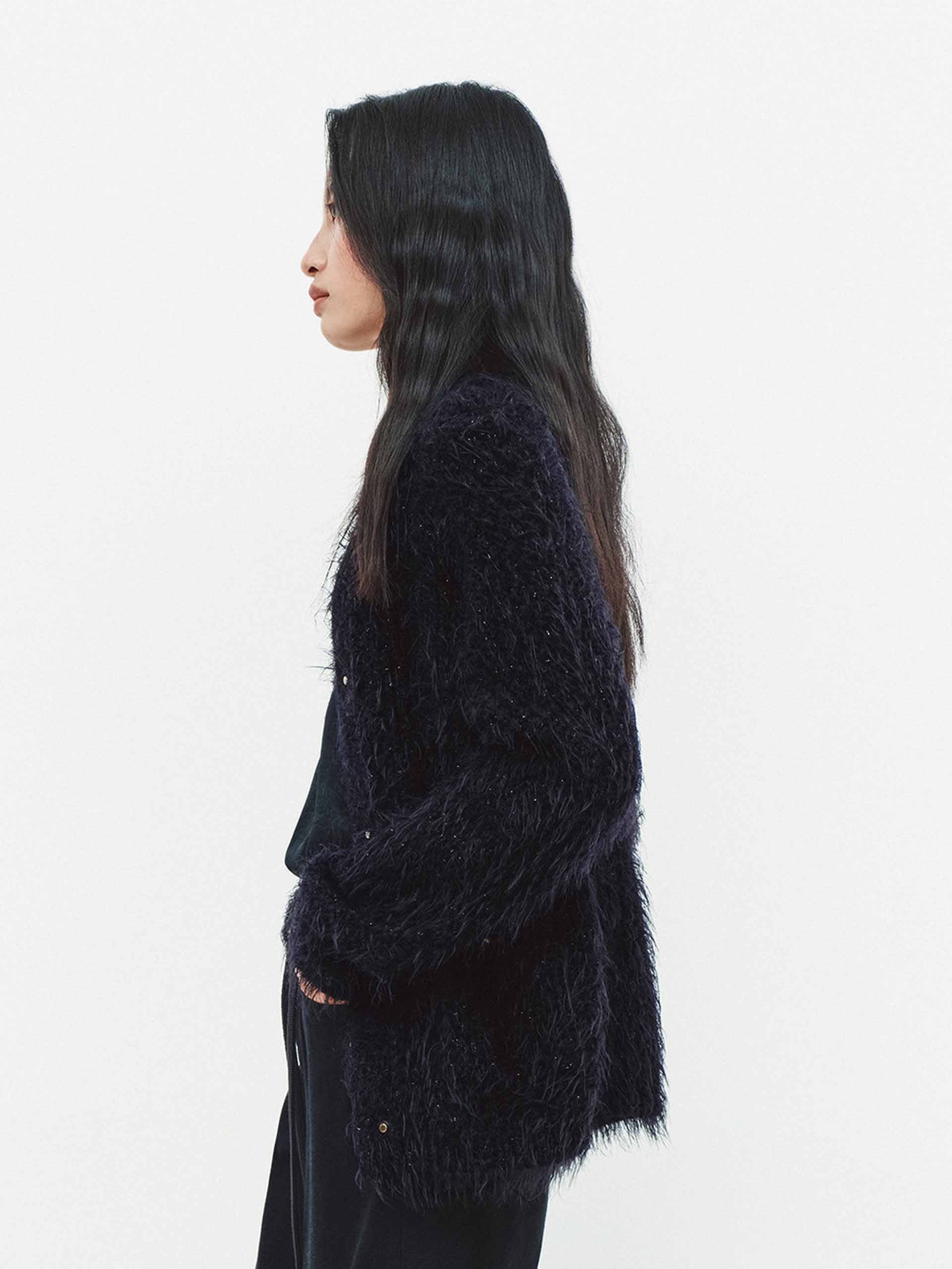 Wool Blend Fluffy Cardigan