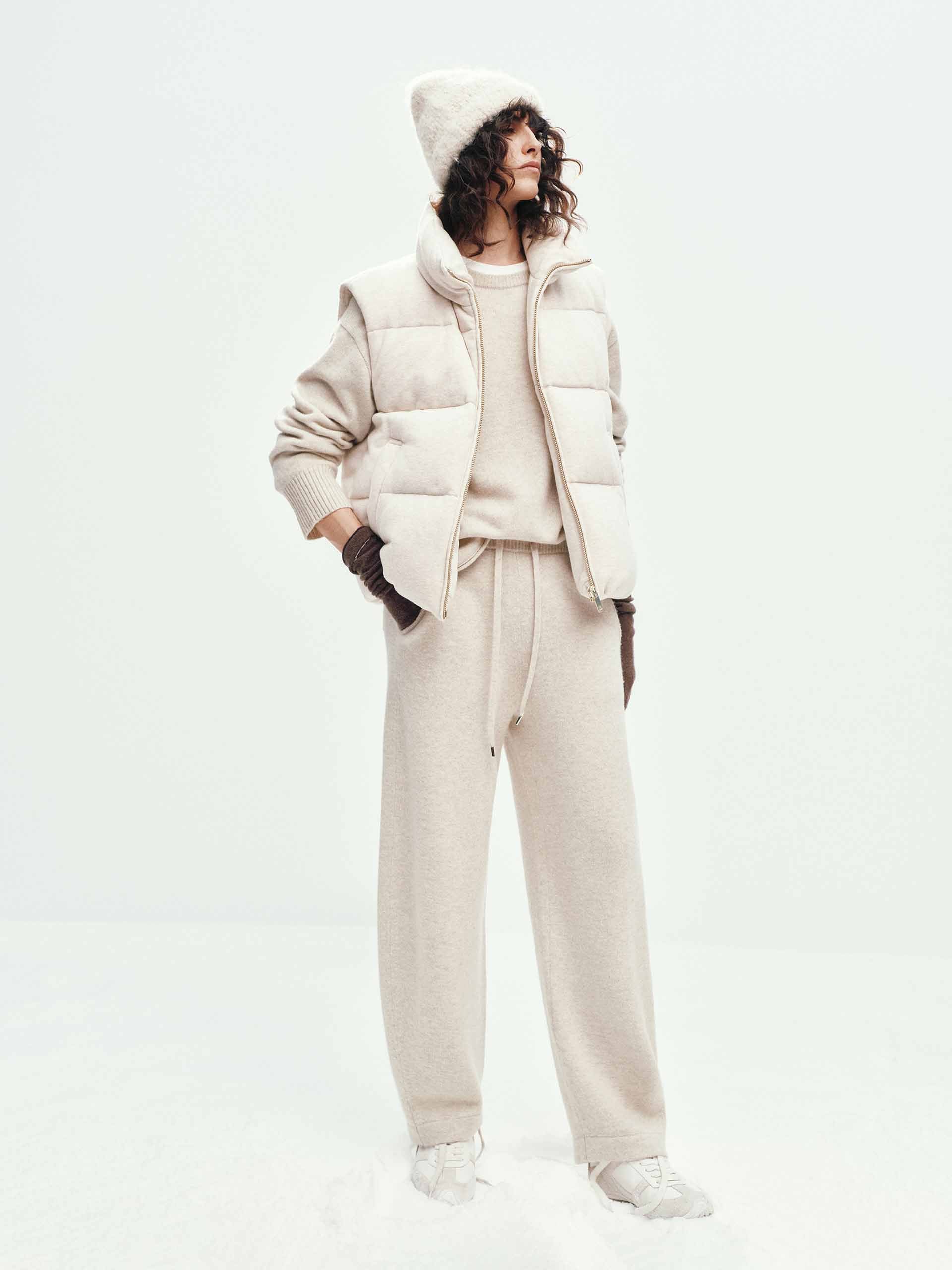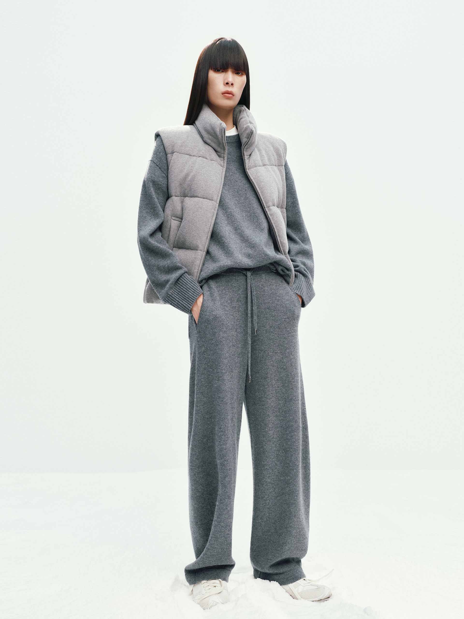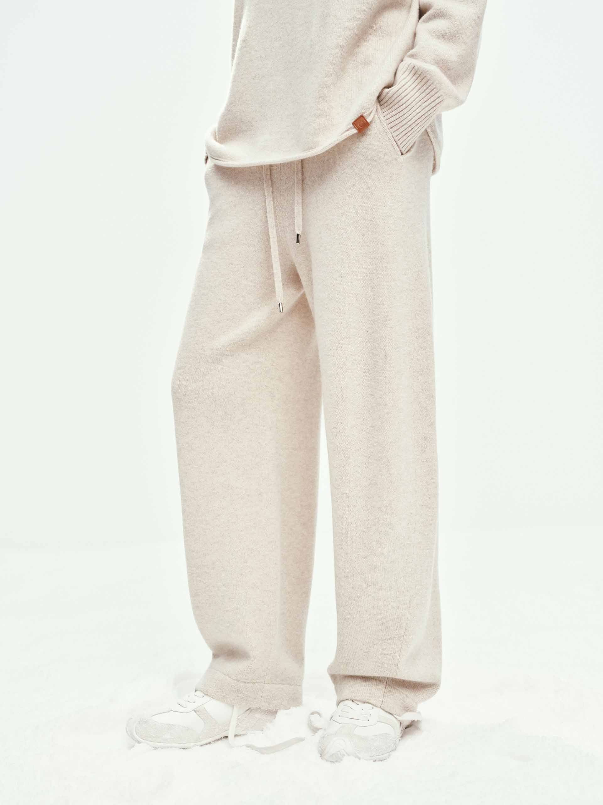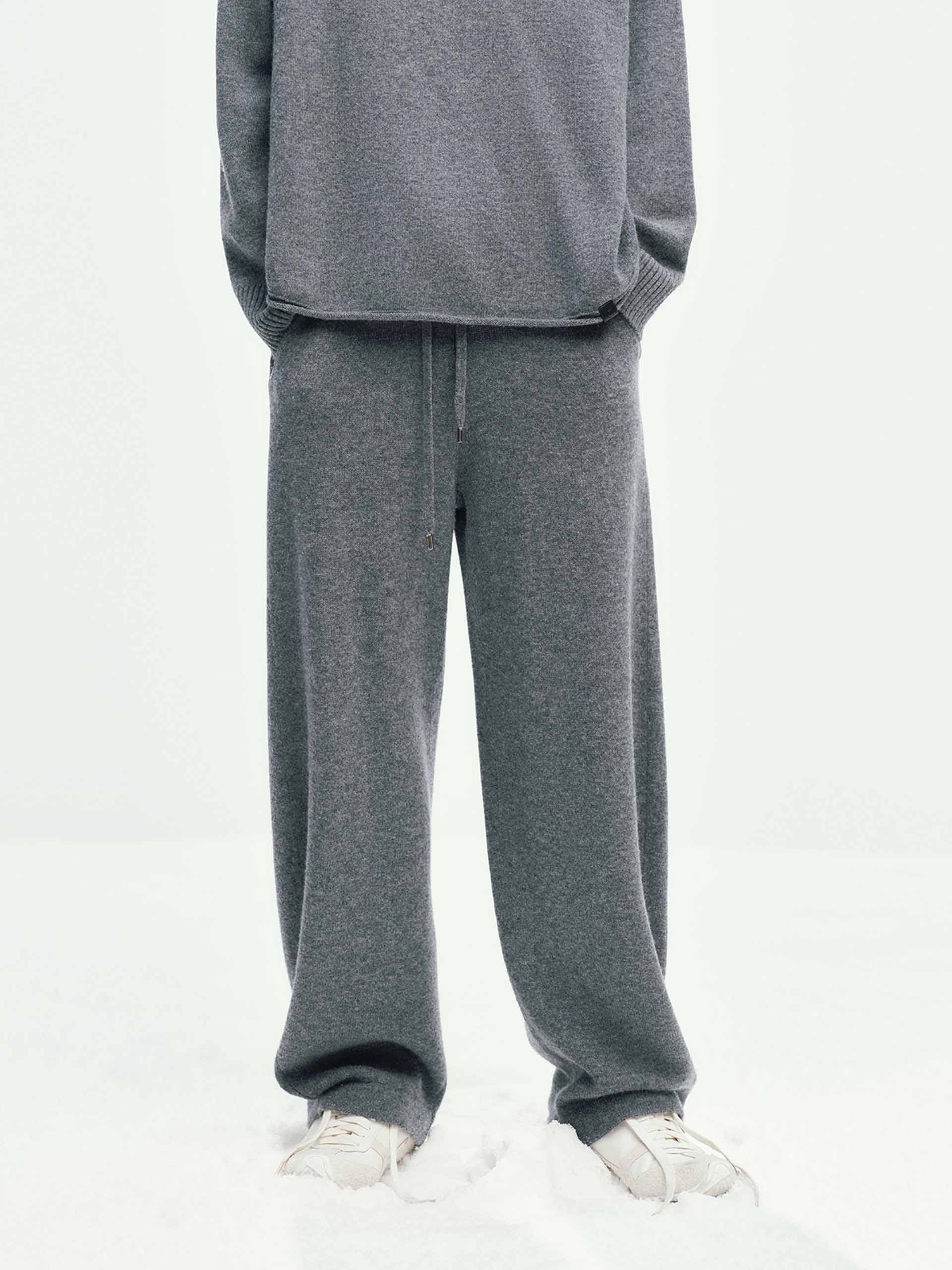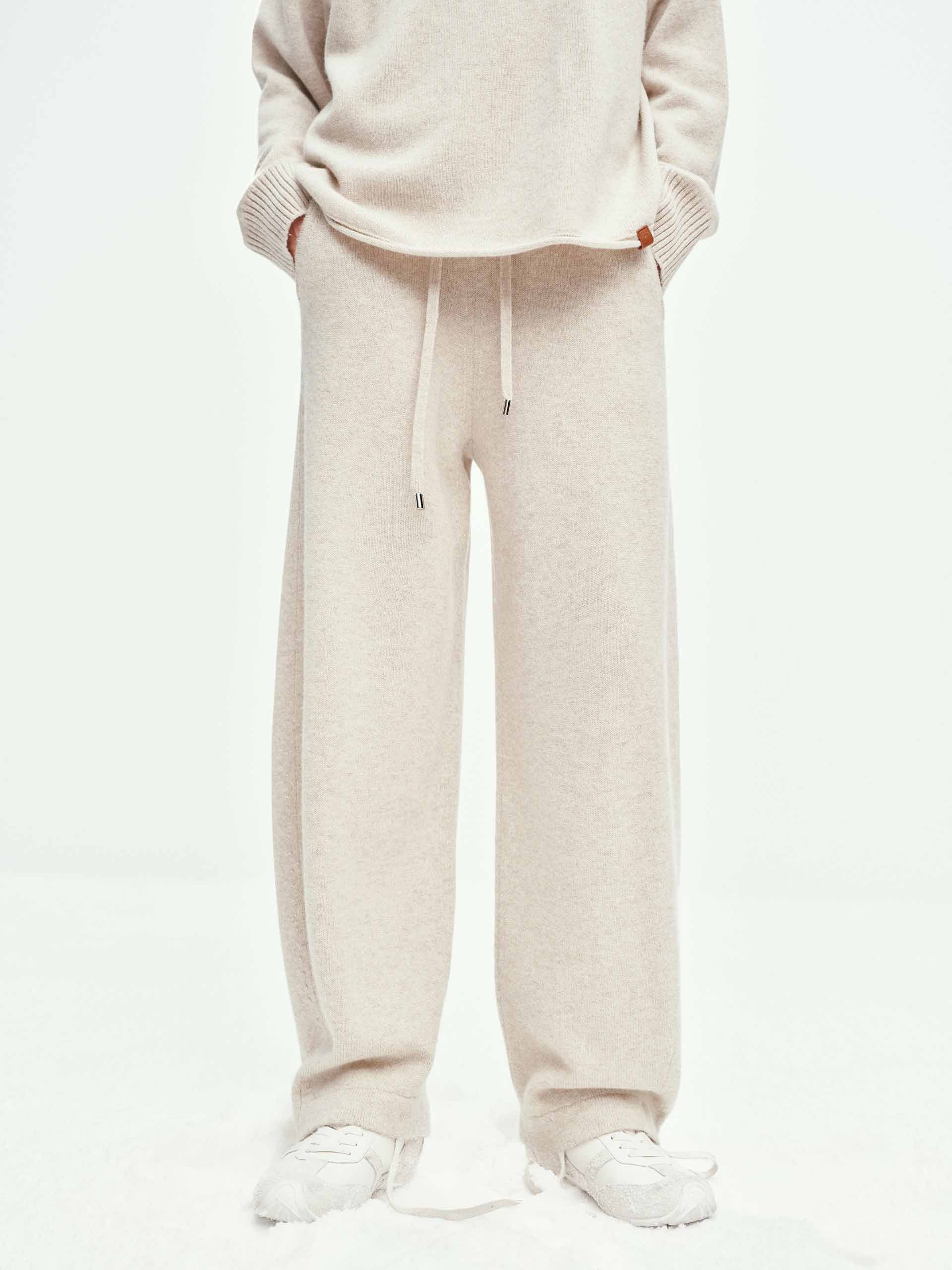 Embrace a bold and architectural silhouette with our trousers. Expertly tailored from a luxurious wool cashmere fabric, they offer both exceptional softness and a structured drape. The design is enhanced with elegant curved seams and practical side pockets, while the elasticated waistband with a drawstring detail ensures all-day comfort and a customizable, polished fit.