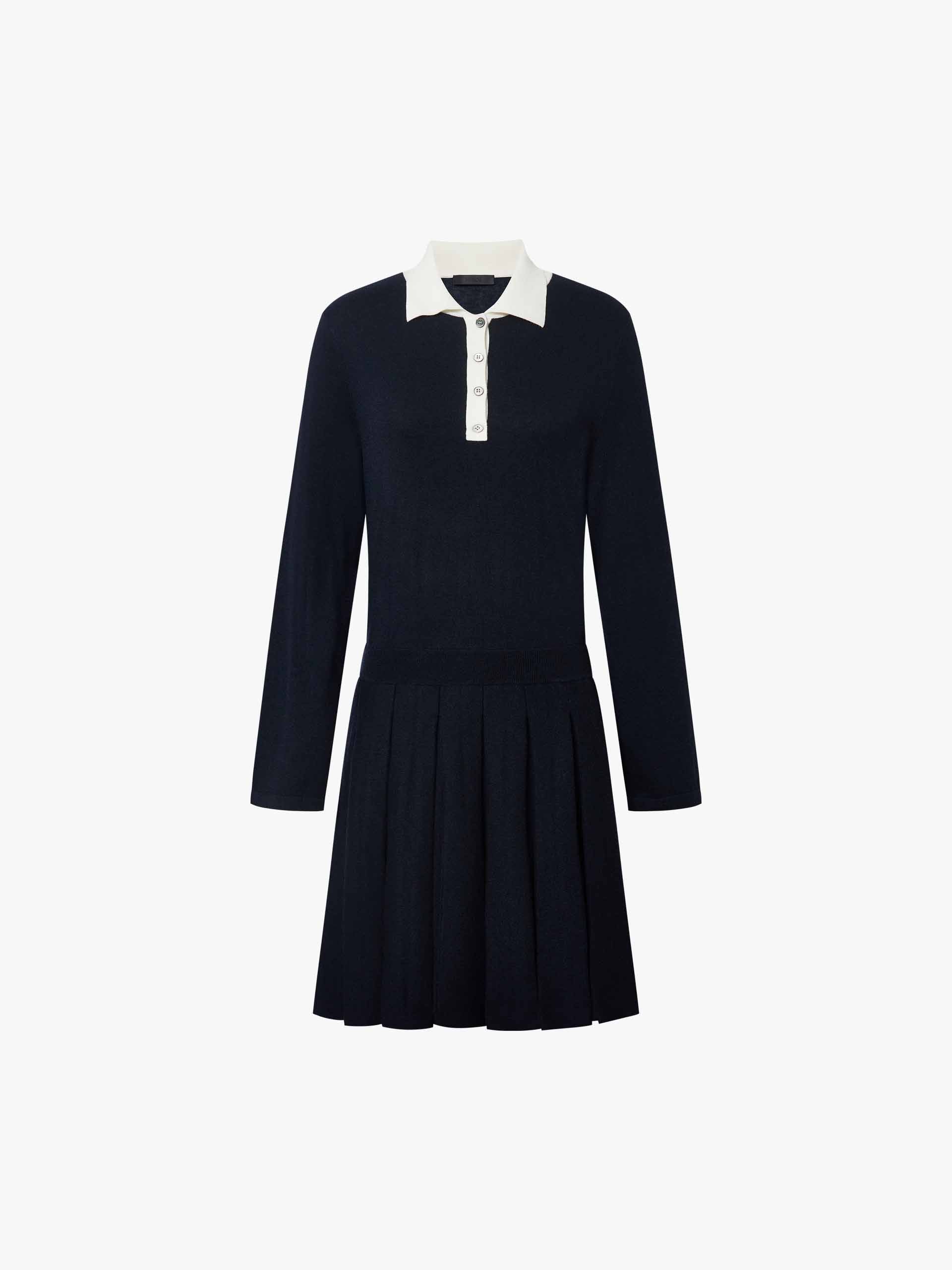 Contrast Collar Pleated Dress