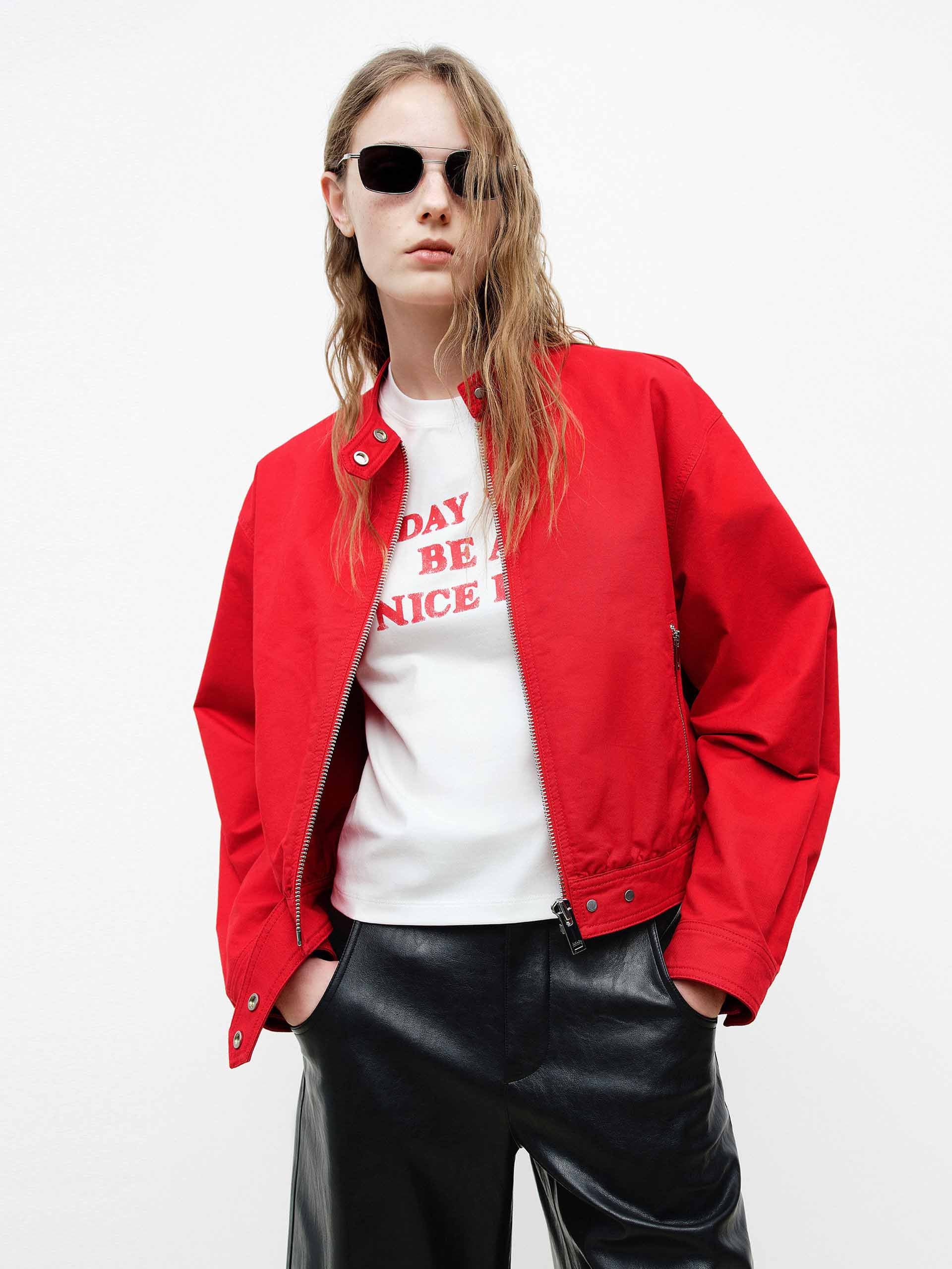 Cropped Cotton Bomber Jacket