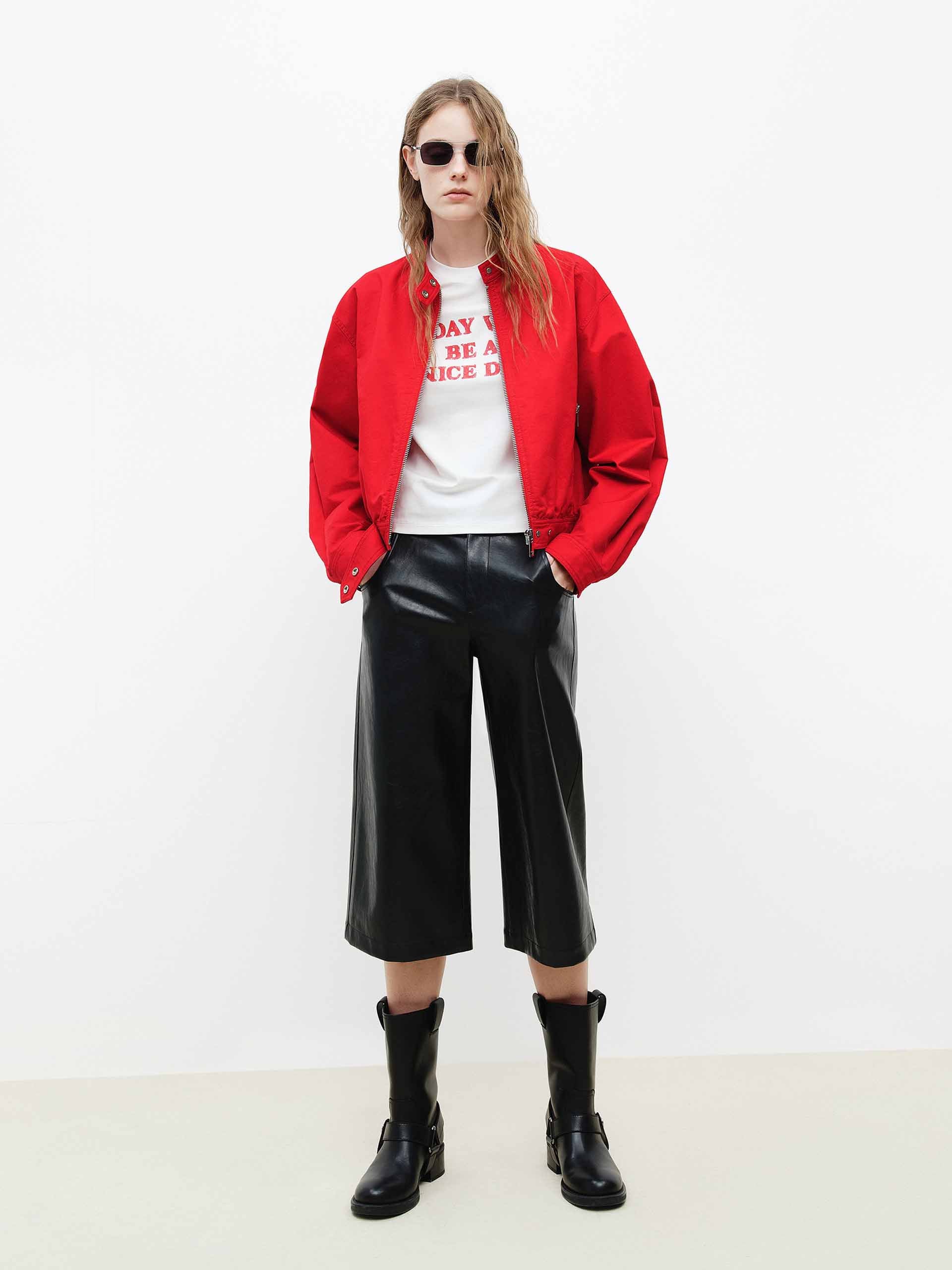 Cropped Zipper Relaxed Coat
