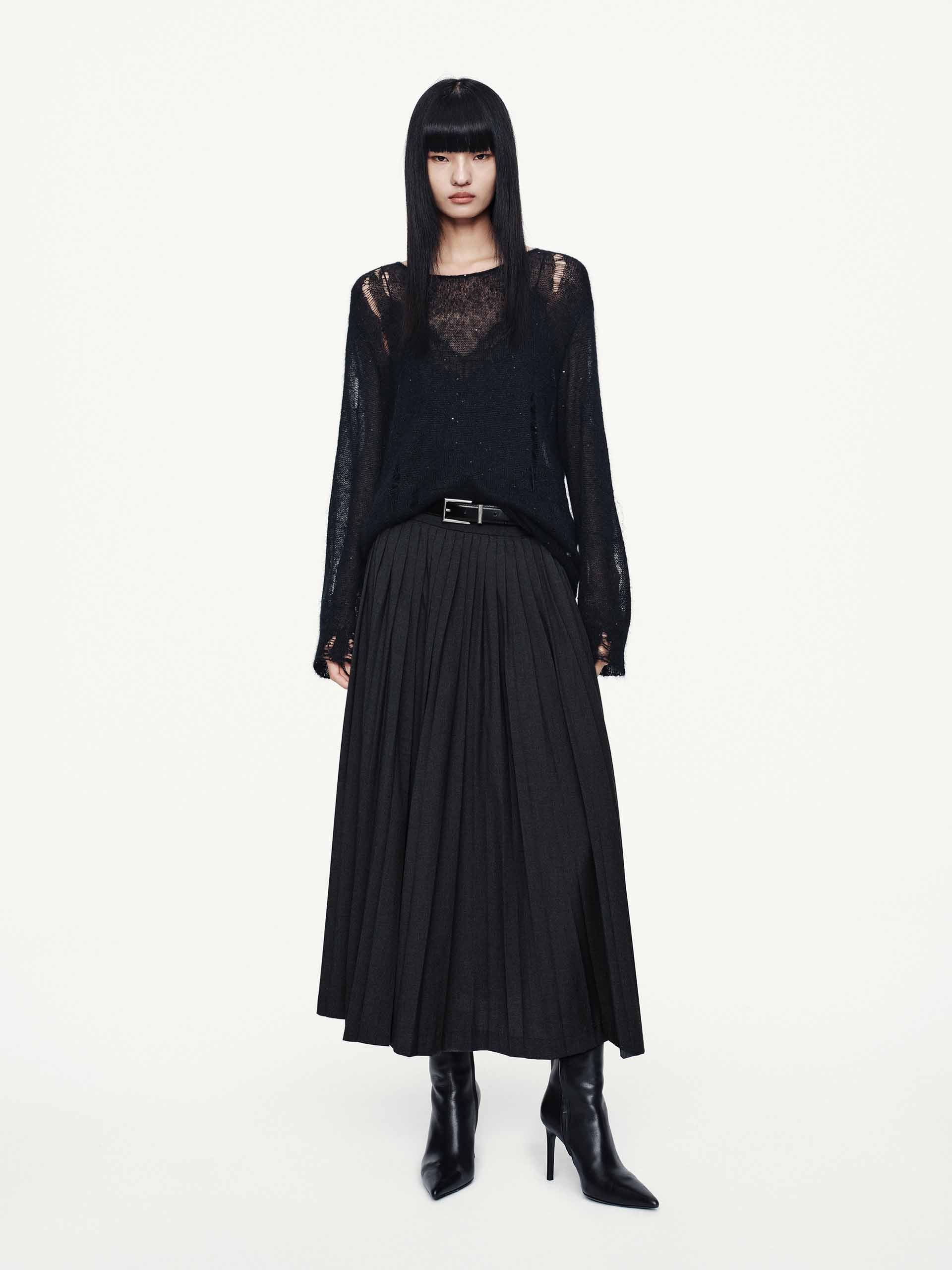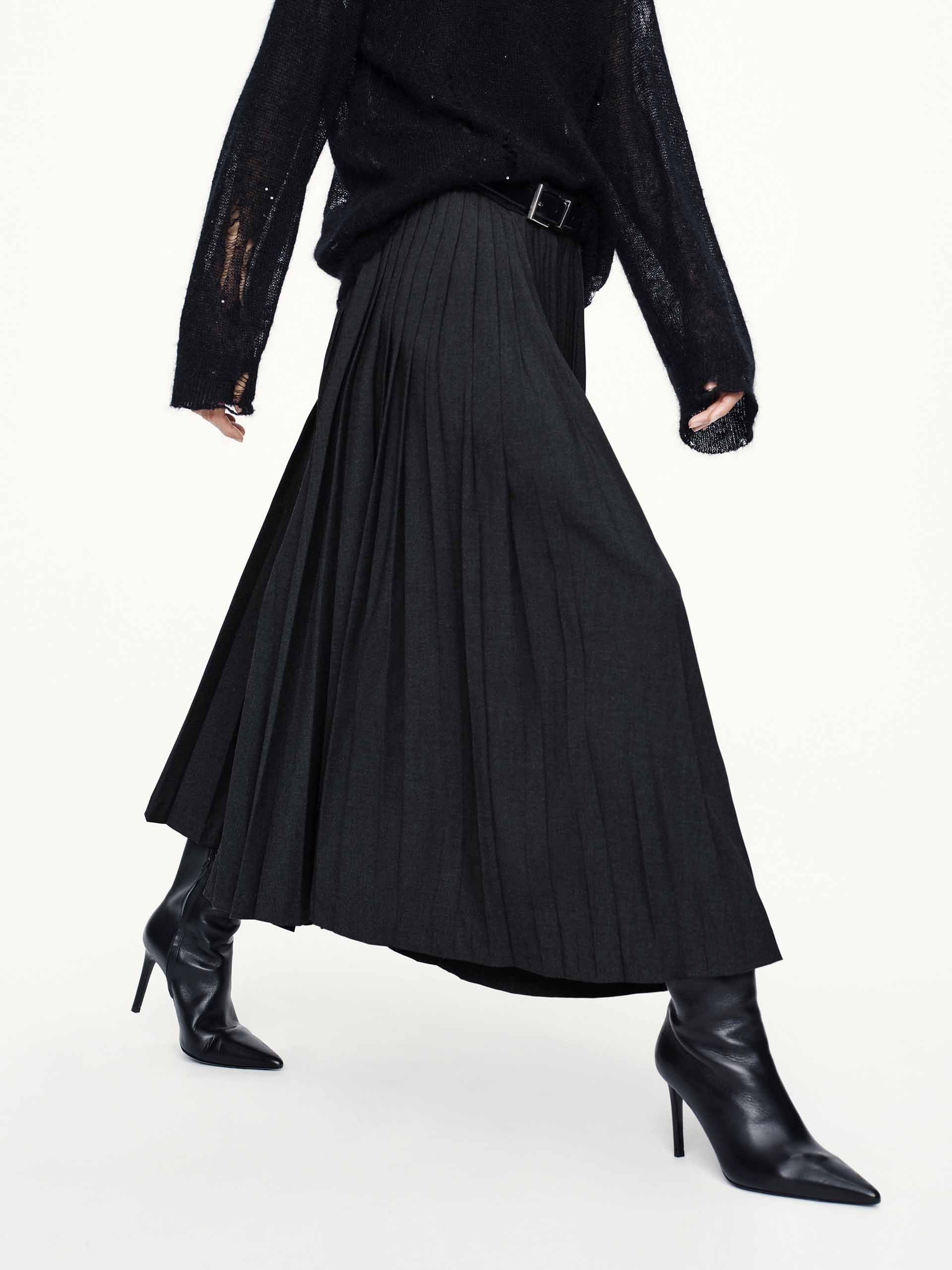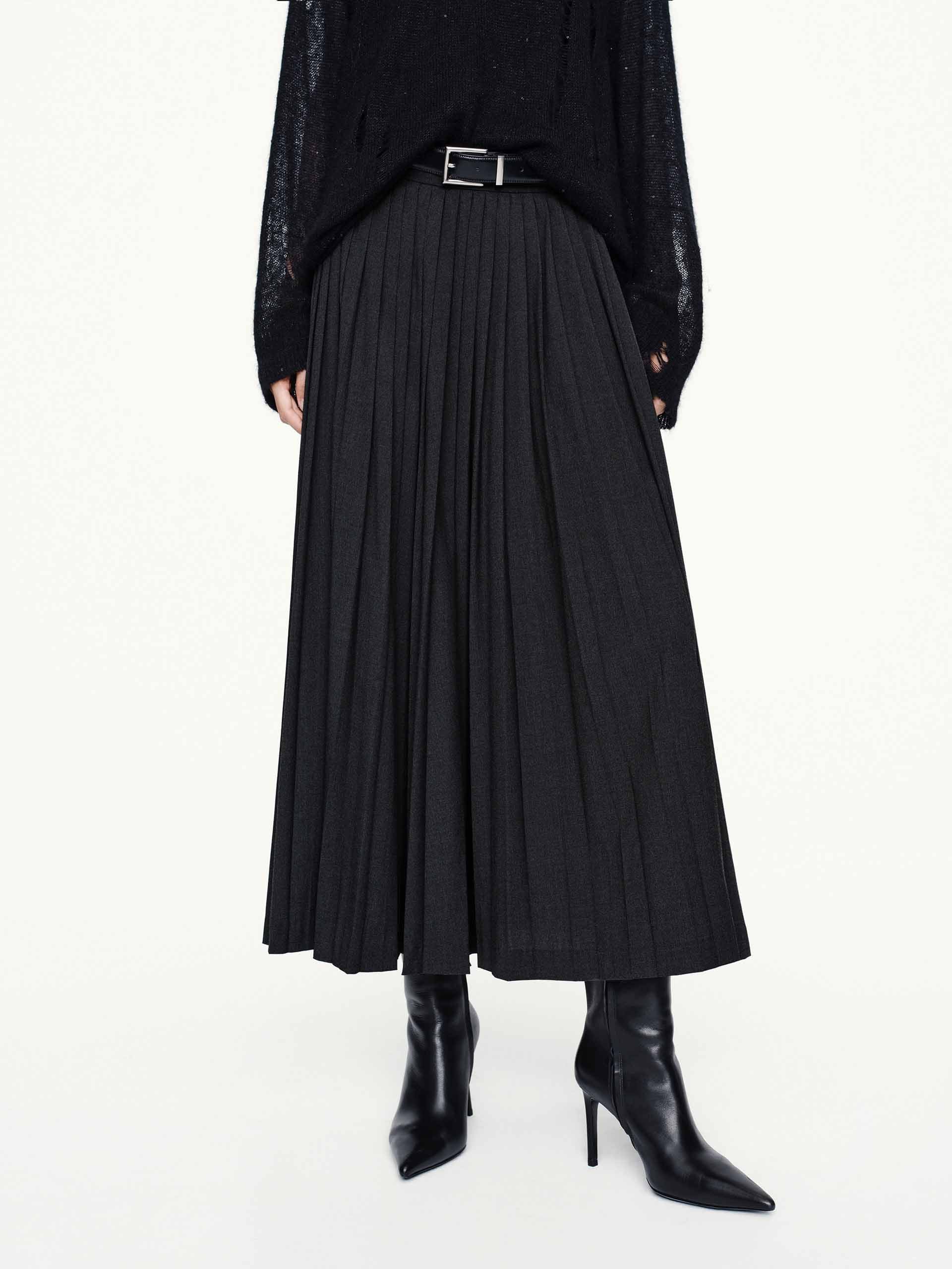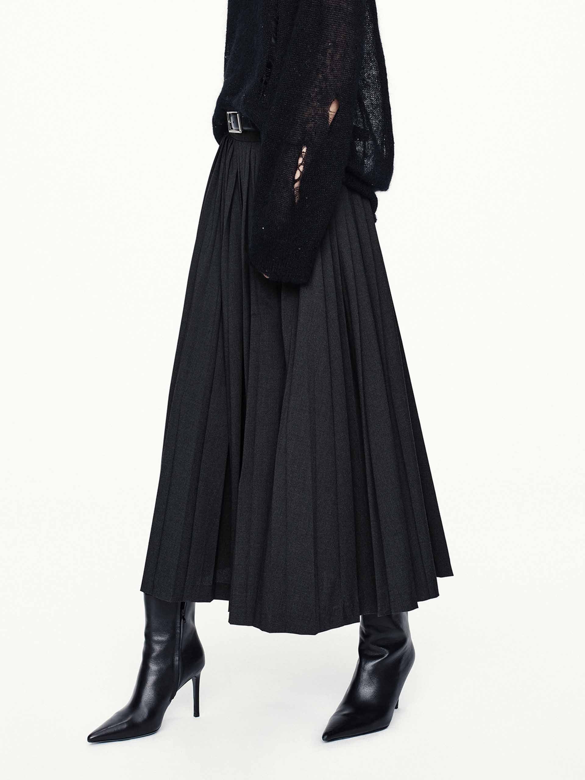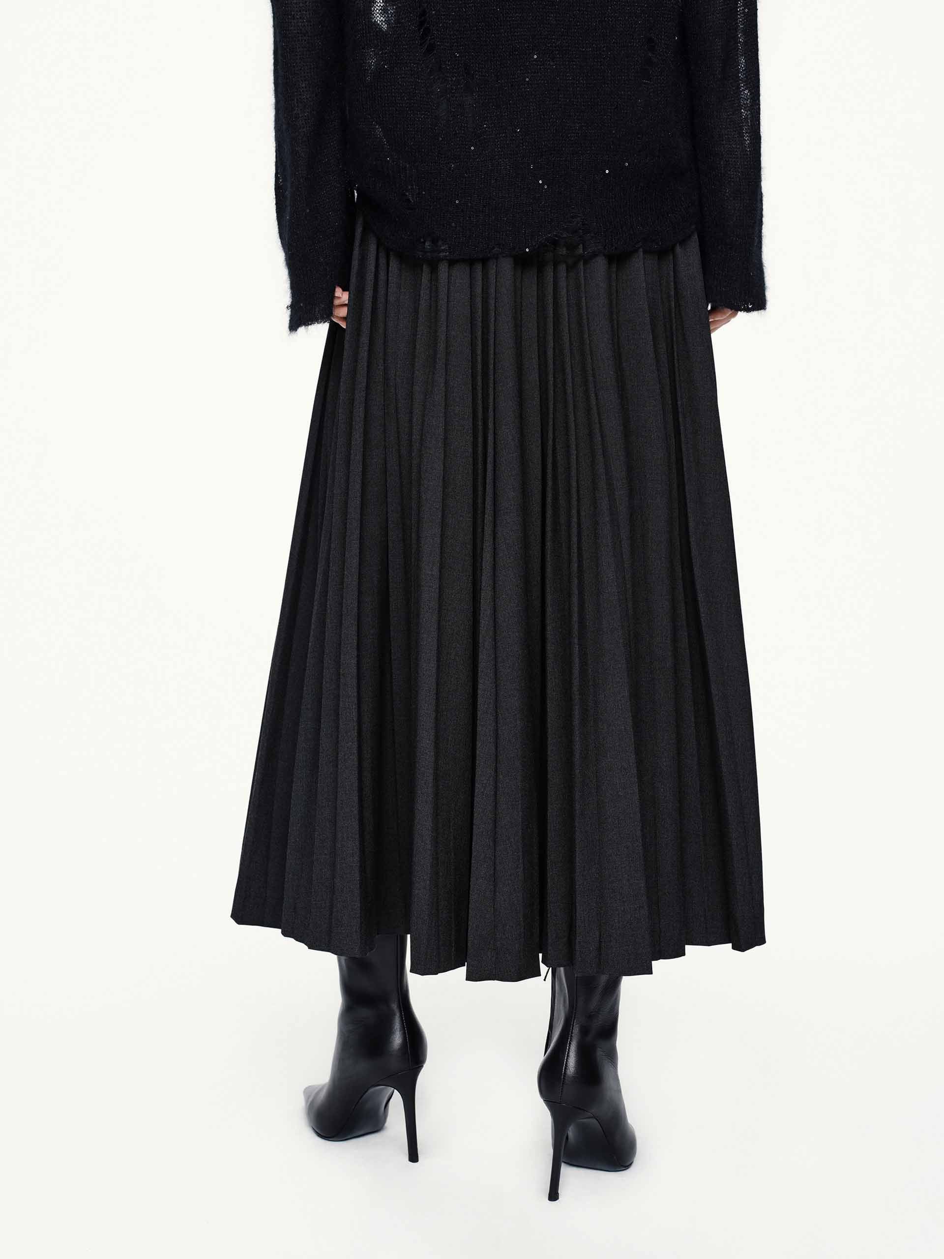 This graceful skirt combines timeless sophistication with contemporary comfort, featuring delicate uniform pleats that create beautiful movement with every step. Practical yet polished, it features a discreet side zipper closure for easy wear and a smooth fit. The high-waisted design elongates the silhouette, while the flowy hem adds romantic softness to your look.