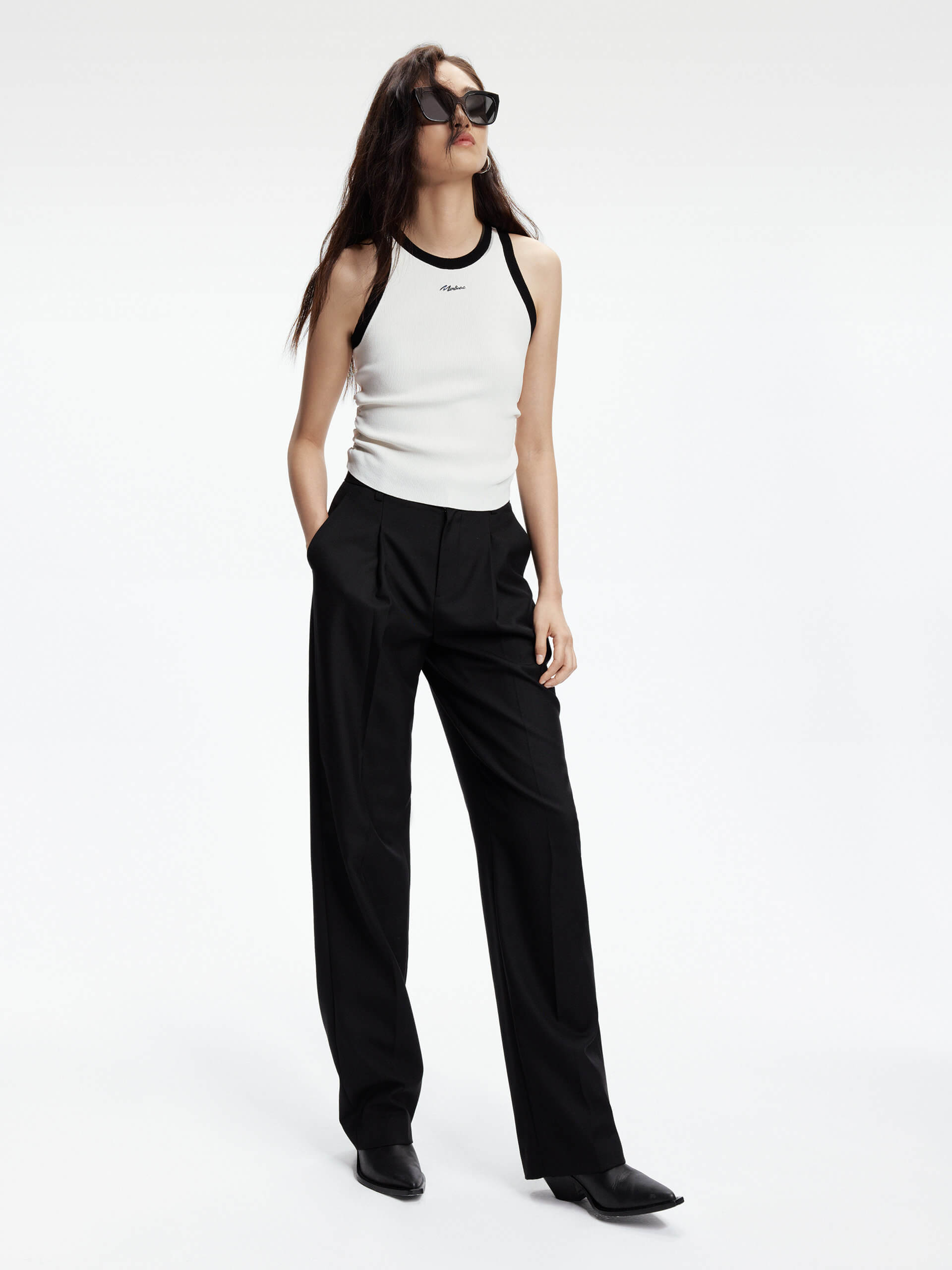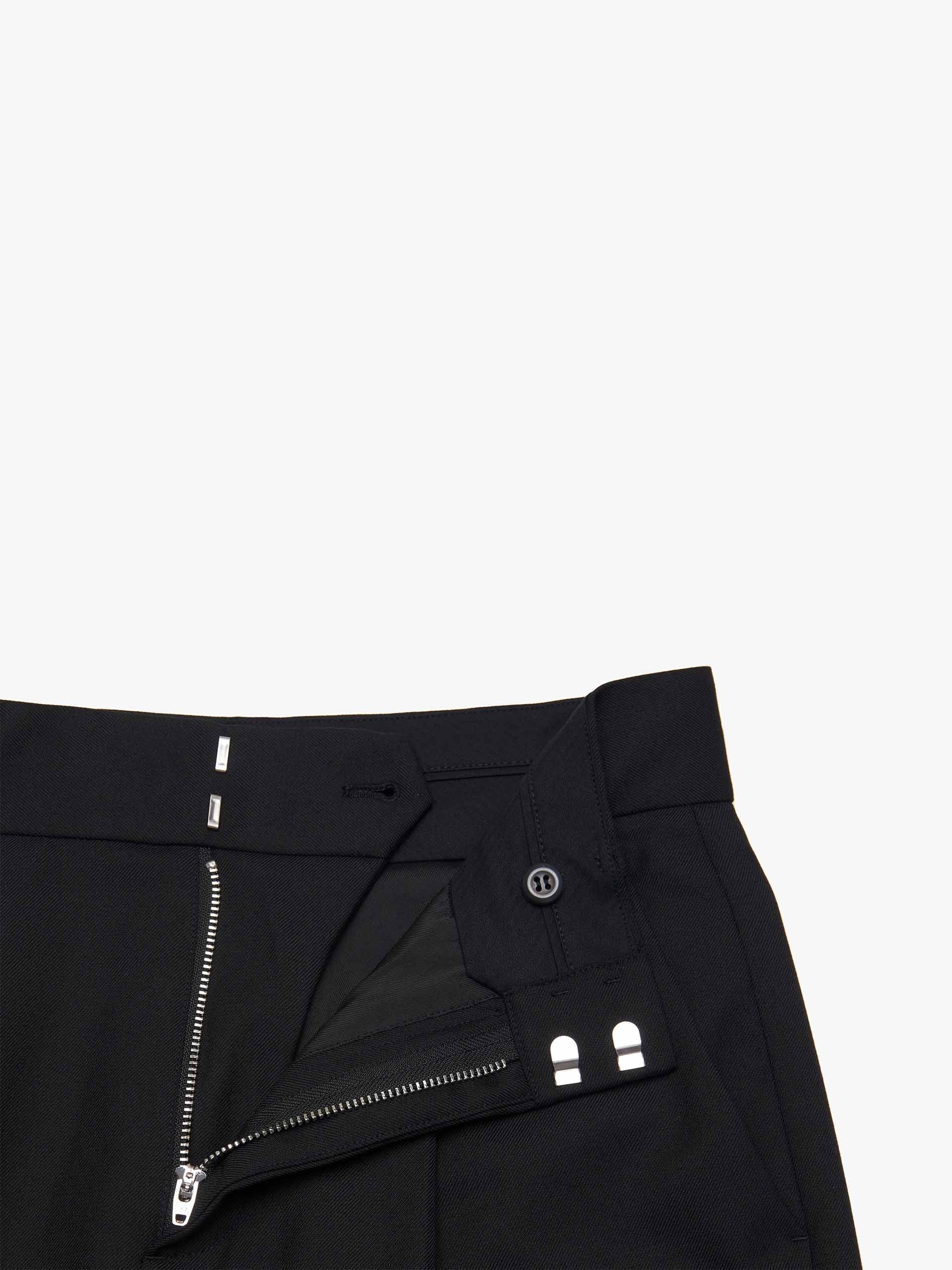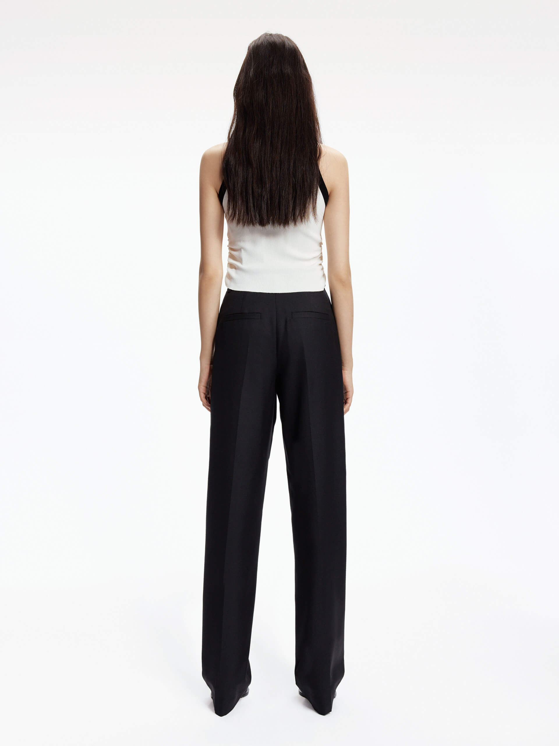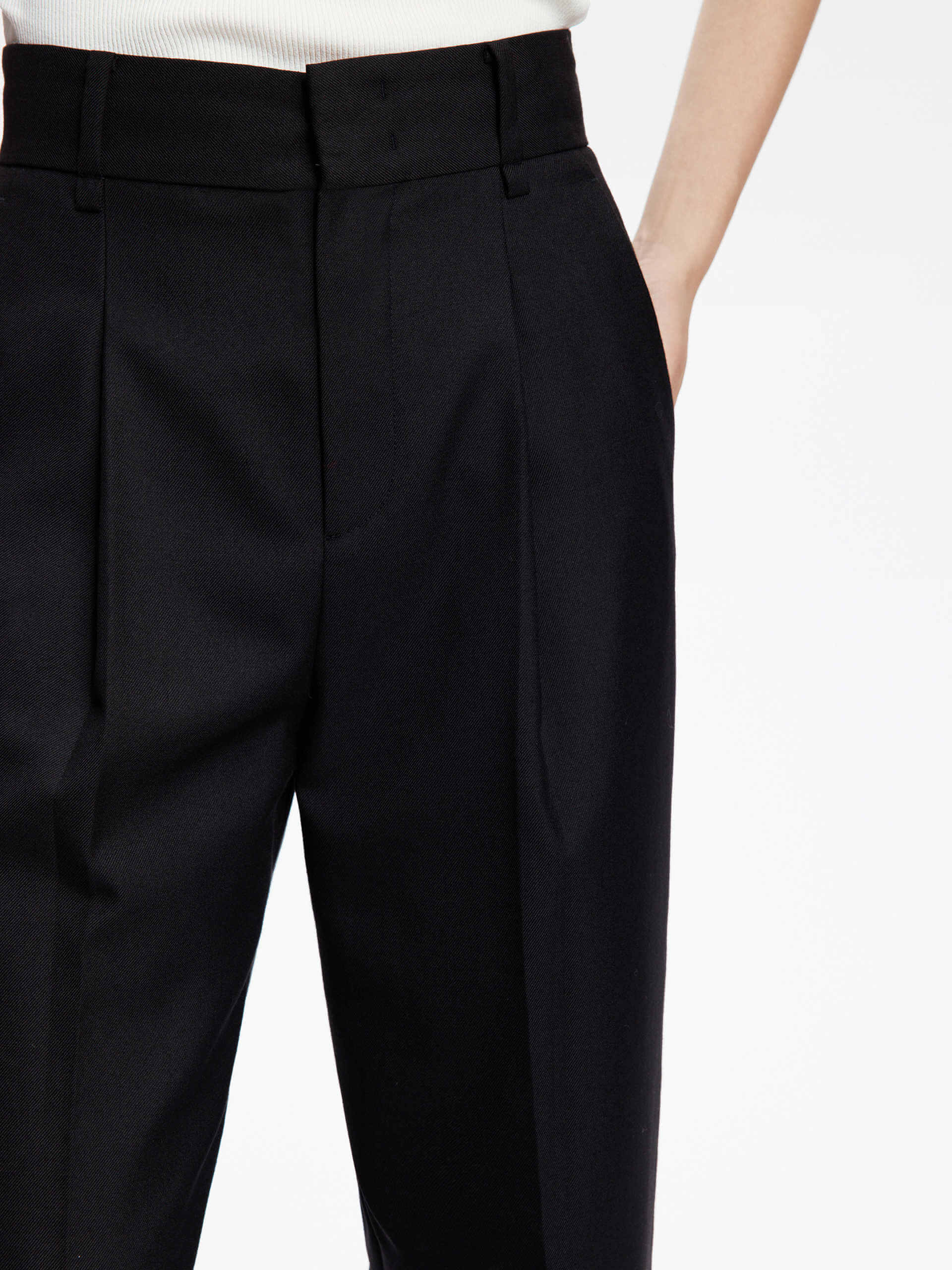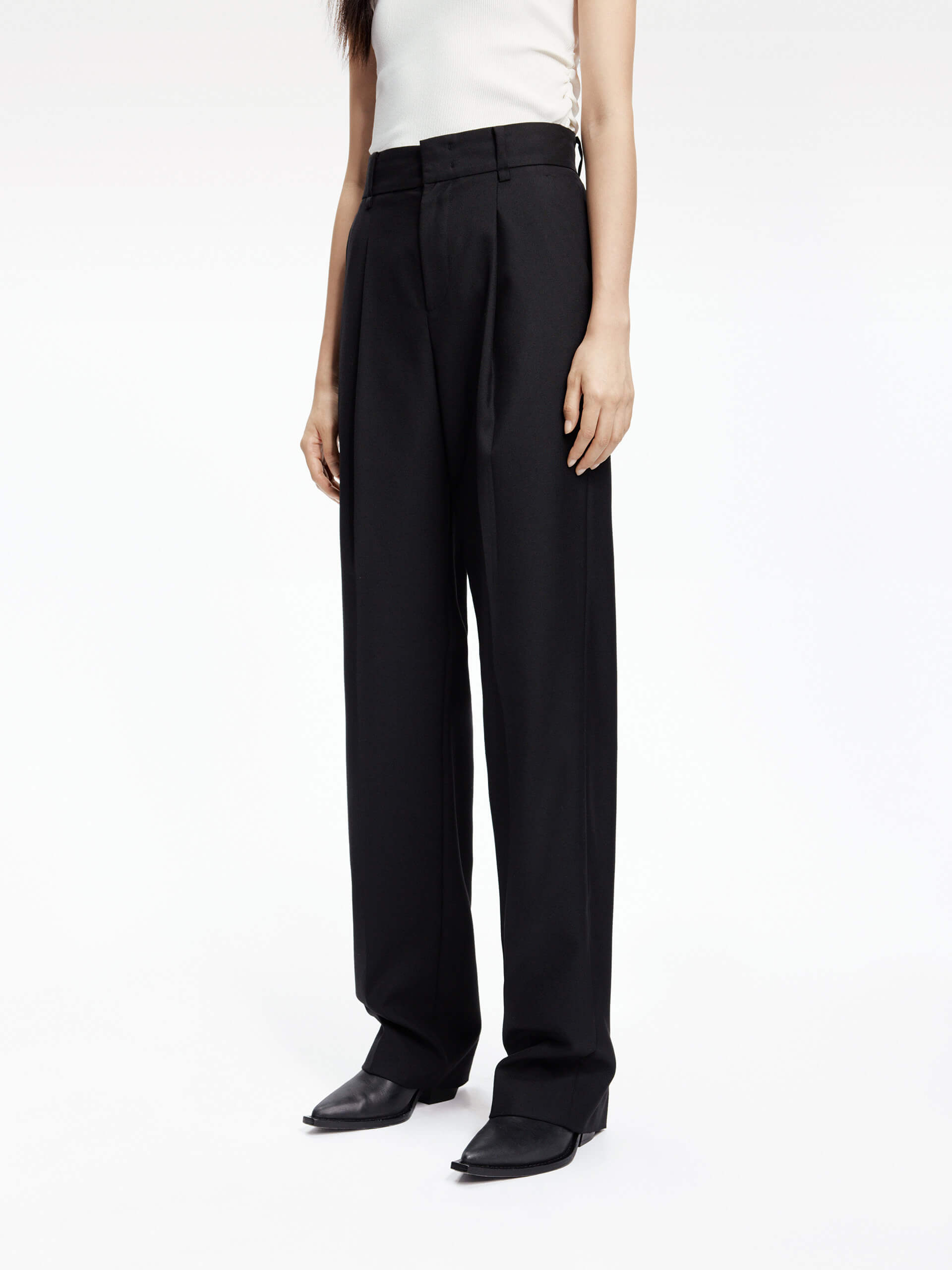 These pants are made for a smart and refined business closet. They are crafted from a 48.4% wool blend for extra comfort and warmth, and tailored with roomy pleats and sharp creases, offering a sense of sophistication and slouch to the traditional straight-leg silhouette.
