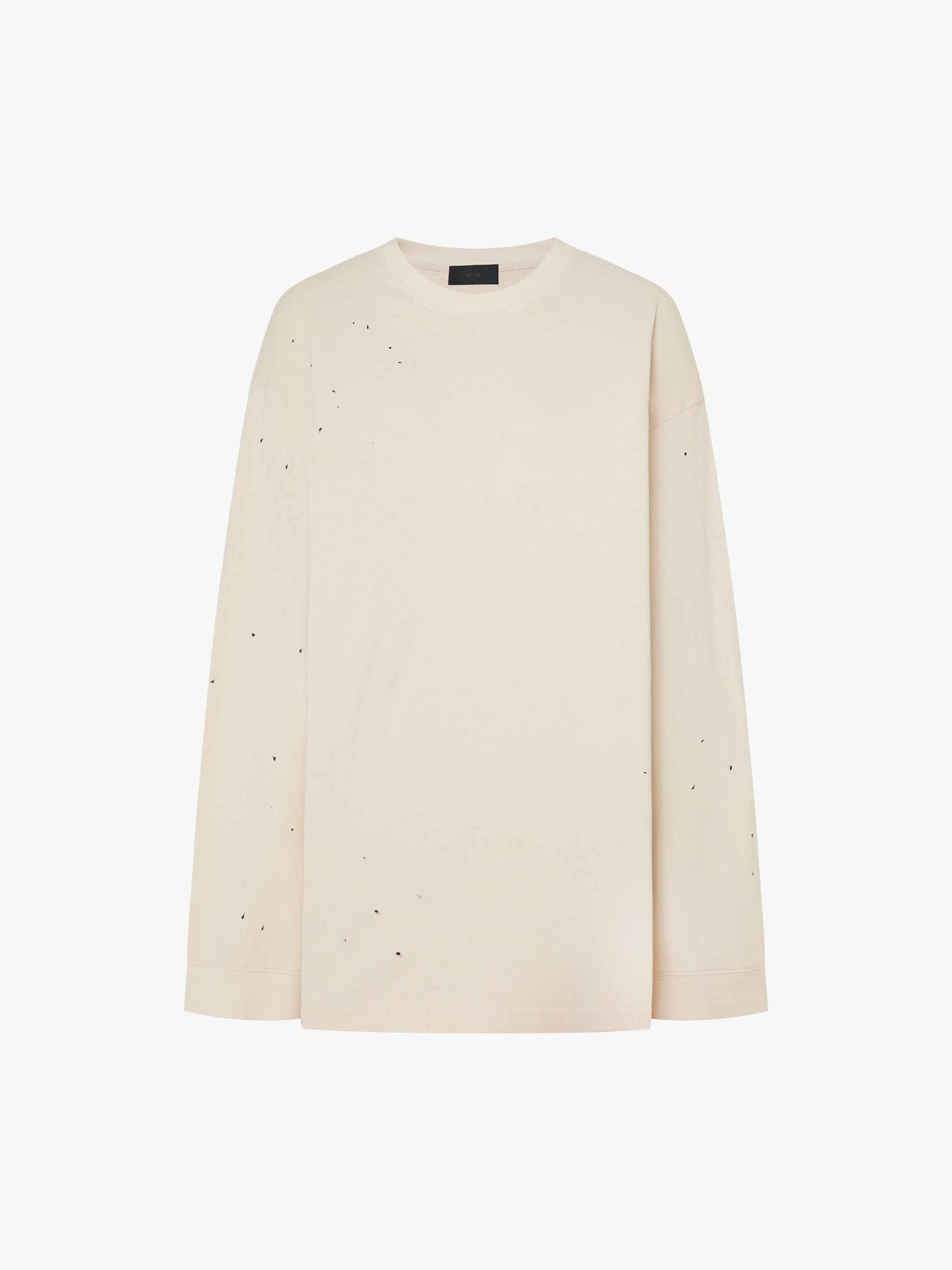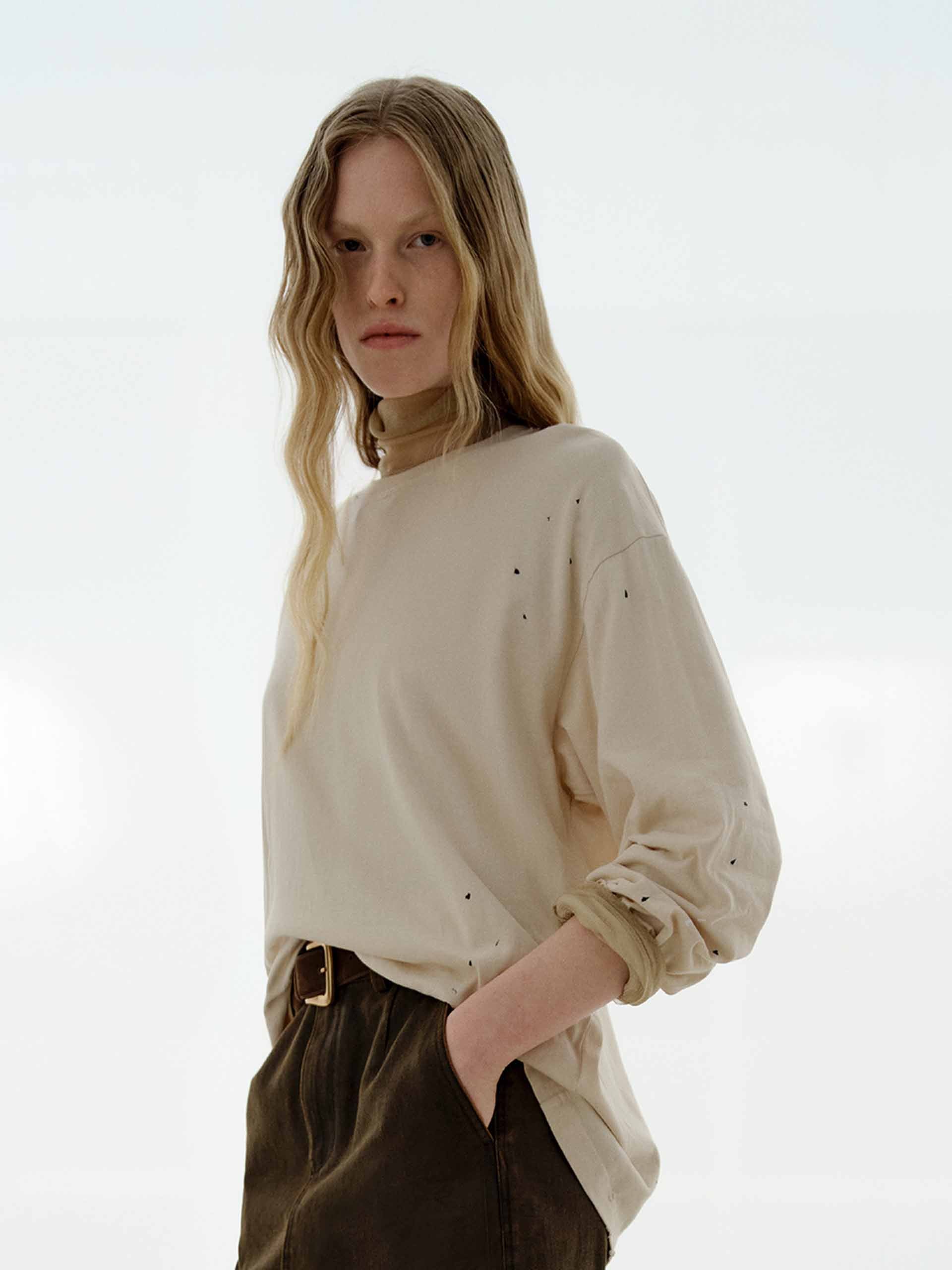Unleash your inner artist with this t-shirt, where creative chaos meets effortless streetwear cool. A classic round neckline gets an edgy update with intentional distressing, while the raw, uneven hem reinforces the shirt's rebellious spirit.