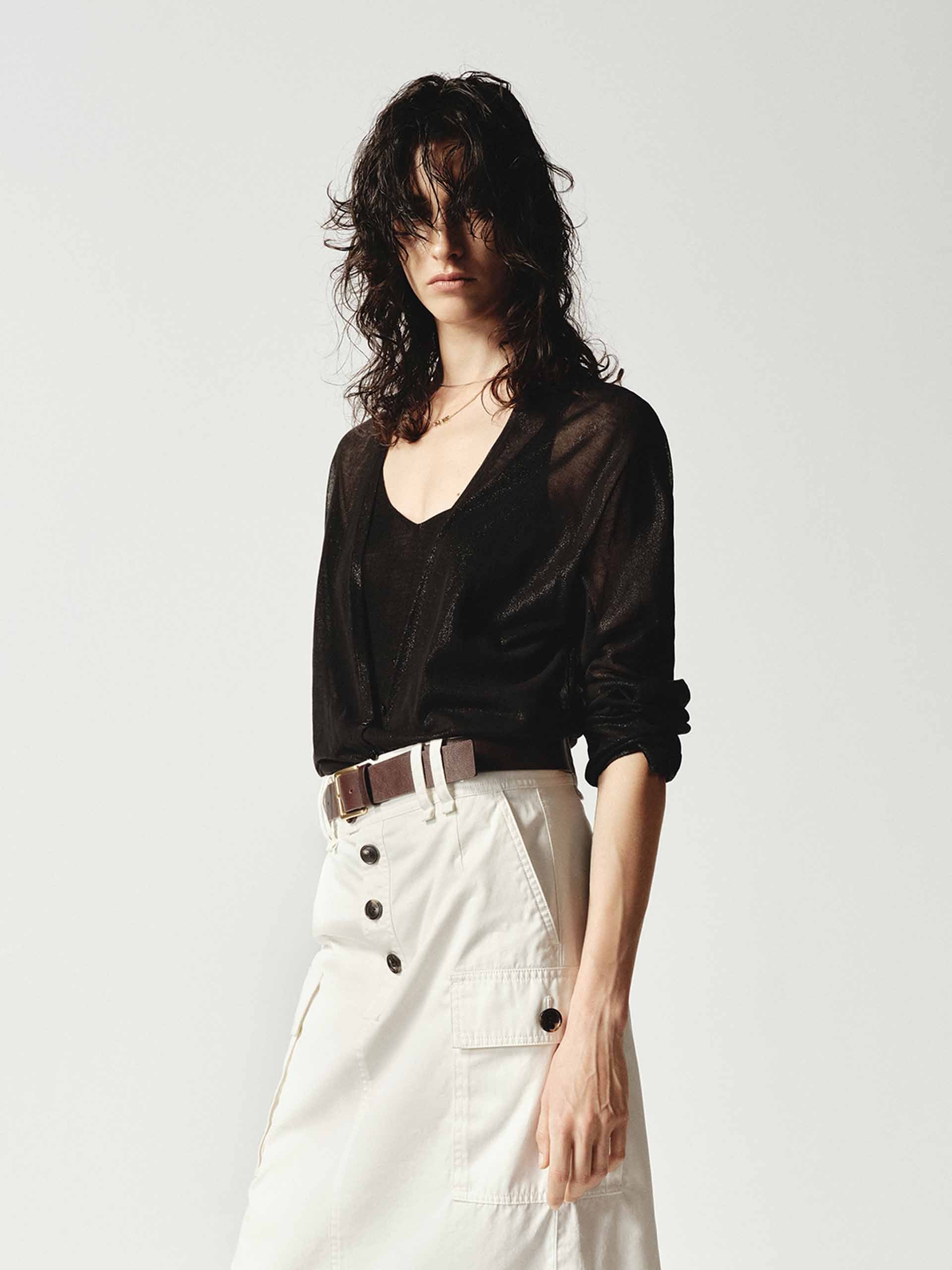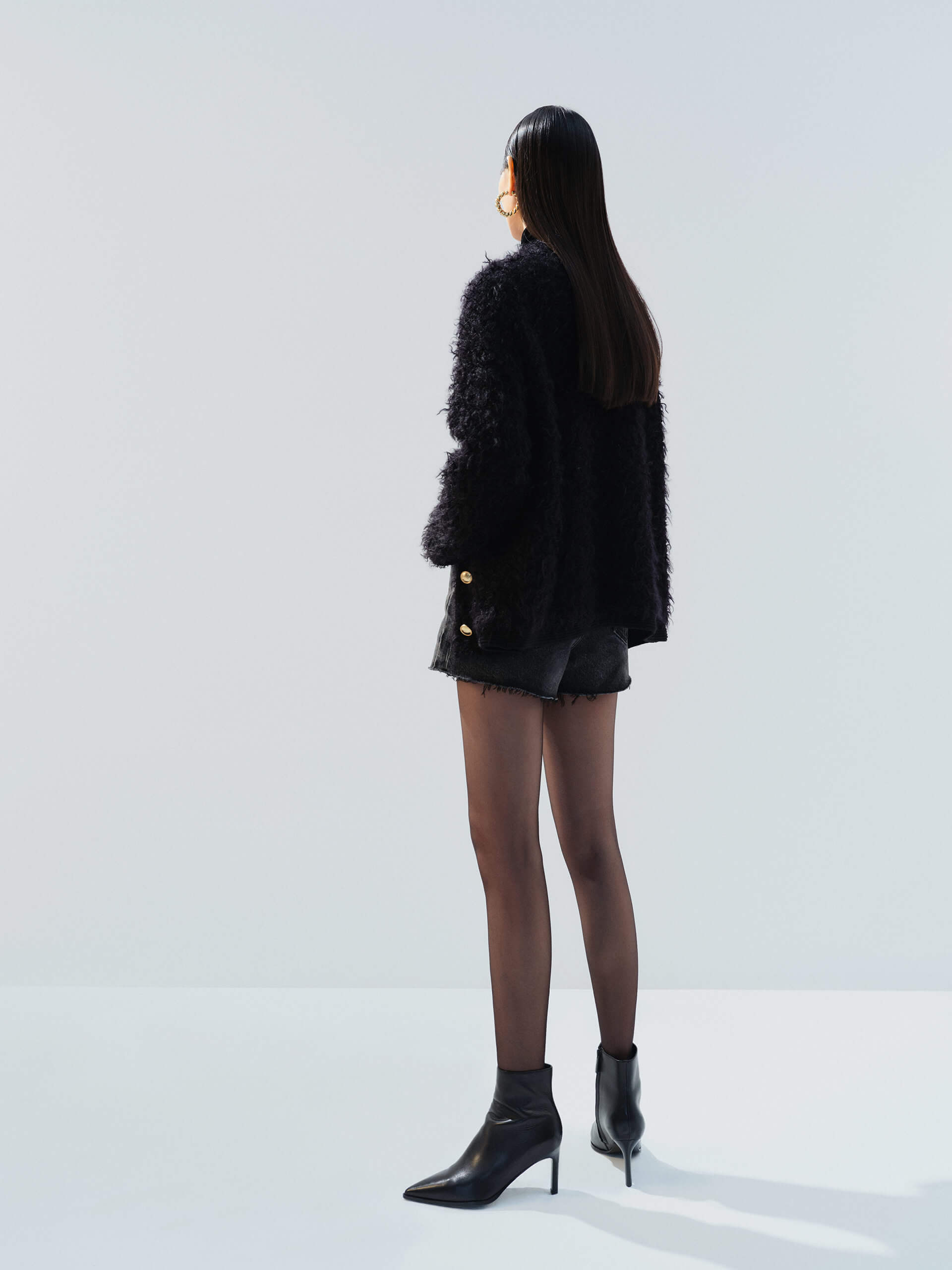 The MO&Co.NOIR 2025FW reimagines timeless elegance with its signature black palette, blending '90s minimalist utilitarian style with rock-inspired rebellion. This collection celebrates bold individuality through tactile fabric contrasts—retro suede, metallic yarns, and vintage denim—while precision tailoring and deconstructed details redefine effortless sophistication.