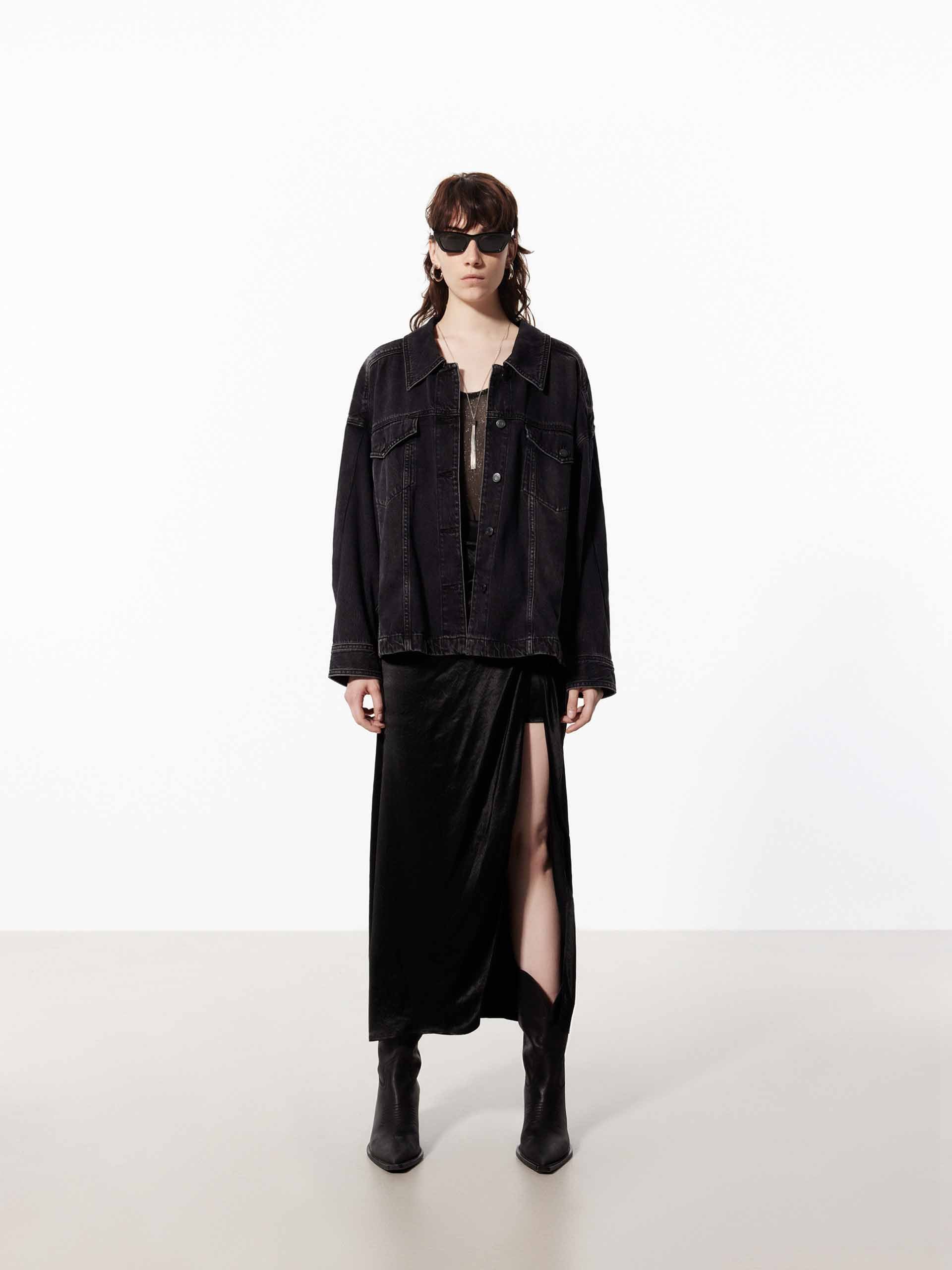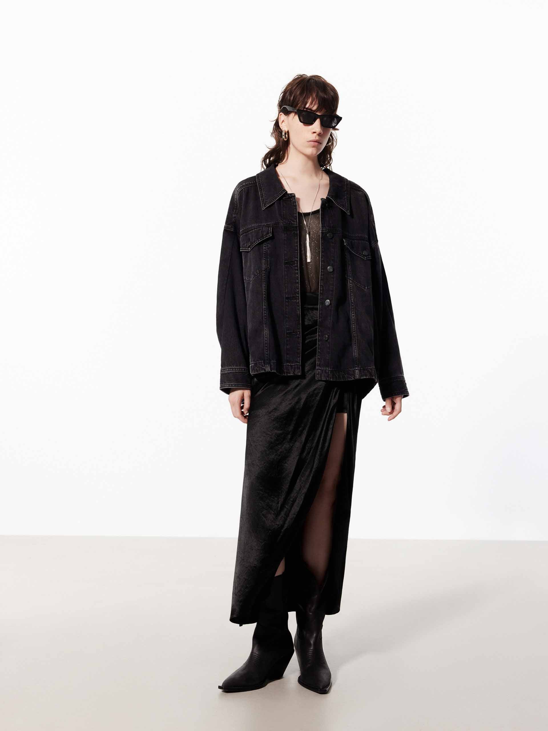 Our denim jacket is crafted from breathable cotton fabric for a lightweight wearing experience. From its distressed details to its relaxed fit, it exudes a timeless appeal that guarantees a unique, yet stylish wear. Let the classic charm of denim take center stage in your wardrobe.