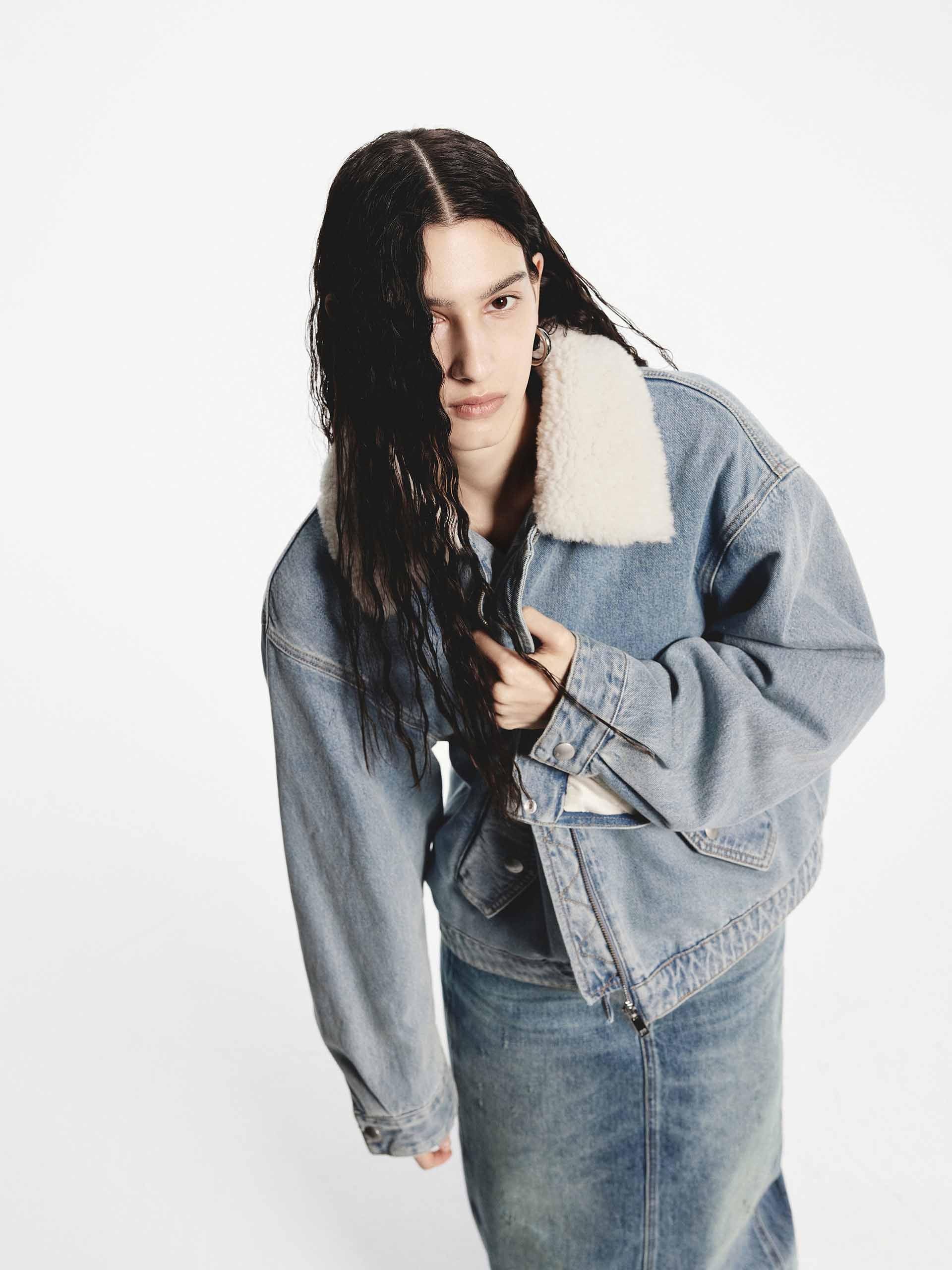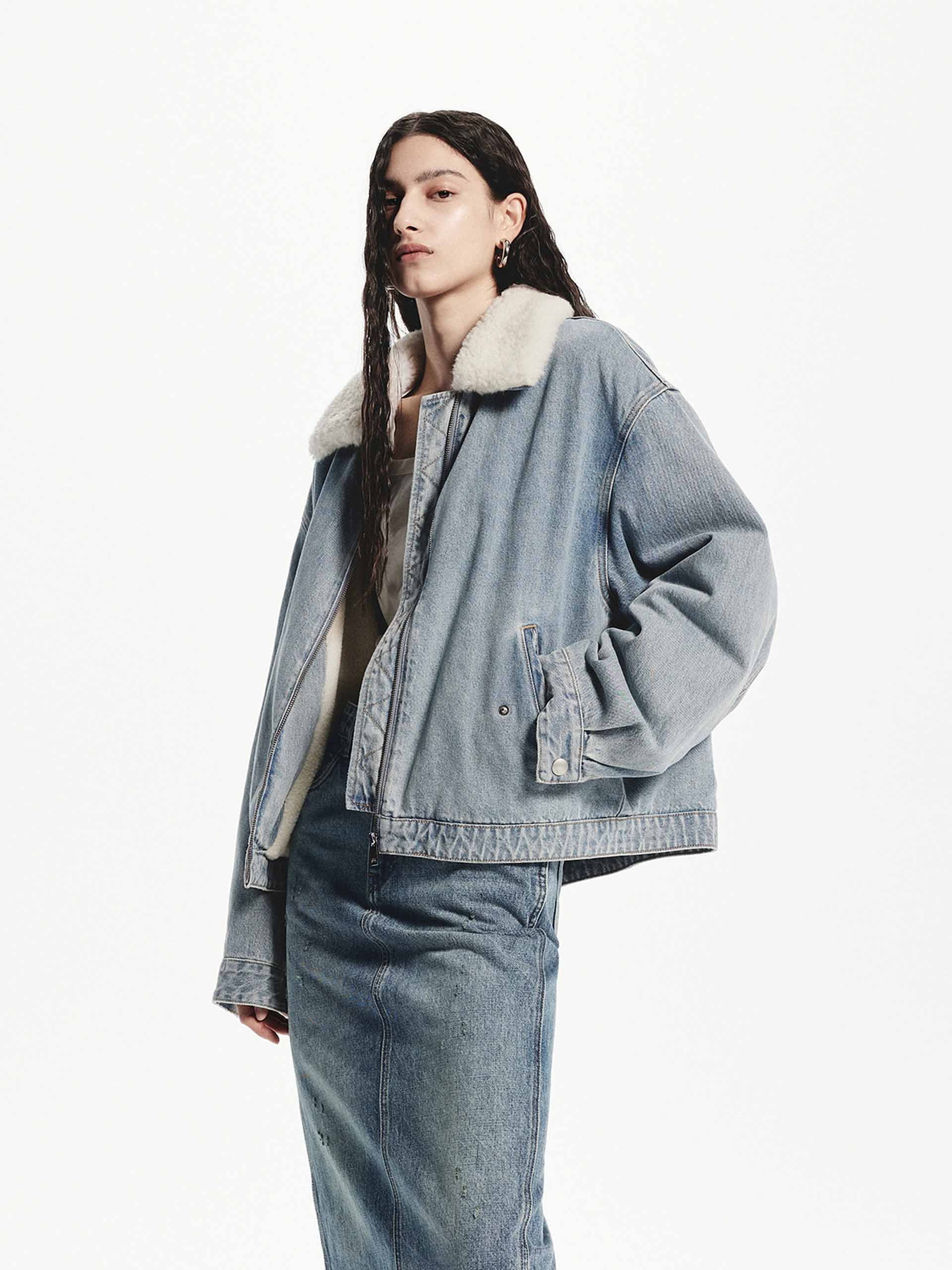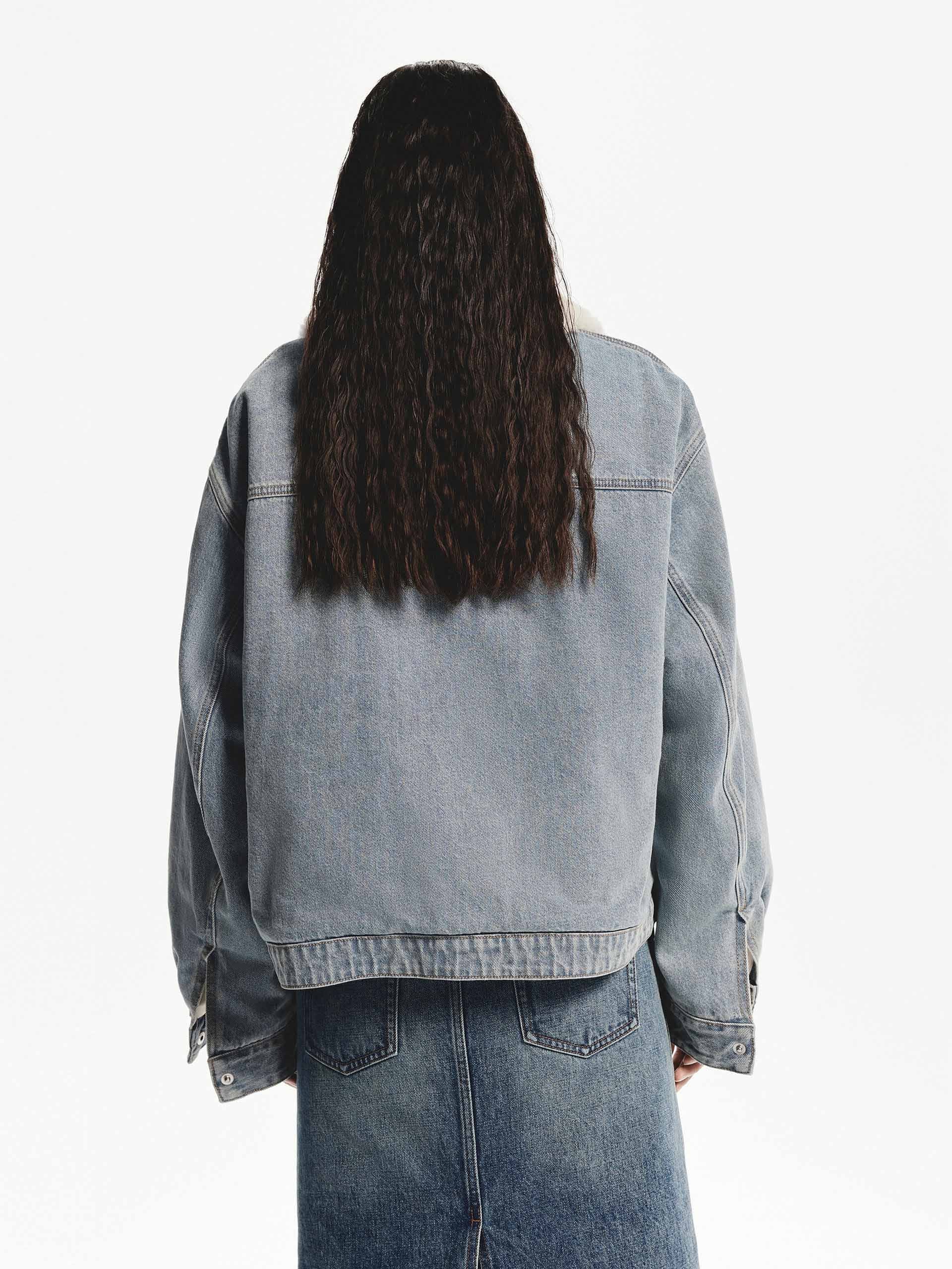 Crafted from comfy cotton, this jacket has a luxuriously soft shearling interior, classic lapels and a side flap pocket design. It's cut in a relaxed fit that allows it to be layered over knitwear.
